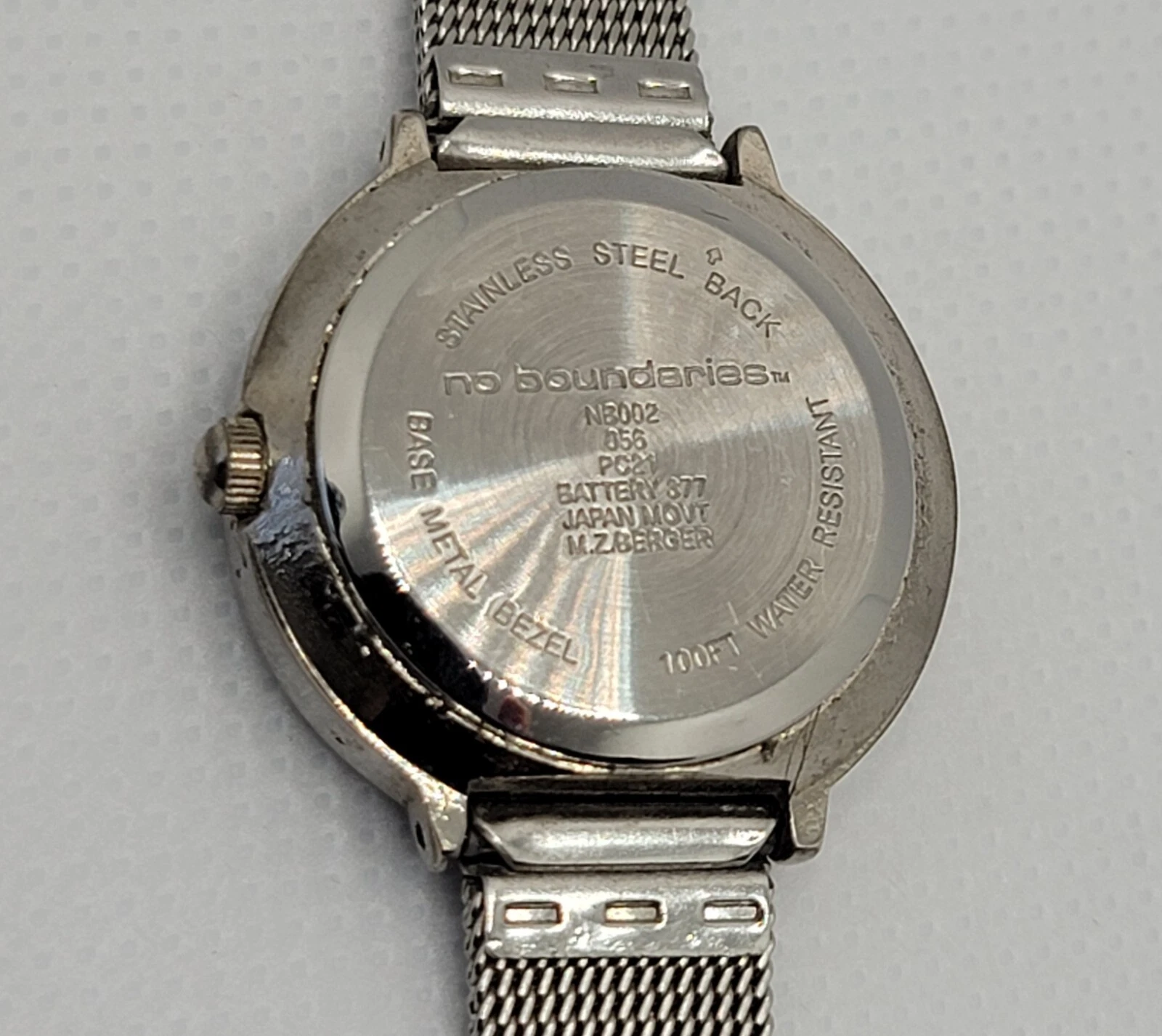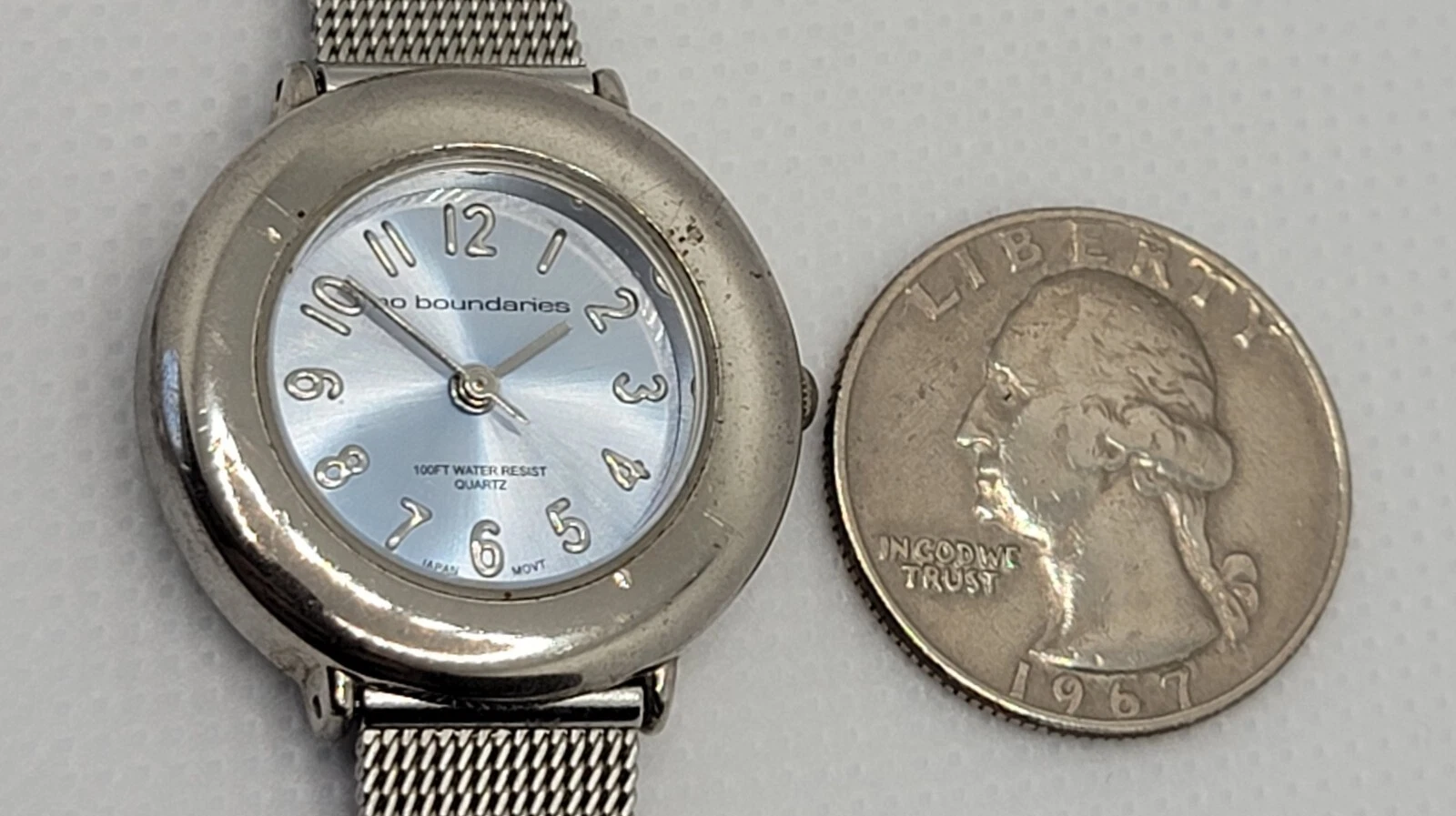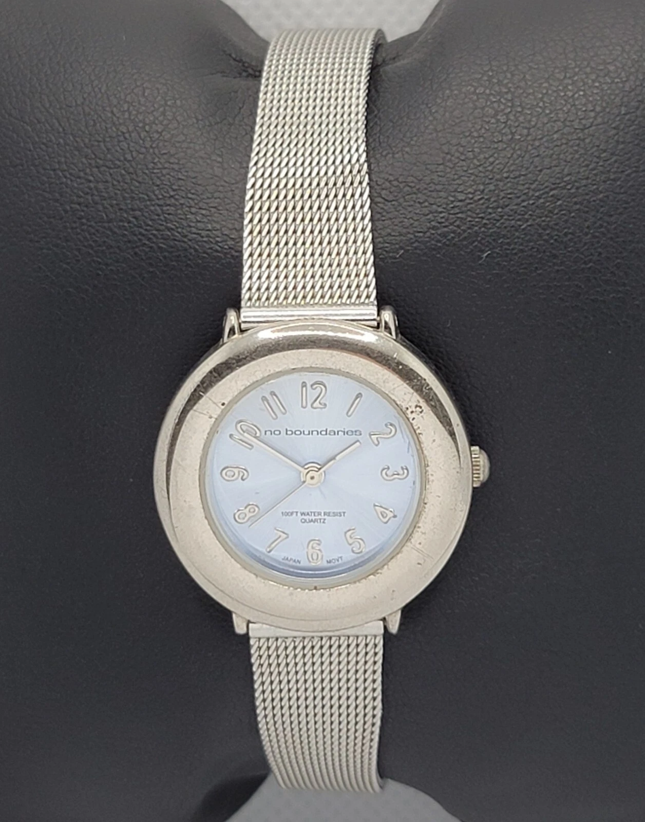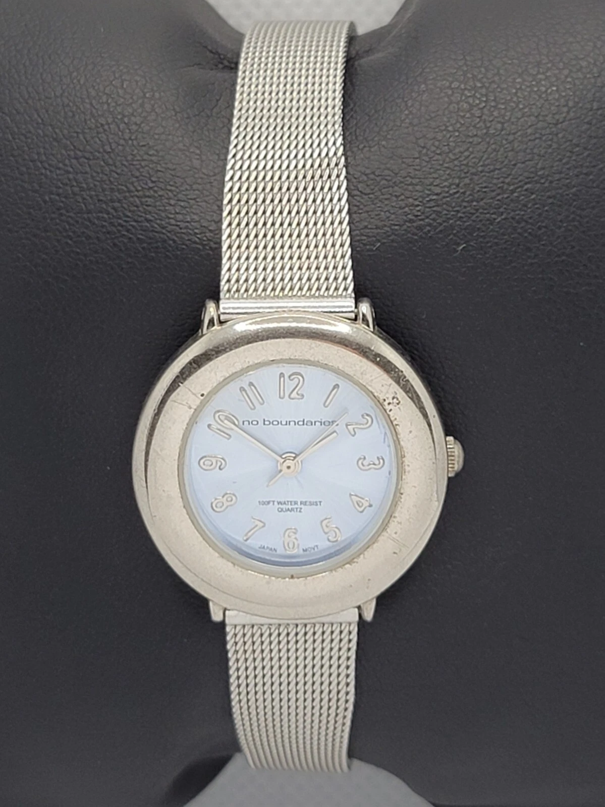 Ladies No Boundaries Classic Round Silver Tone Blue Dial Mesh Band Watch L3