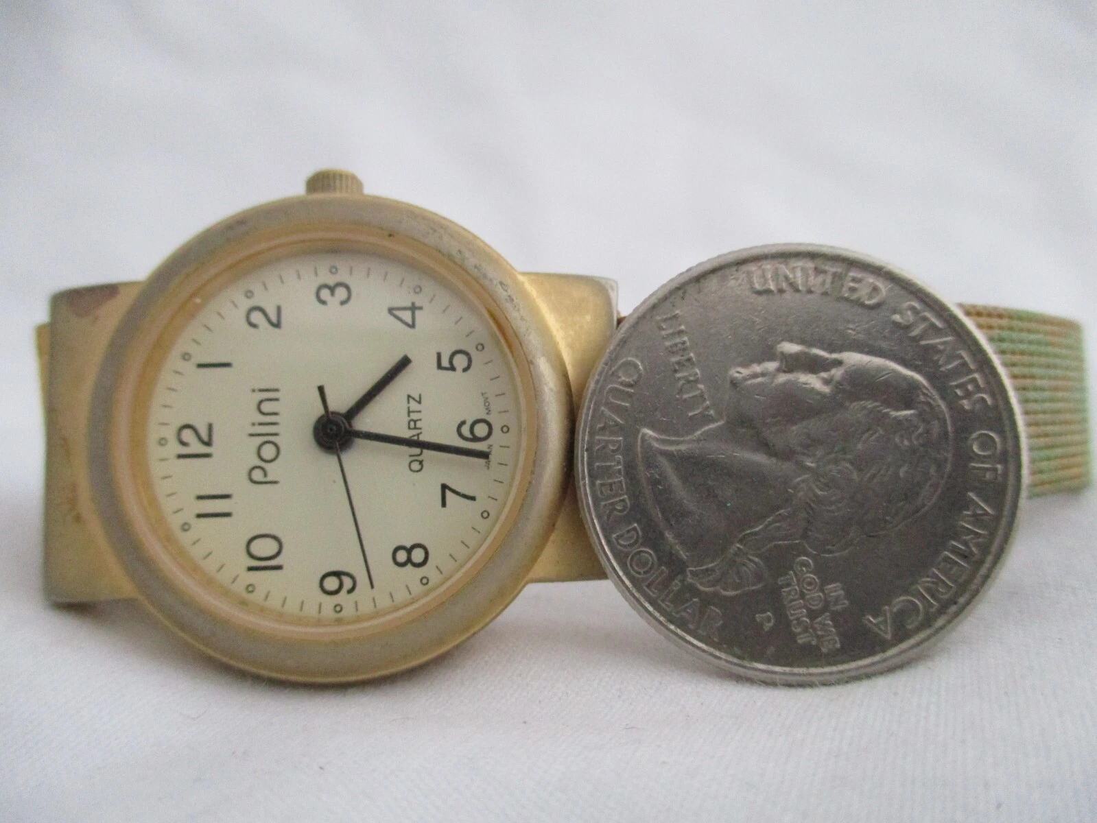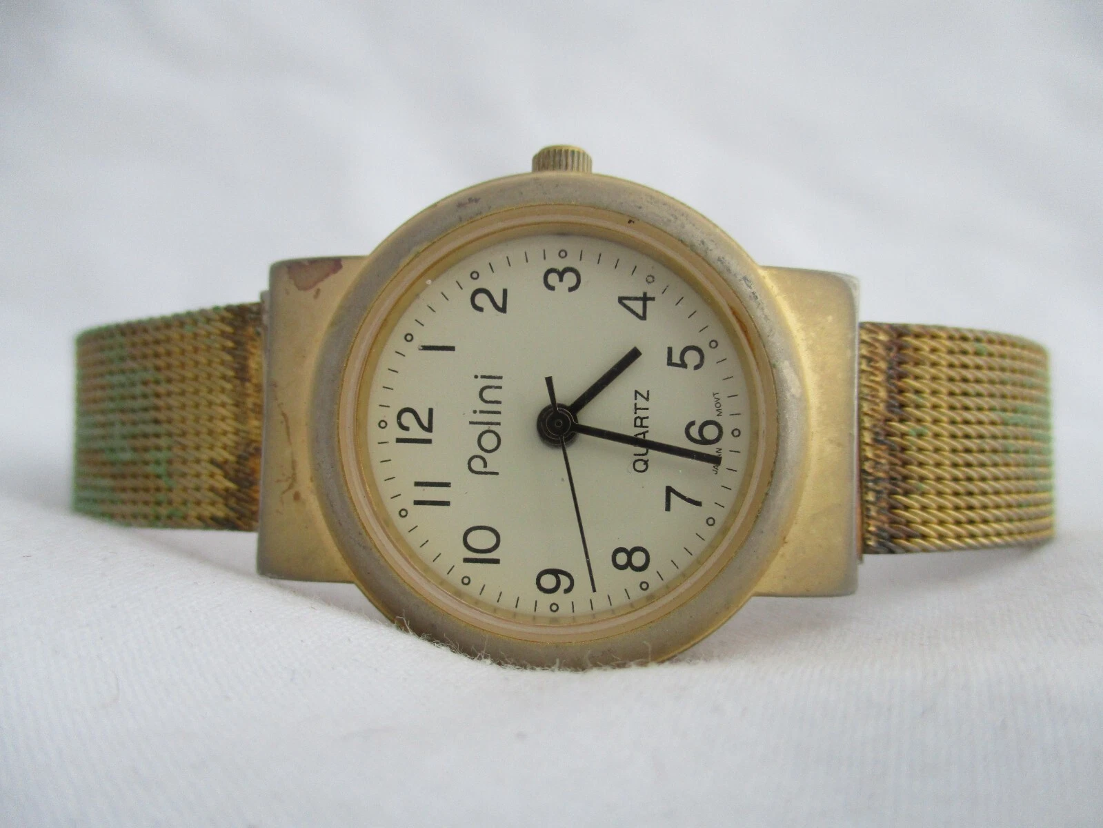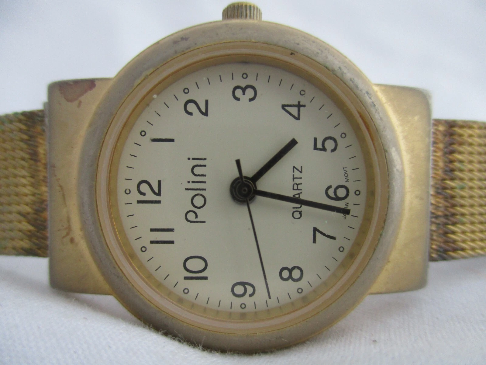 Polini Analog Wristwatch Gold Tone Buckle Band Round Face Elegant