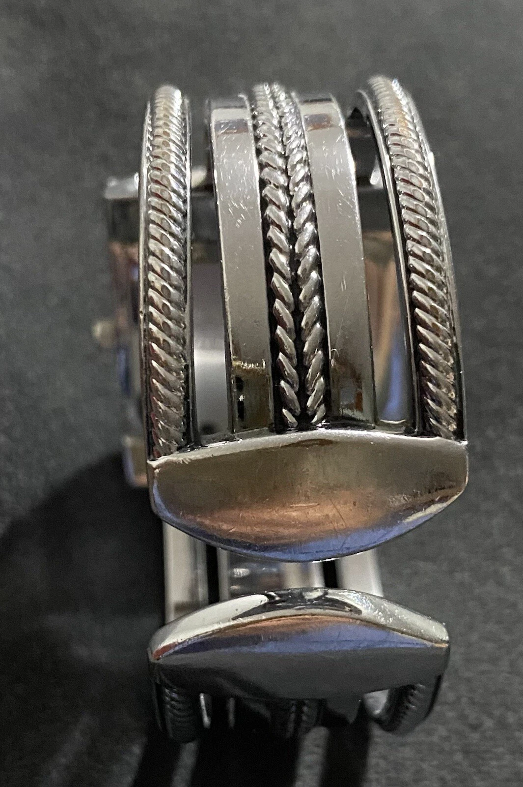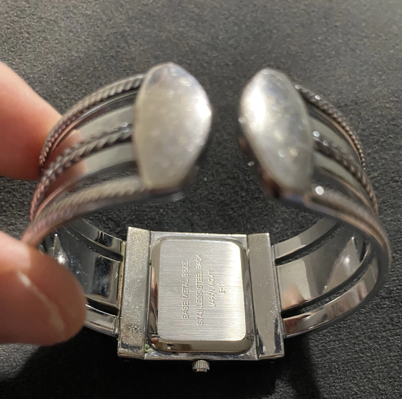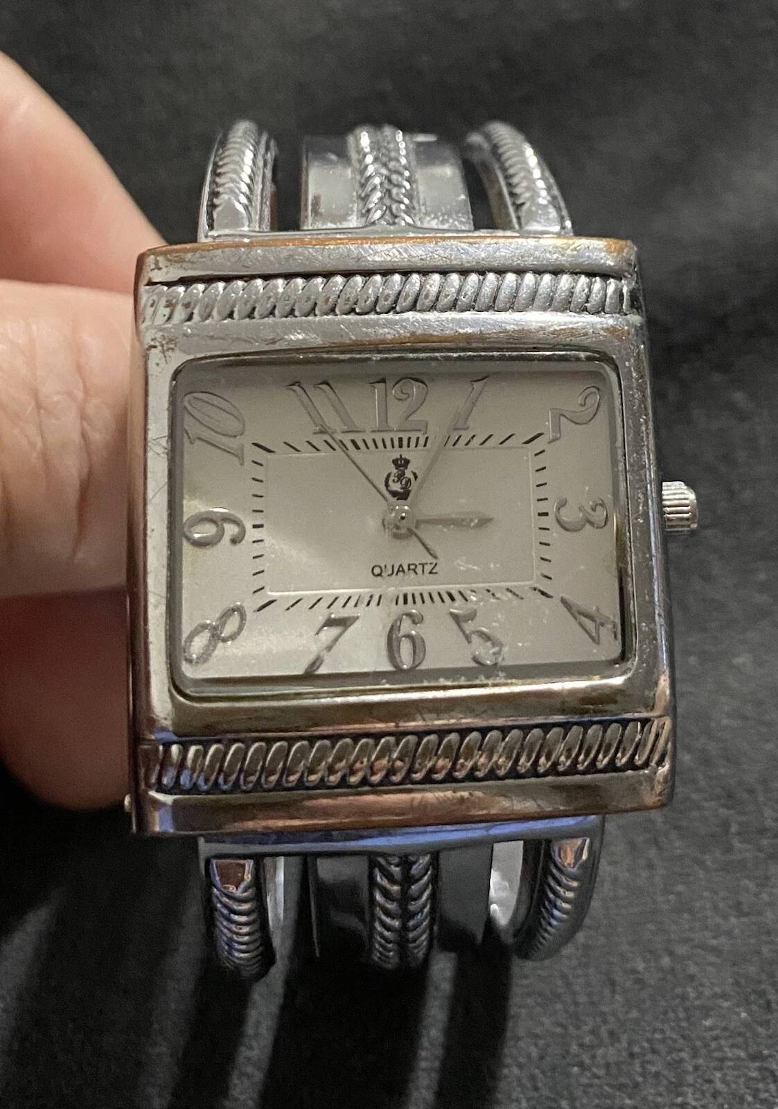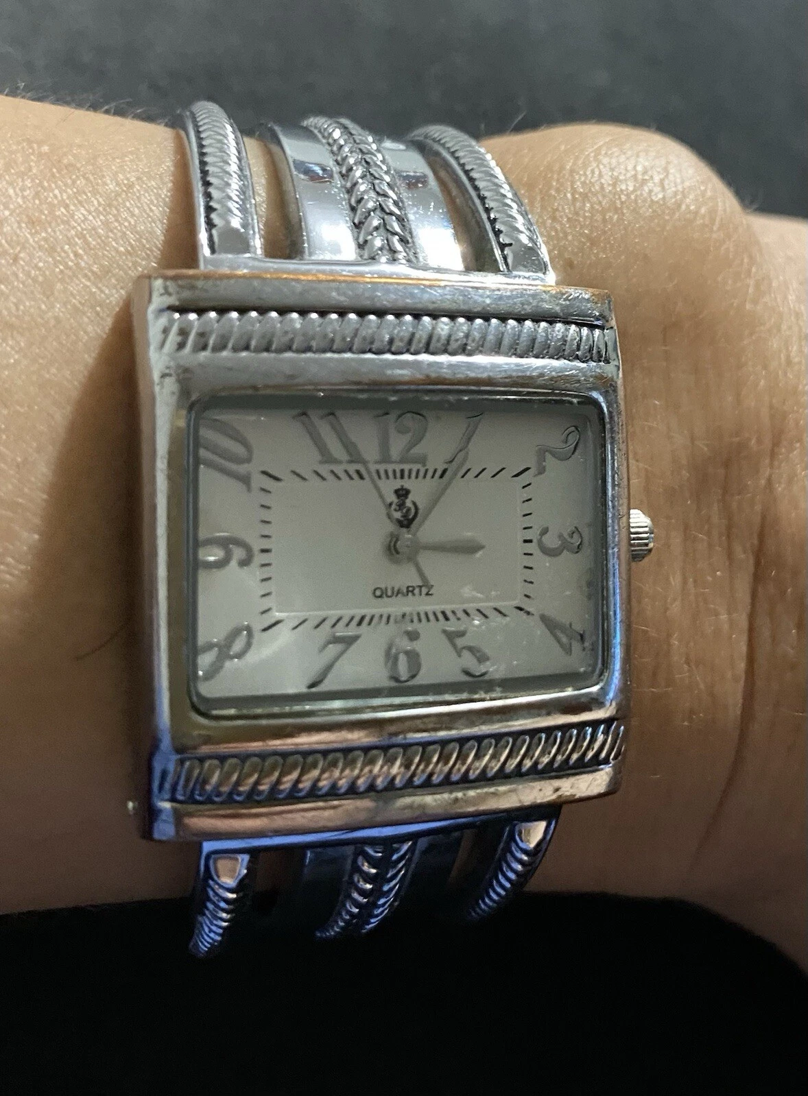 Premier Designs Cario Cuff Watch Silver Antiqued Hinged Band Quartz Movement