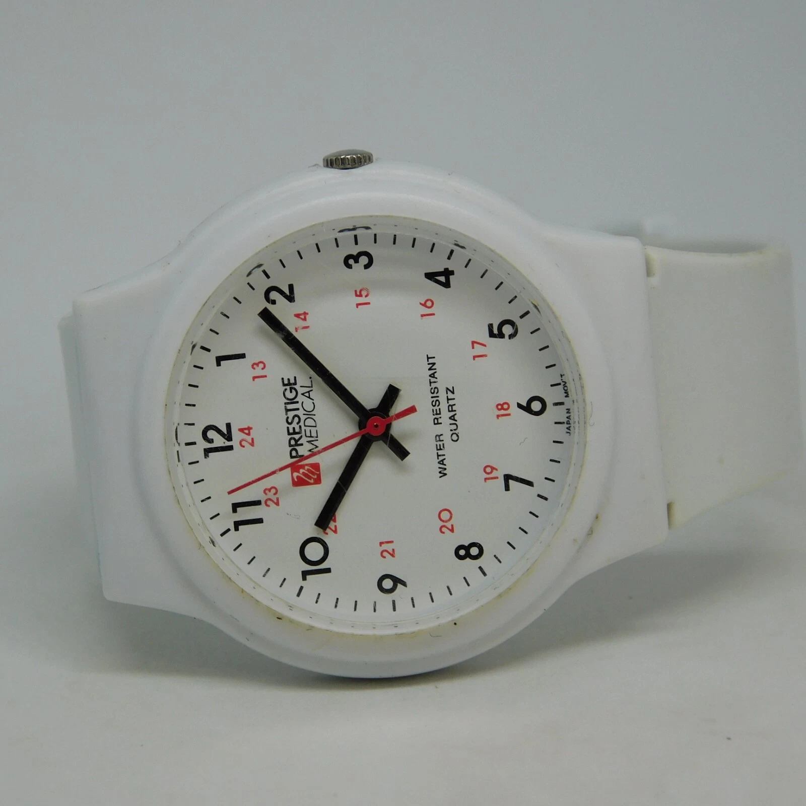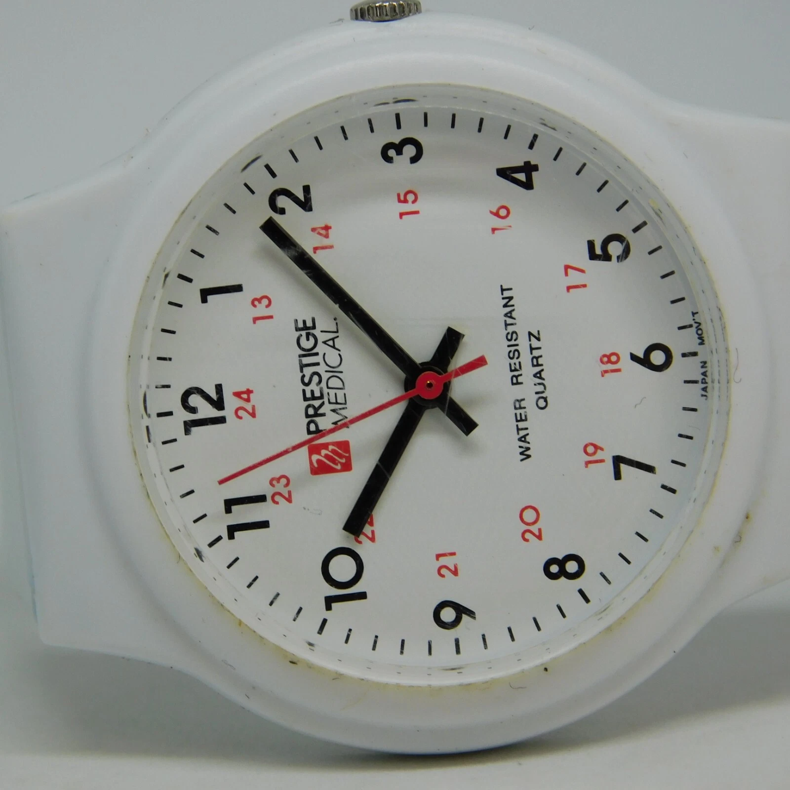 Prestige Medical White Tone Plastic Quartz Analog Women's Watch New Battery
