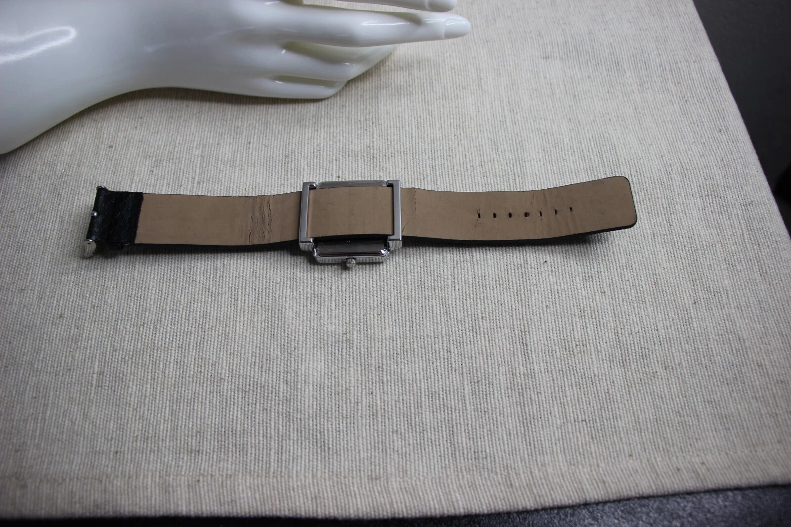 Premier Designs Silvertone Slide Watch Black Band WORKS