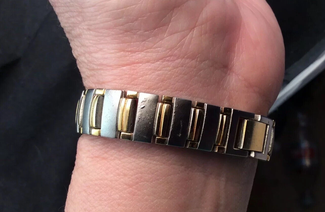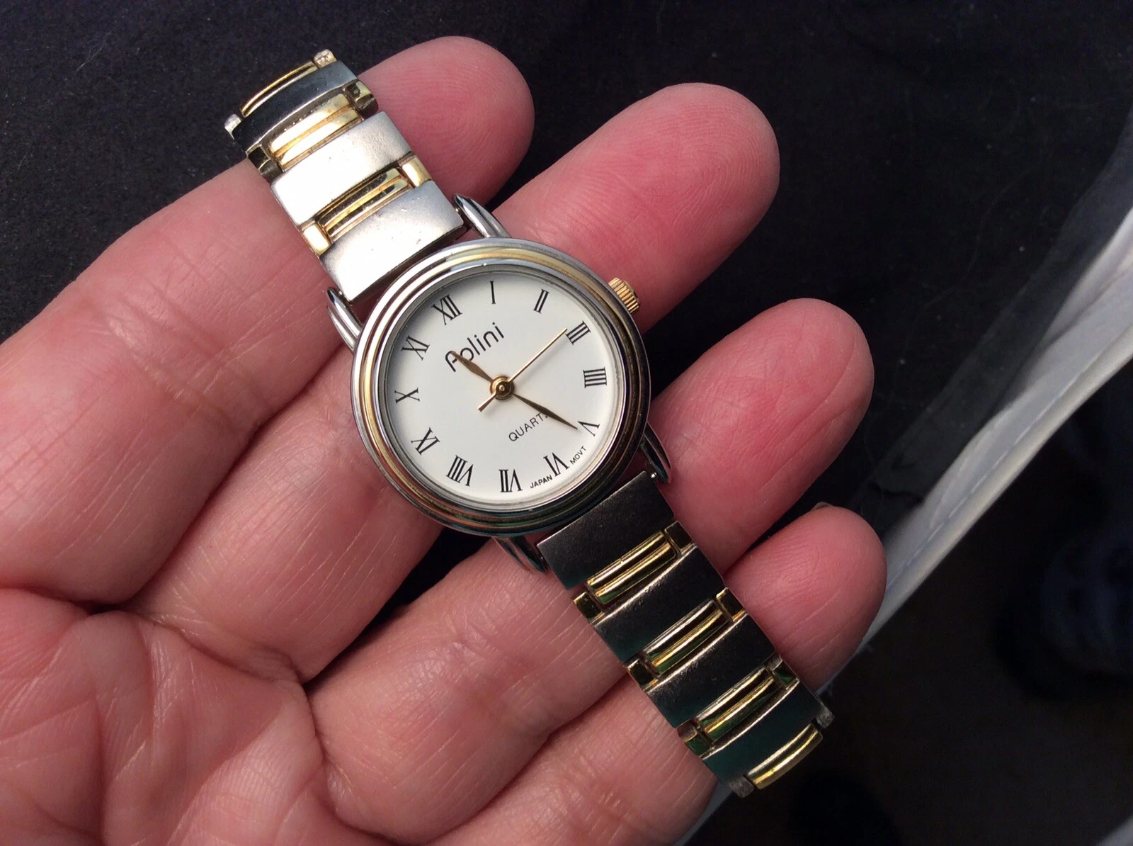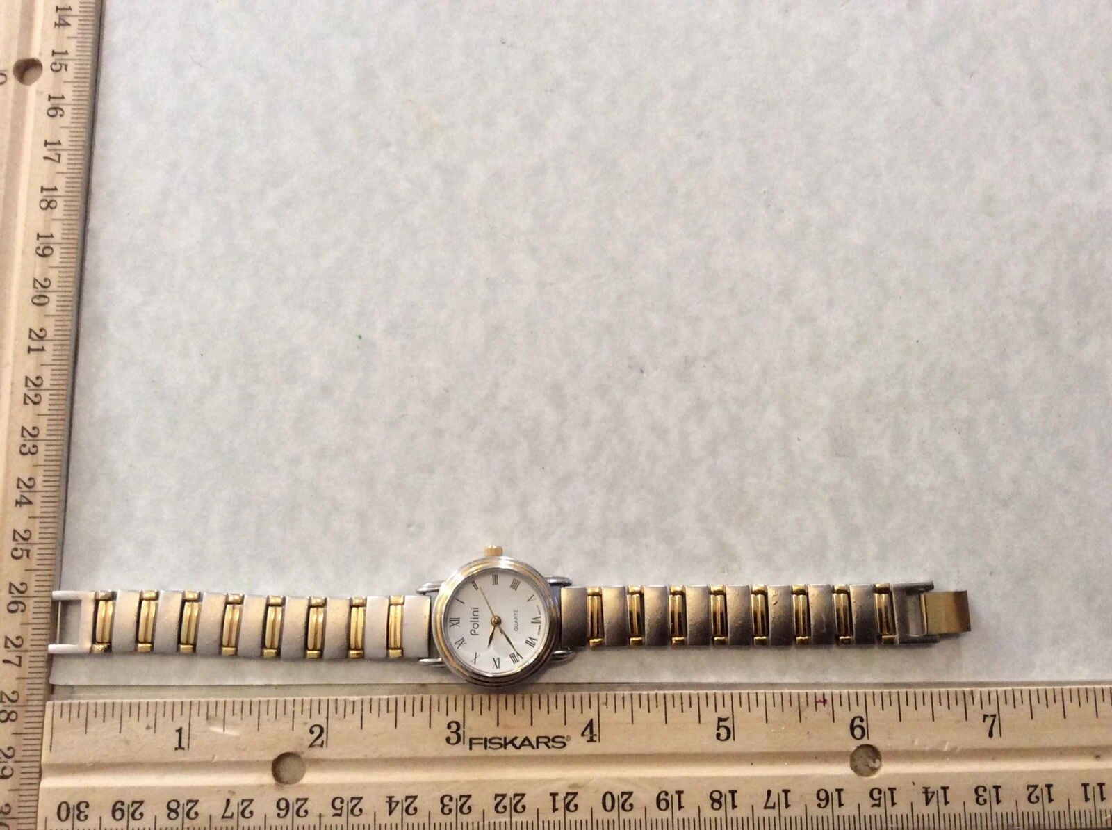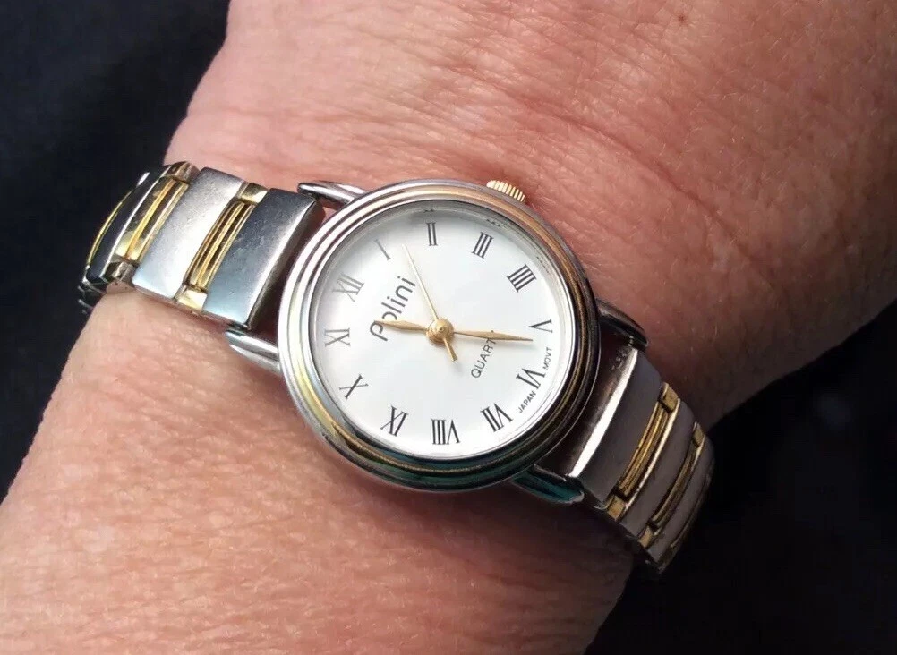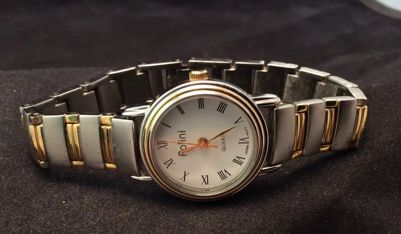 Nice Polini Quartz Ladies Brushed Silver with Gold Trim Quartz Watch New Battery