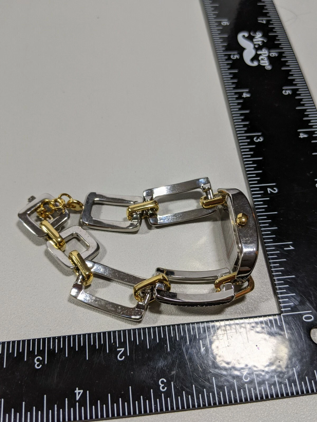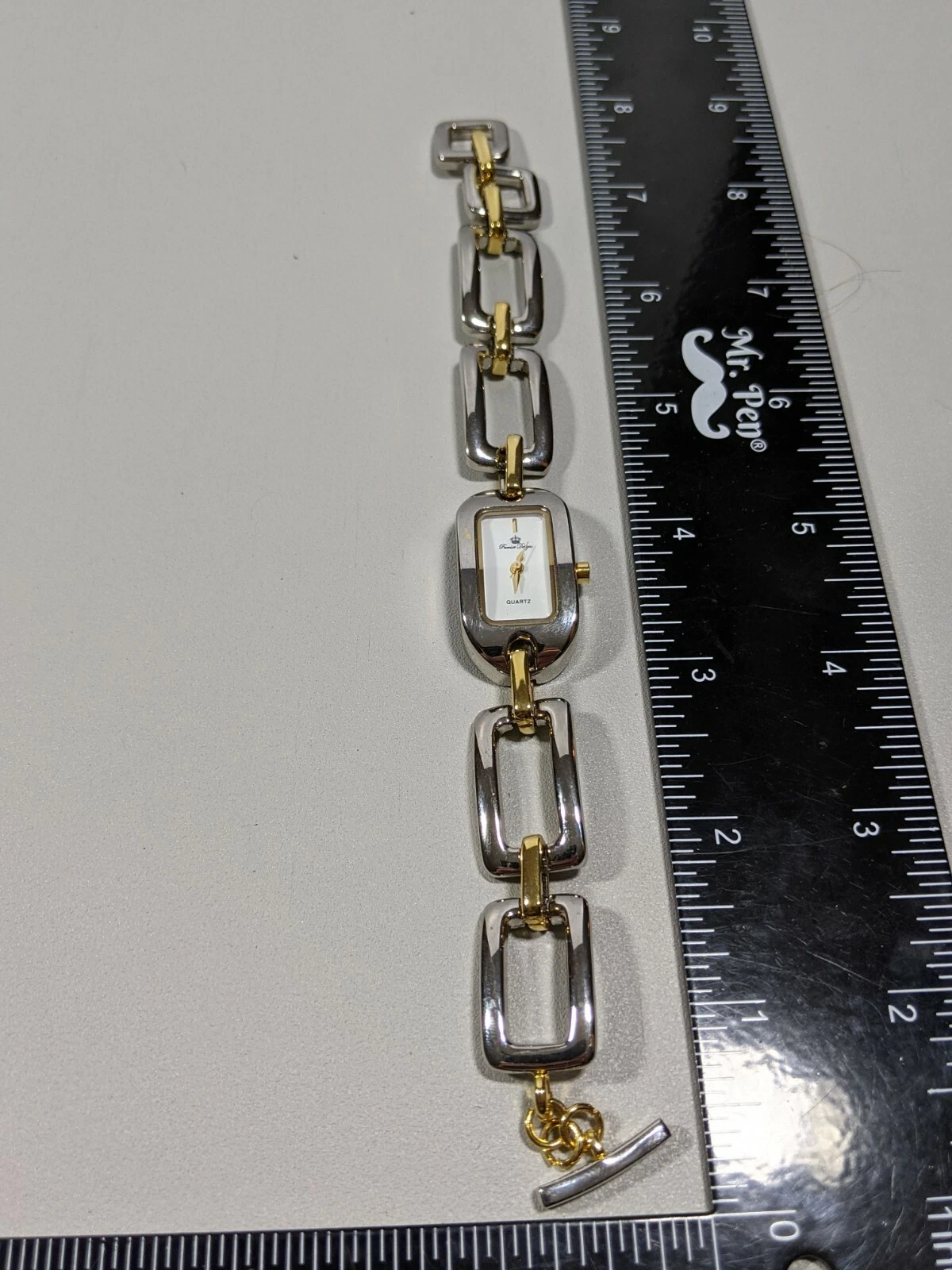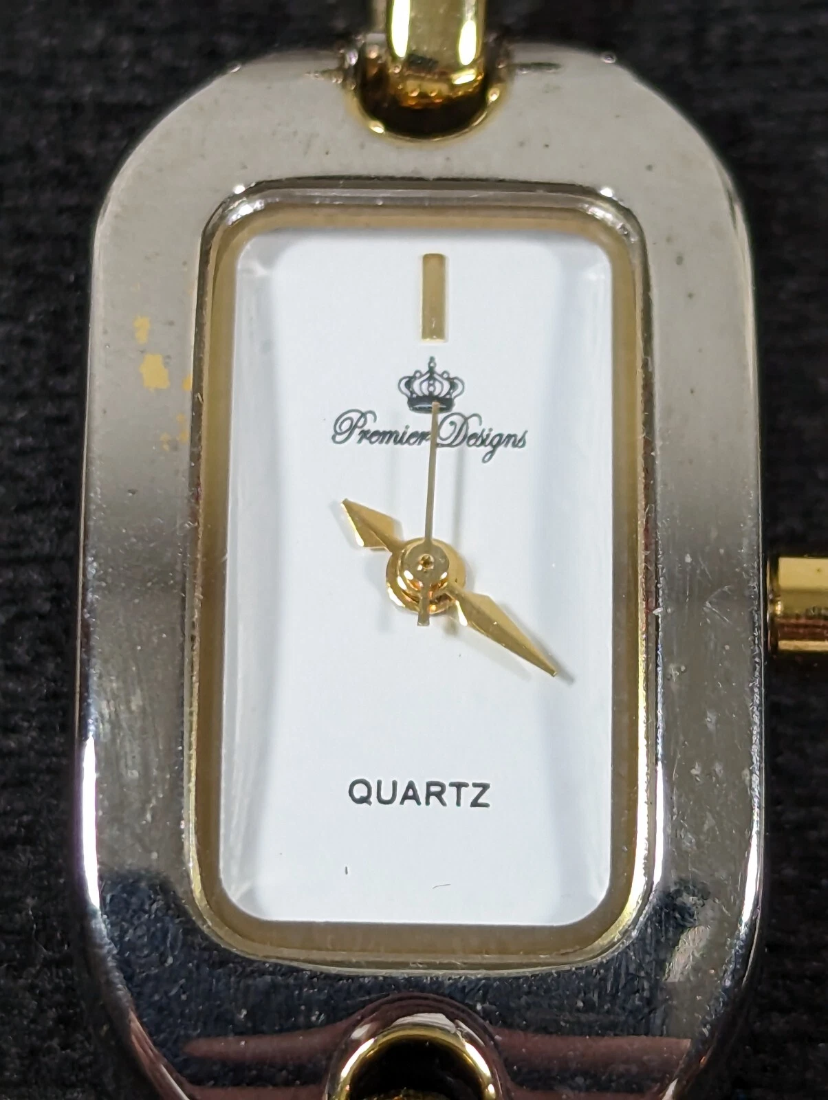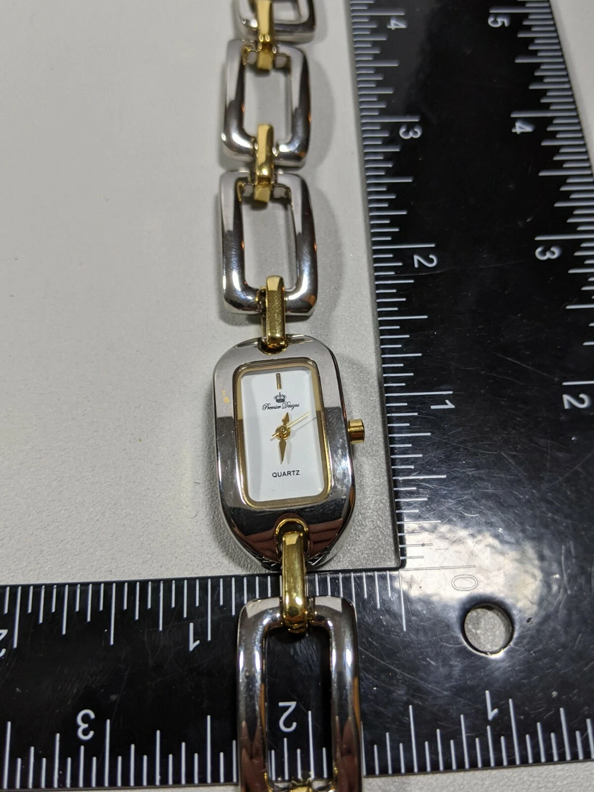 Premier Designs White Dial Silver Tone Rectangle Case Two Tone Bracelet Watch