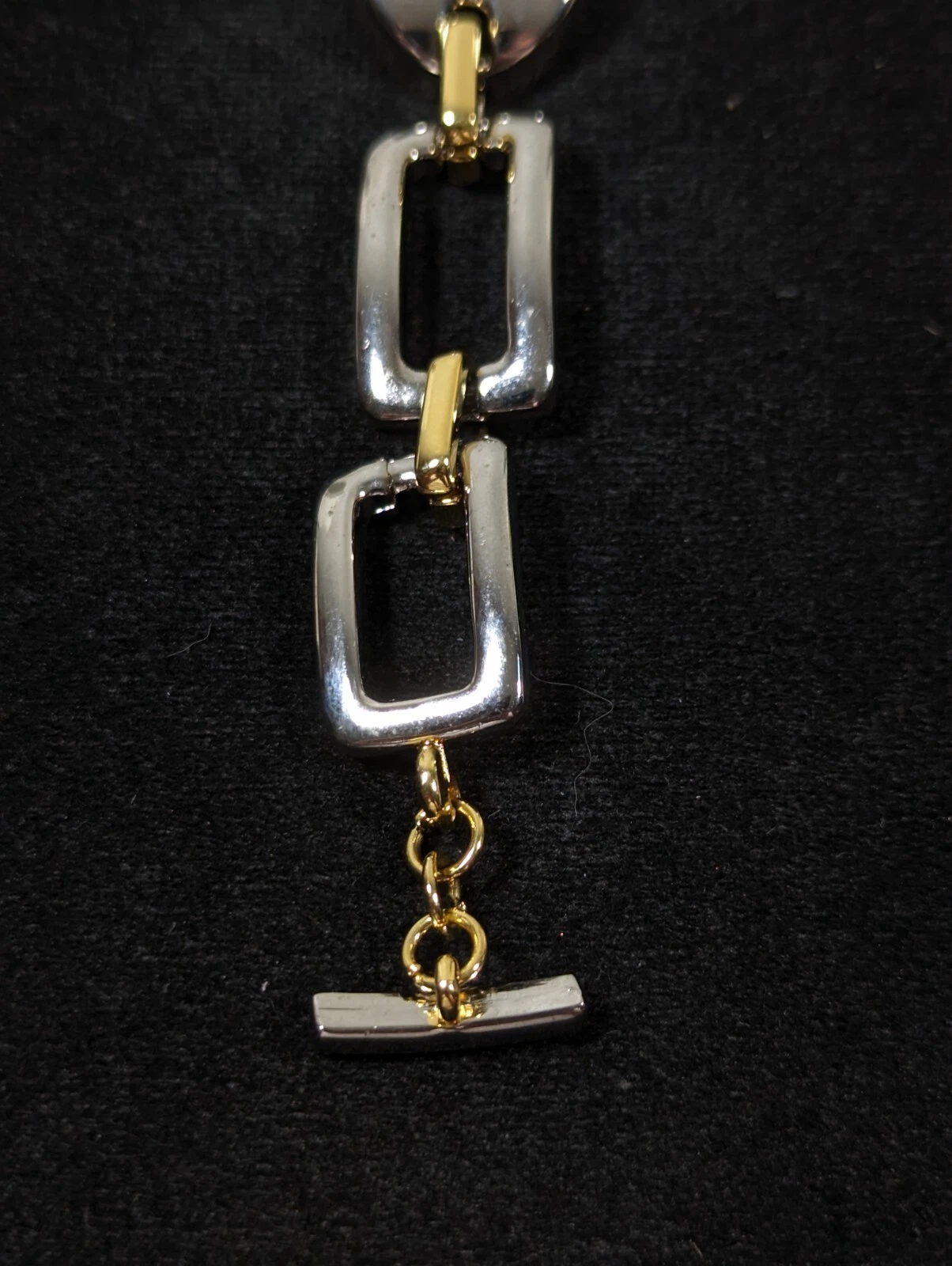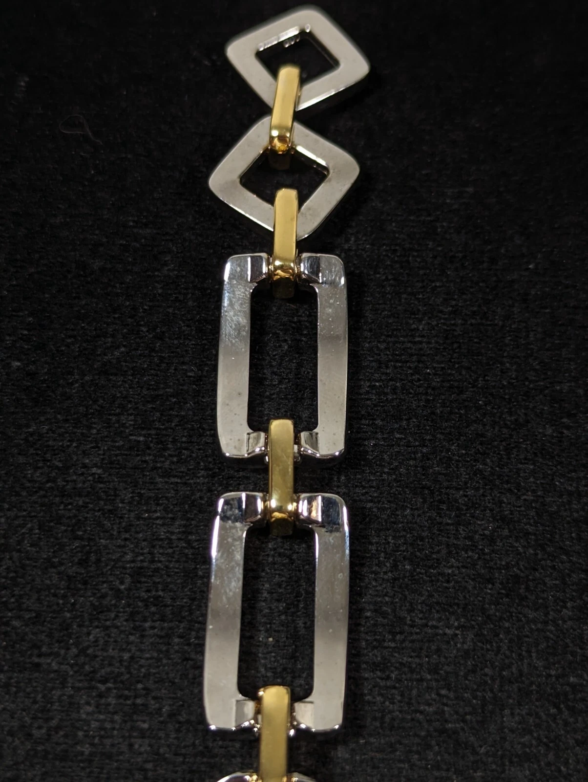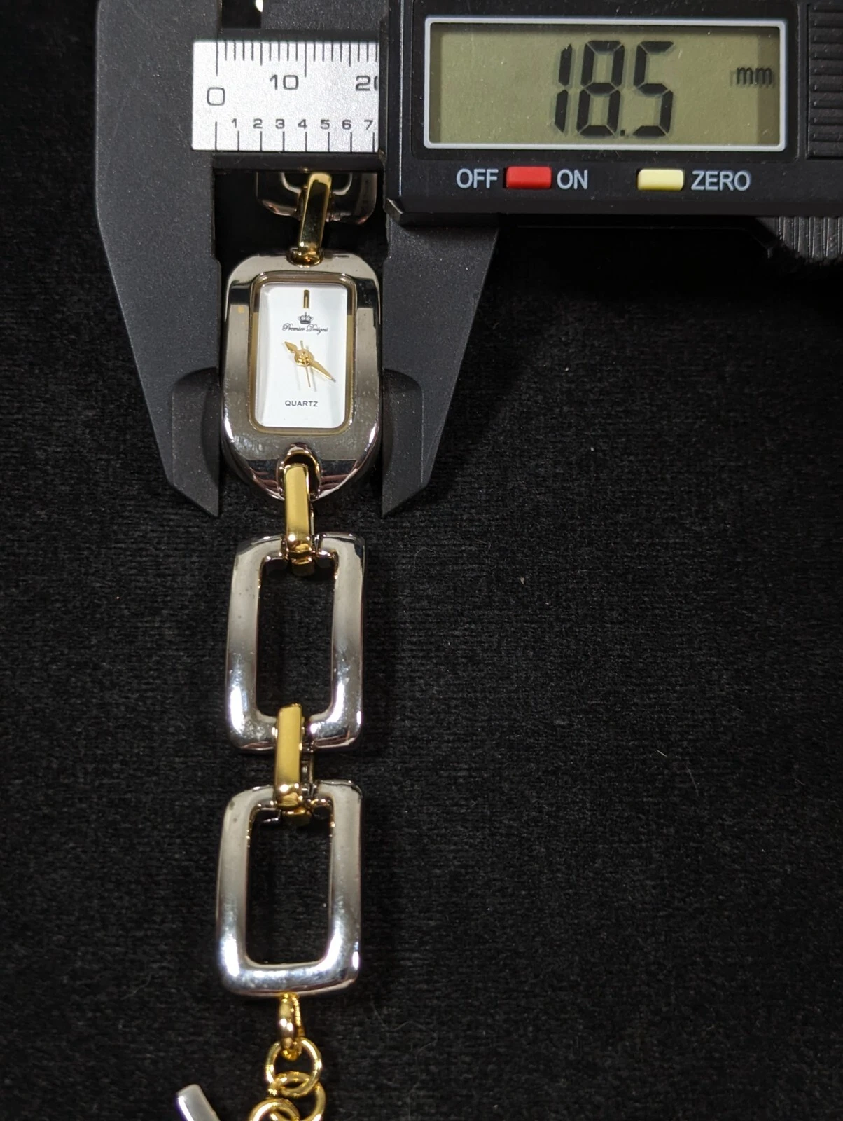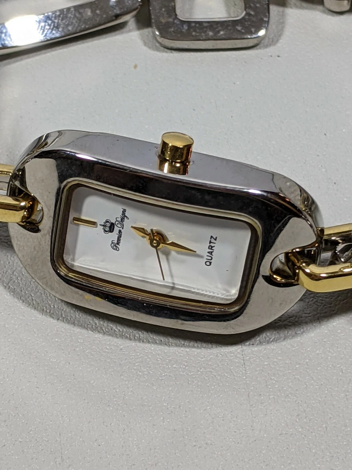 Premier Designs White Dial Silver Tone Rectangle Case Two Tone Bracelet Watch