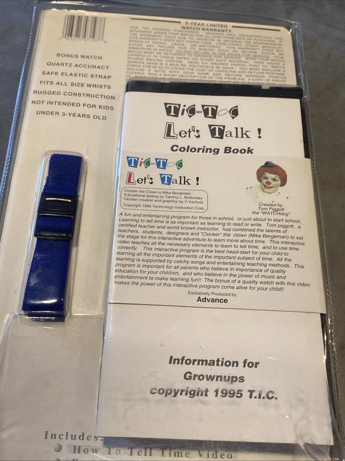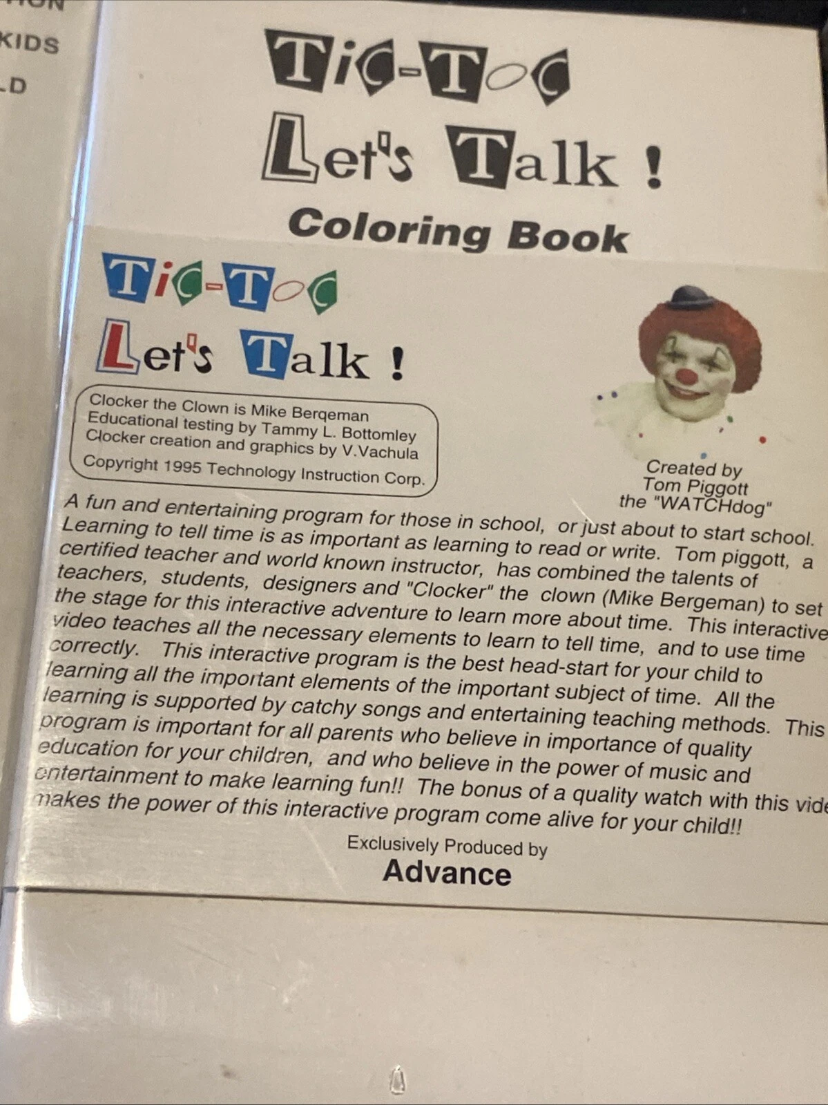 Vtg Tic-toc Let's Talk Clown Watch & Coloring Book How to Tell Time Video VHS
