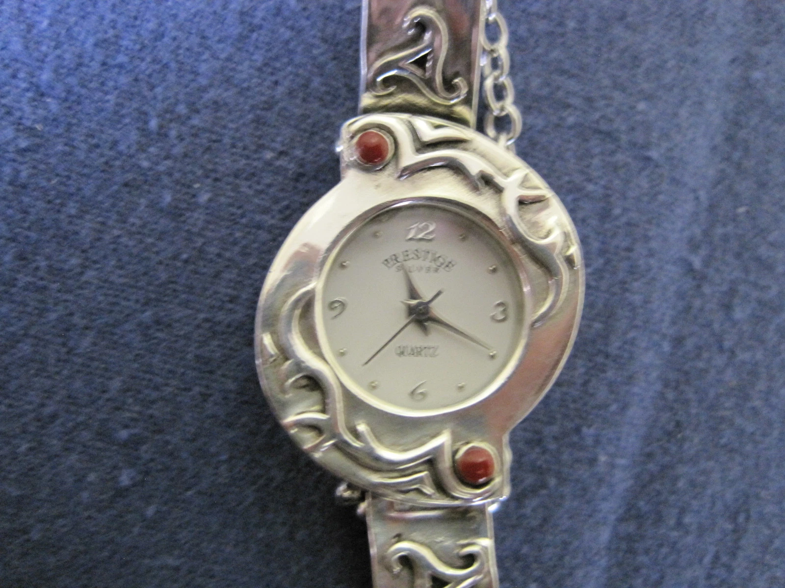 #107  ladys sterling silver abstract PRESTIGE jasper quartz watch bracelet