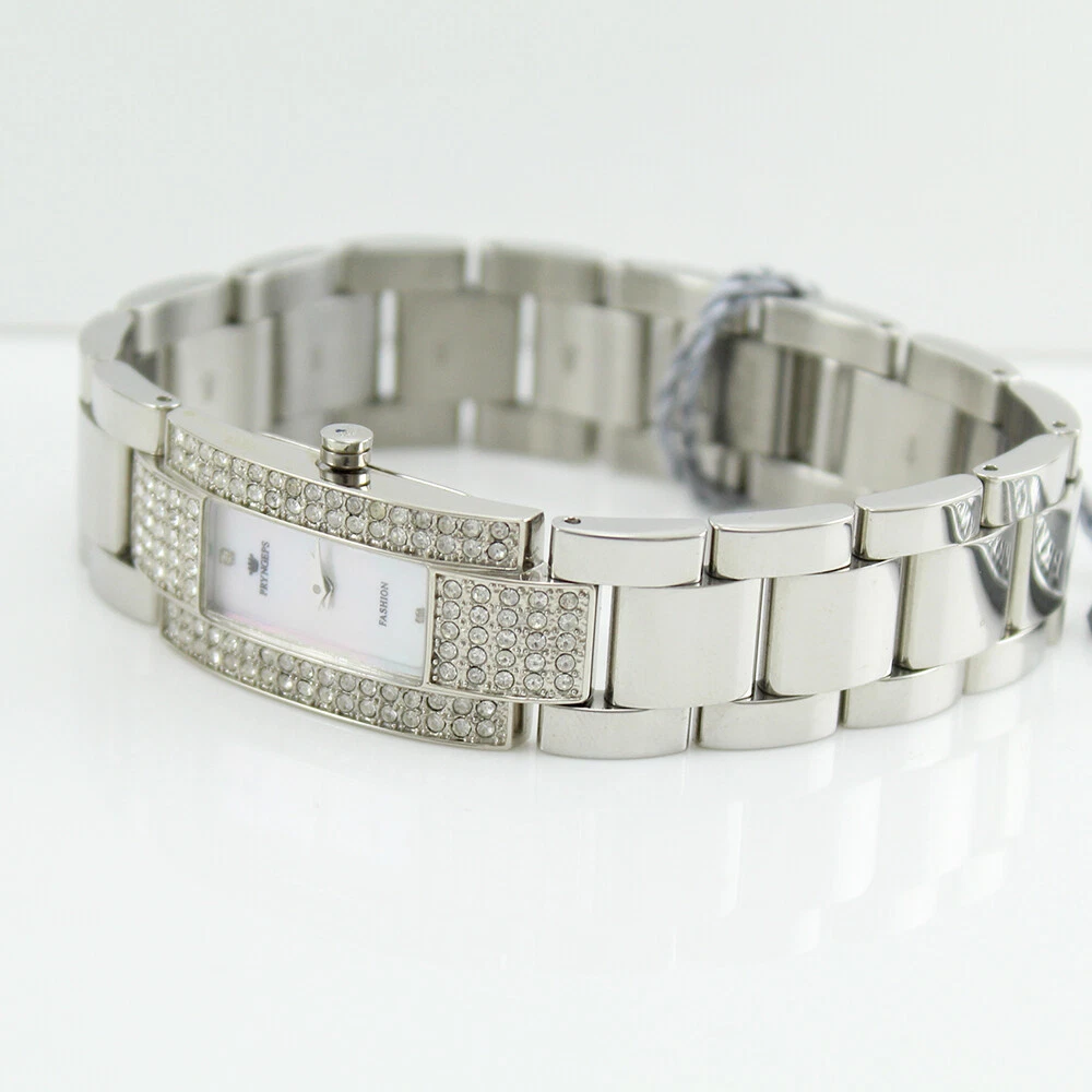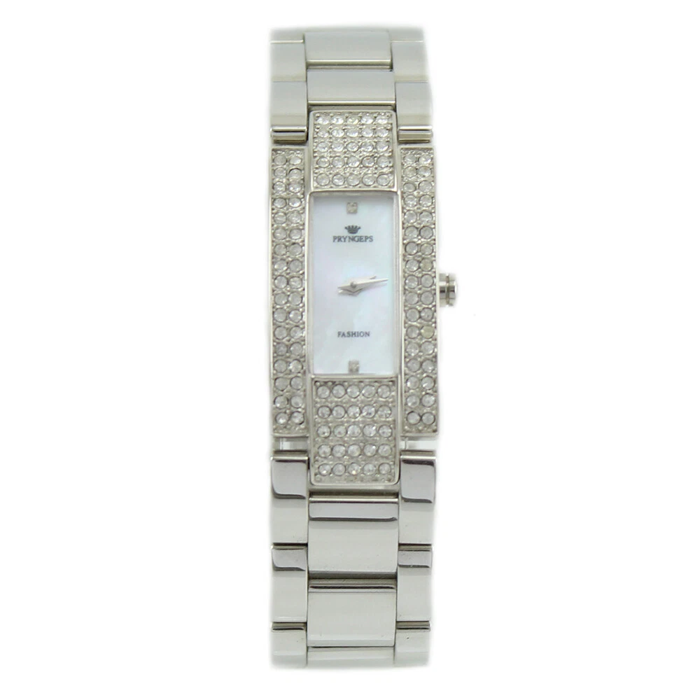 Pryngeps Women's Rectangular Mother of Pearl Dial Watch Case with Stones