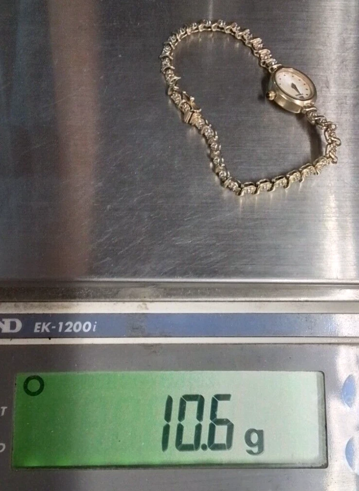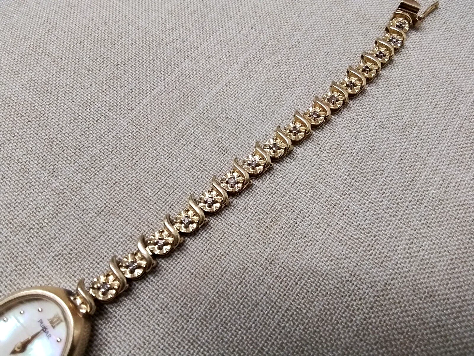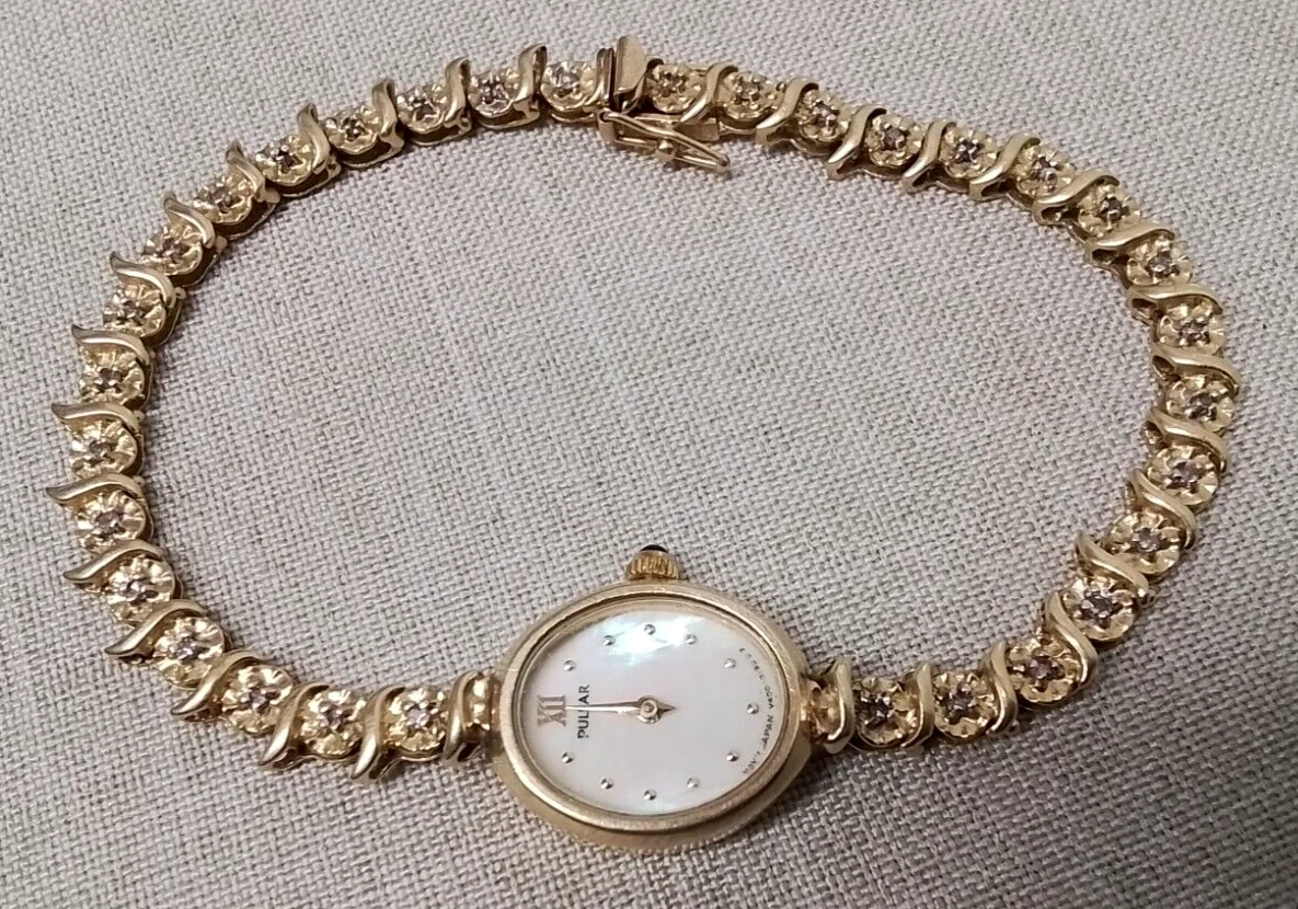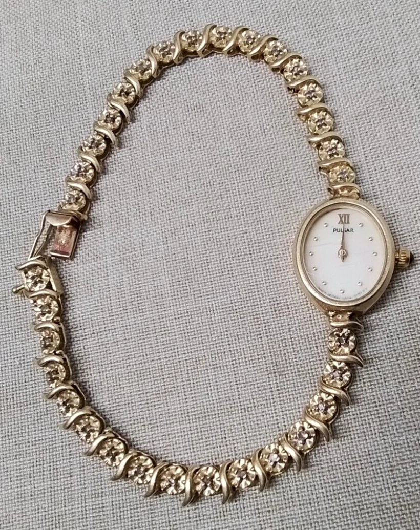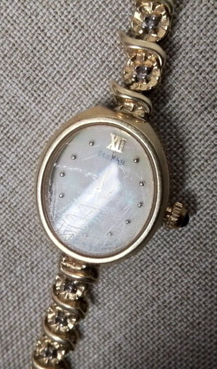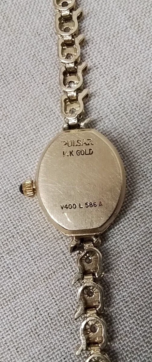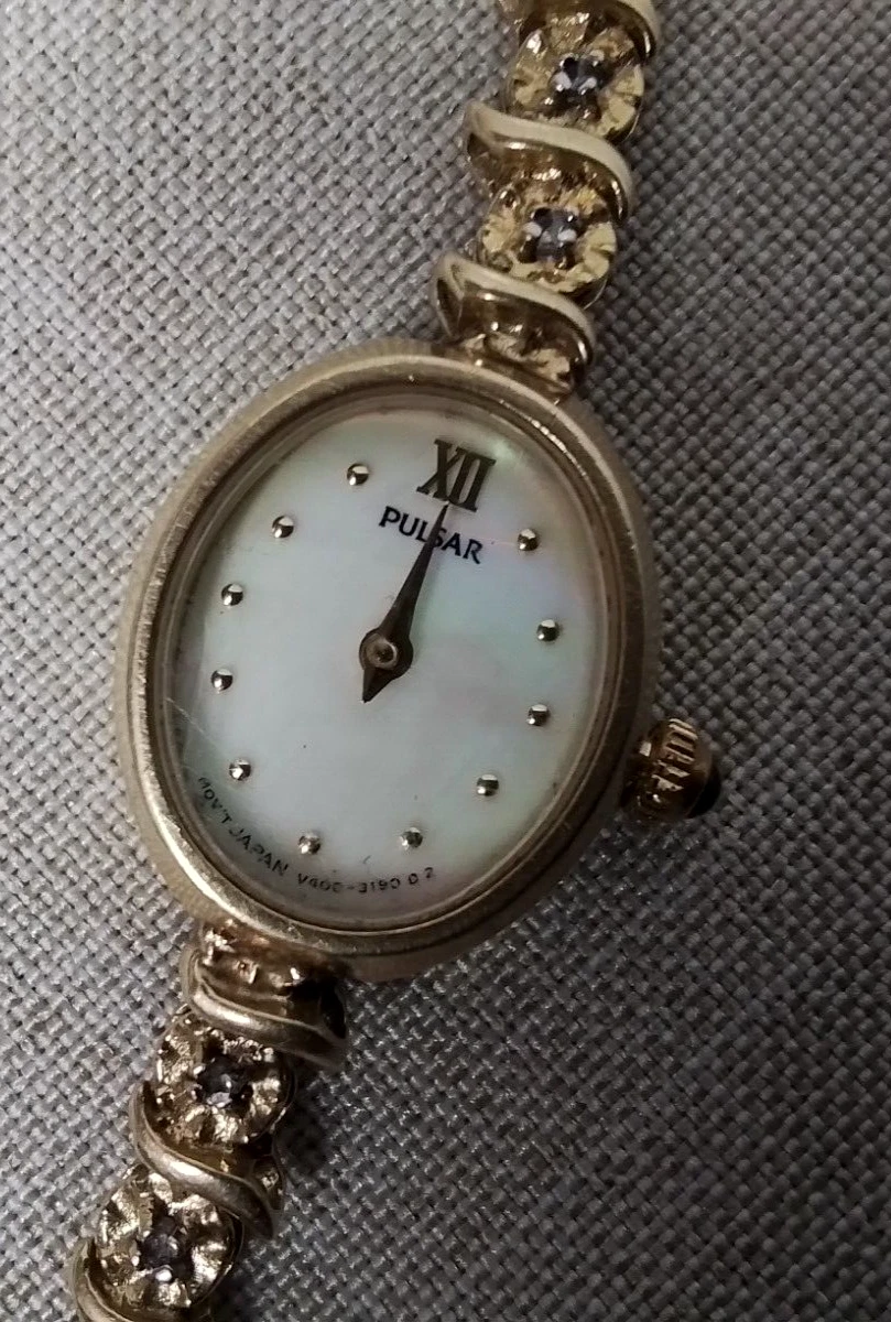 14k 10.6 grams Pulsar Watch Mother of Pearl Face V400 L 586 A - 14K/Diamond Band