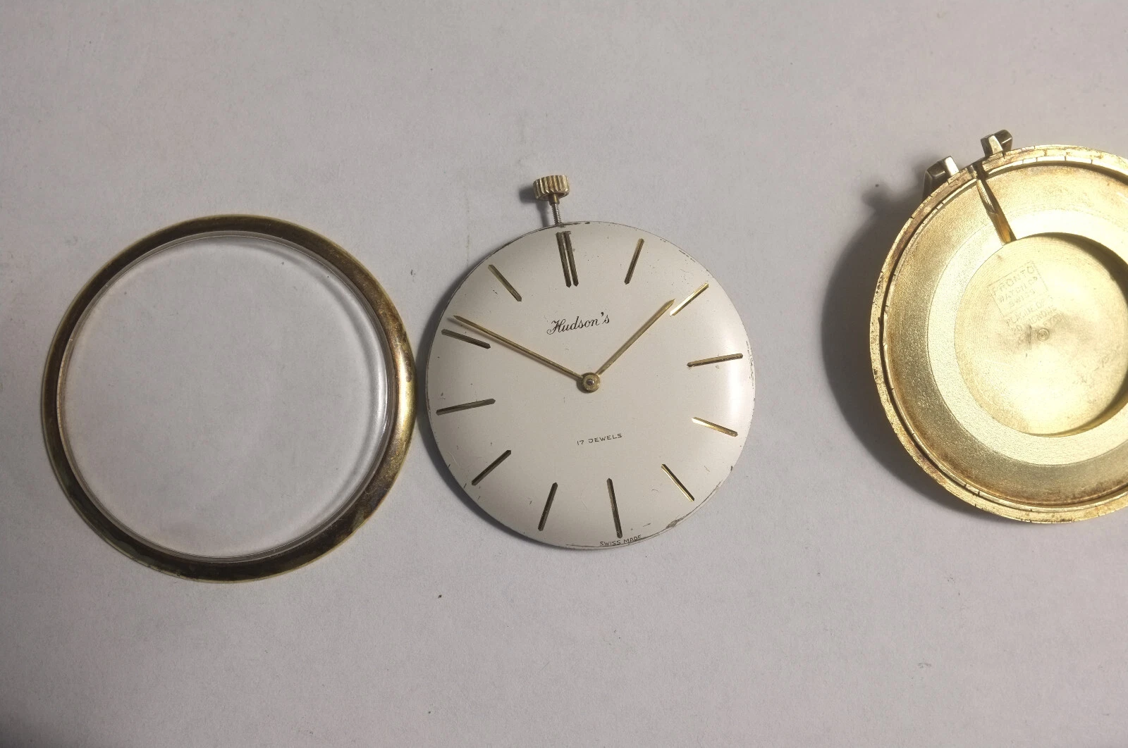 Hudson's Pronto dress pocket watch 17j, extremely thin, runs well, 1960s or '70s