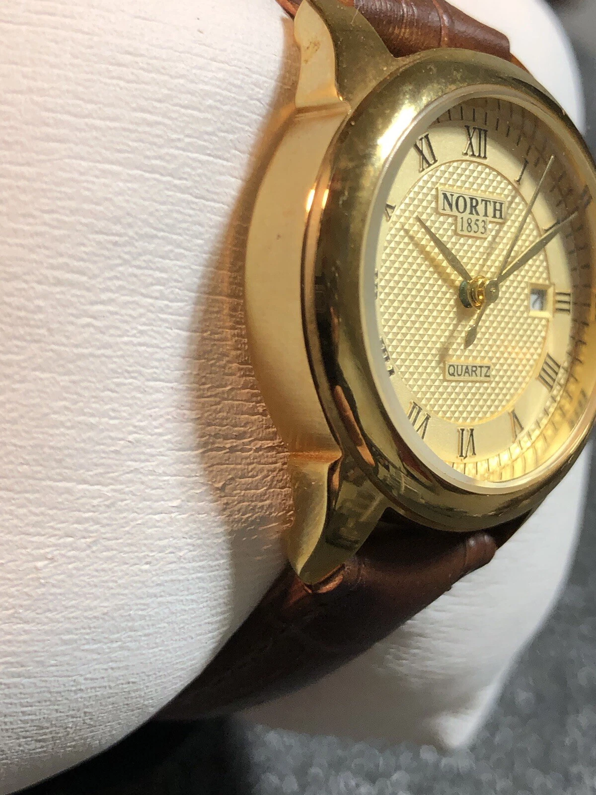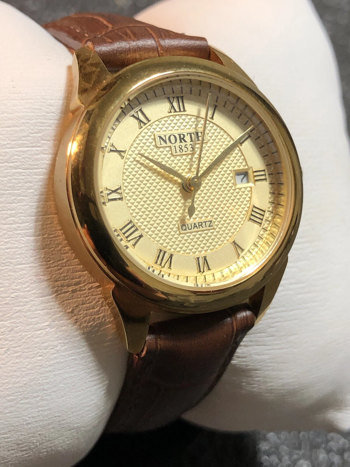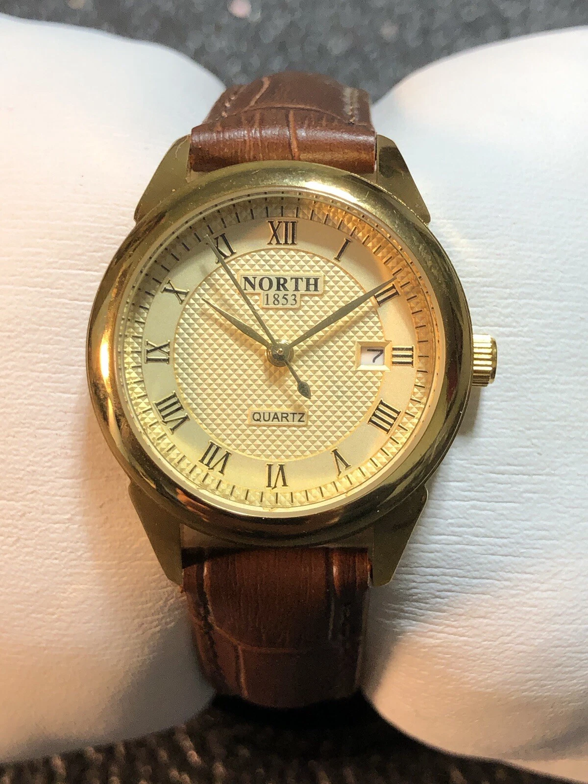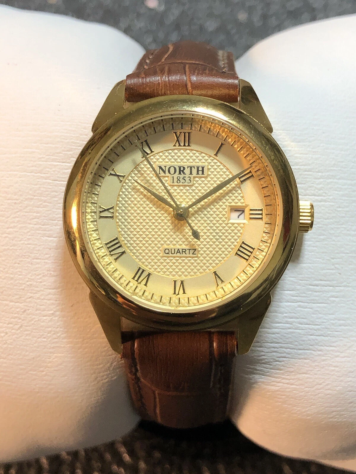 North 1853 Women’s Quartz Watch Gold Tone Dial Wristwatch W/Date New Battery