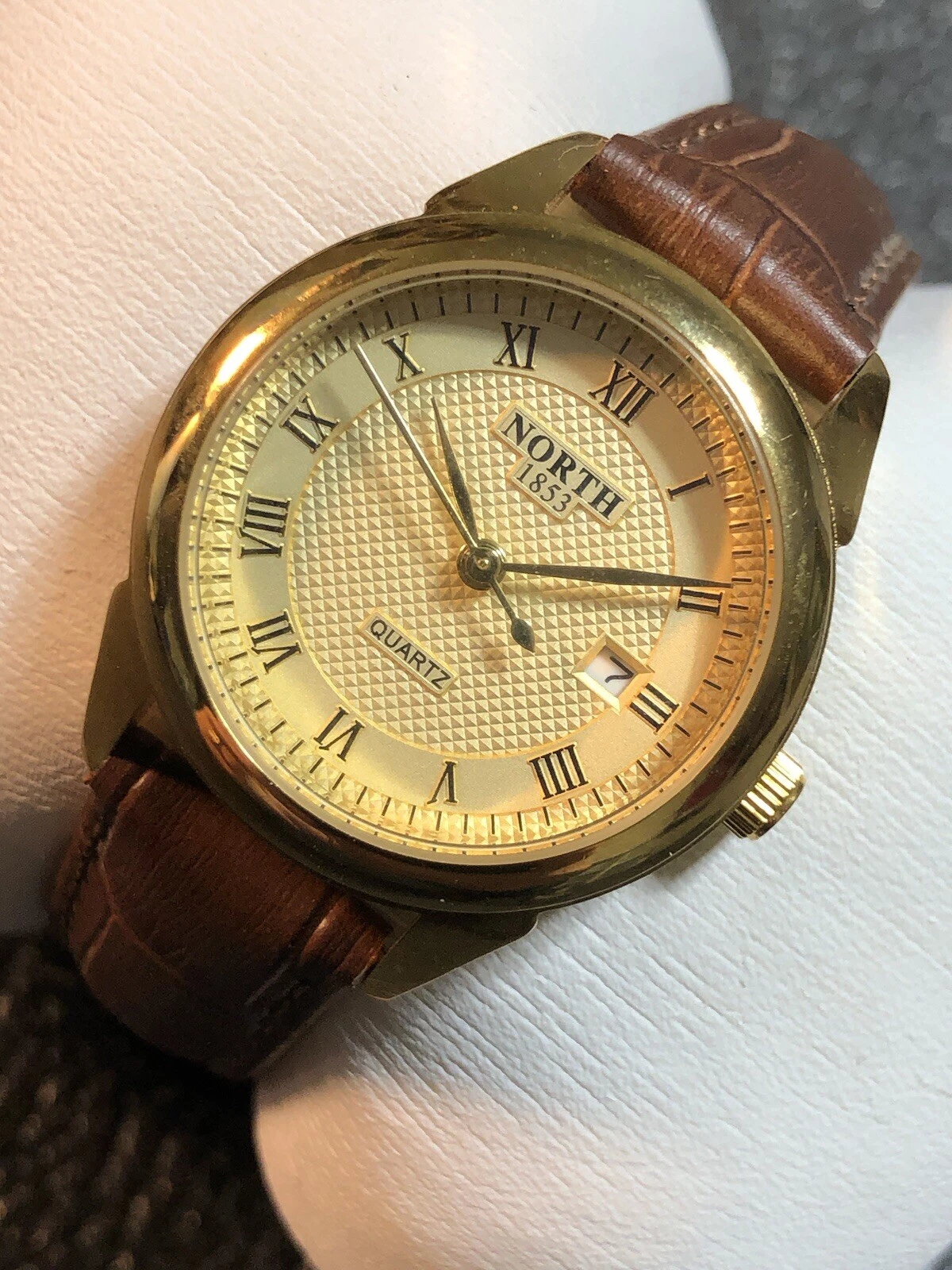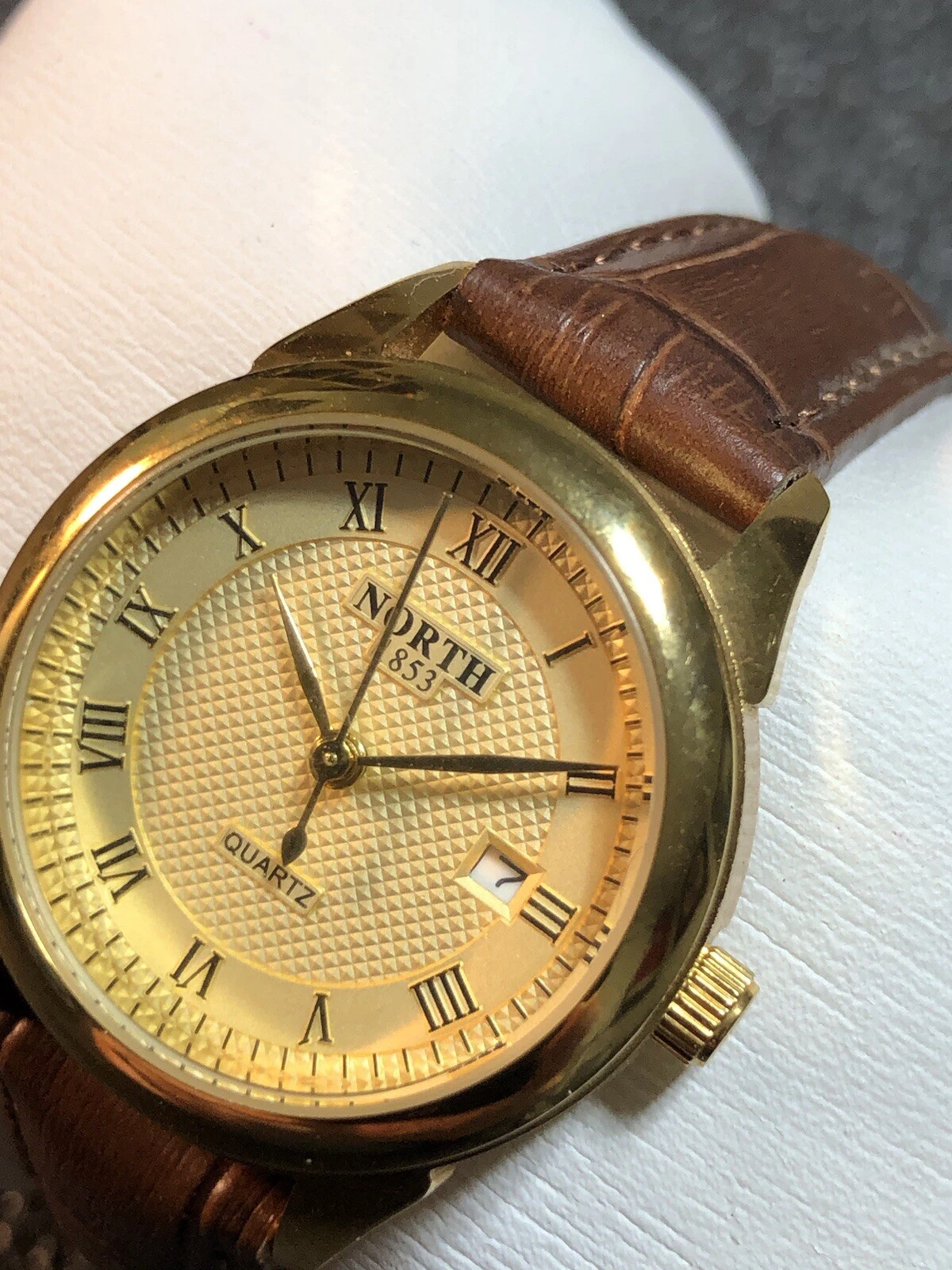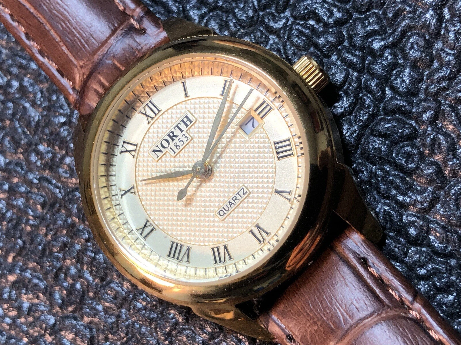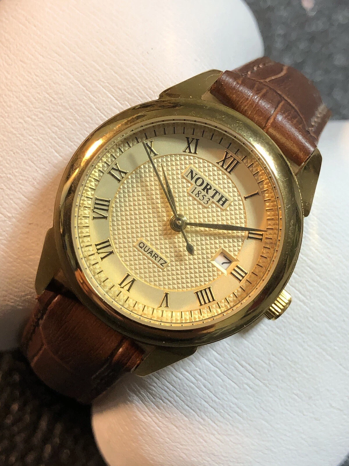 North 1853 Women’s Quartz Watch Gold Tone Dial Wristwatch W/Date New Battery