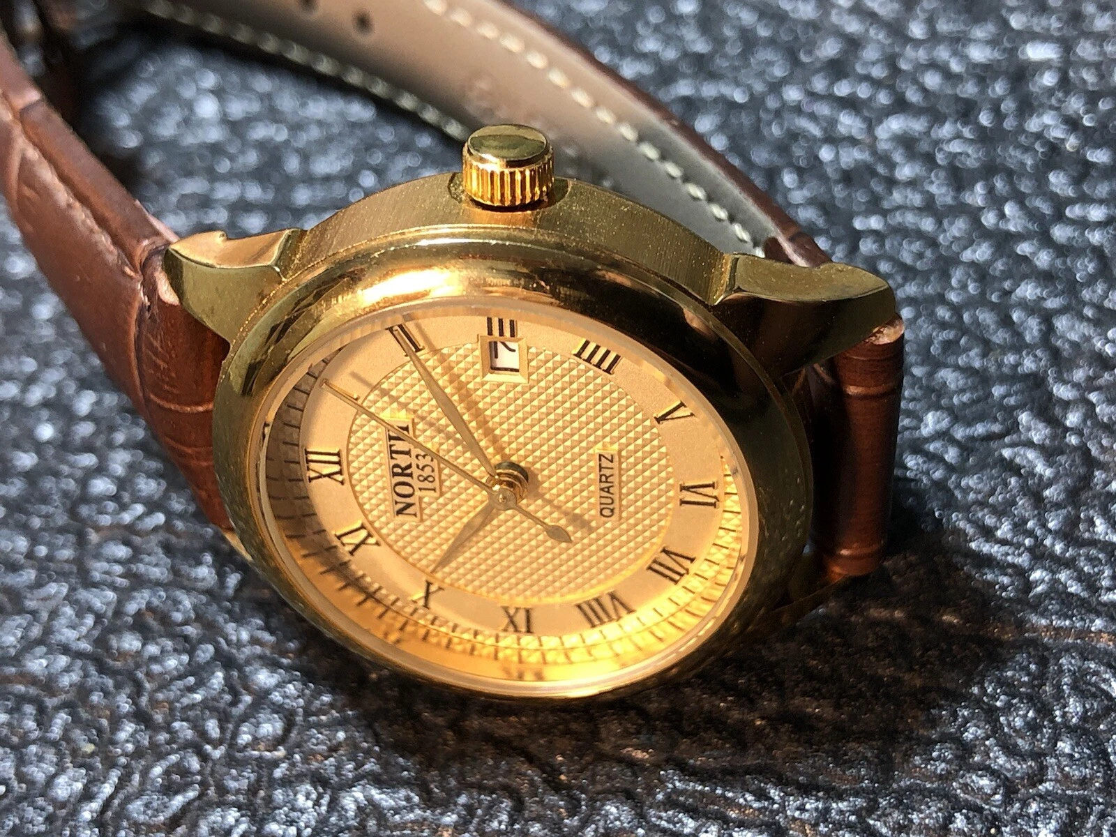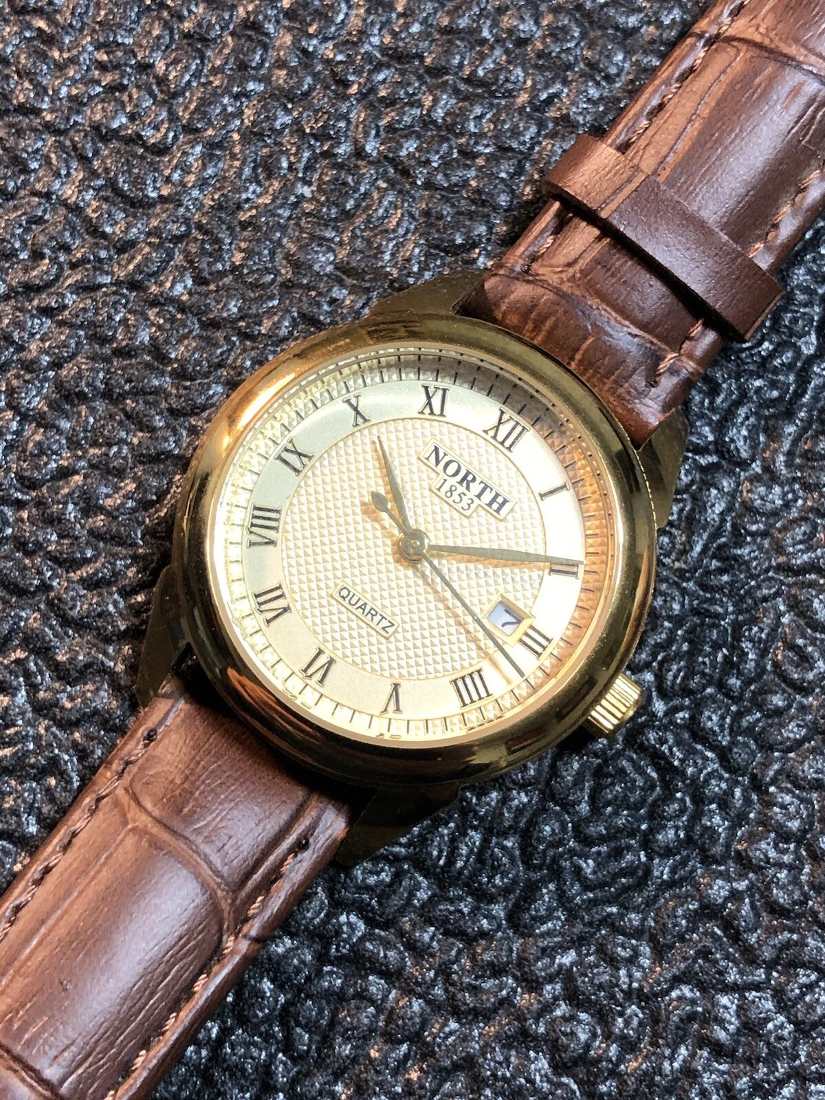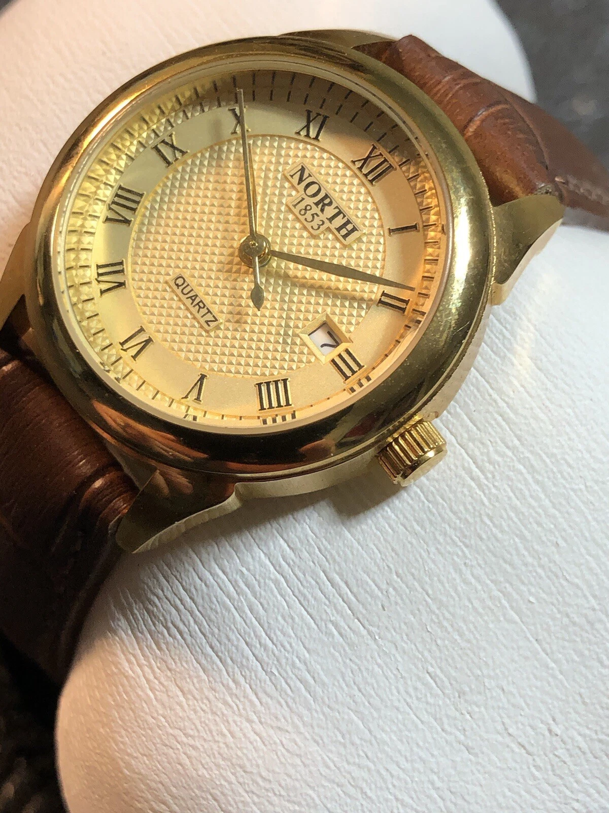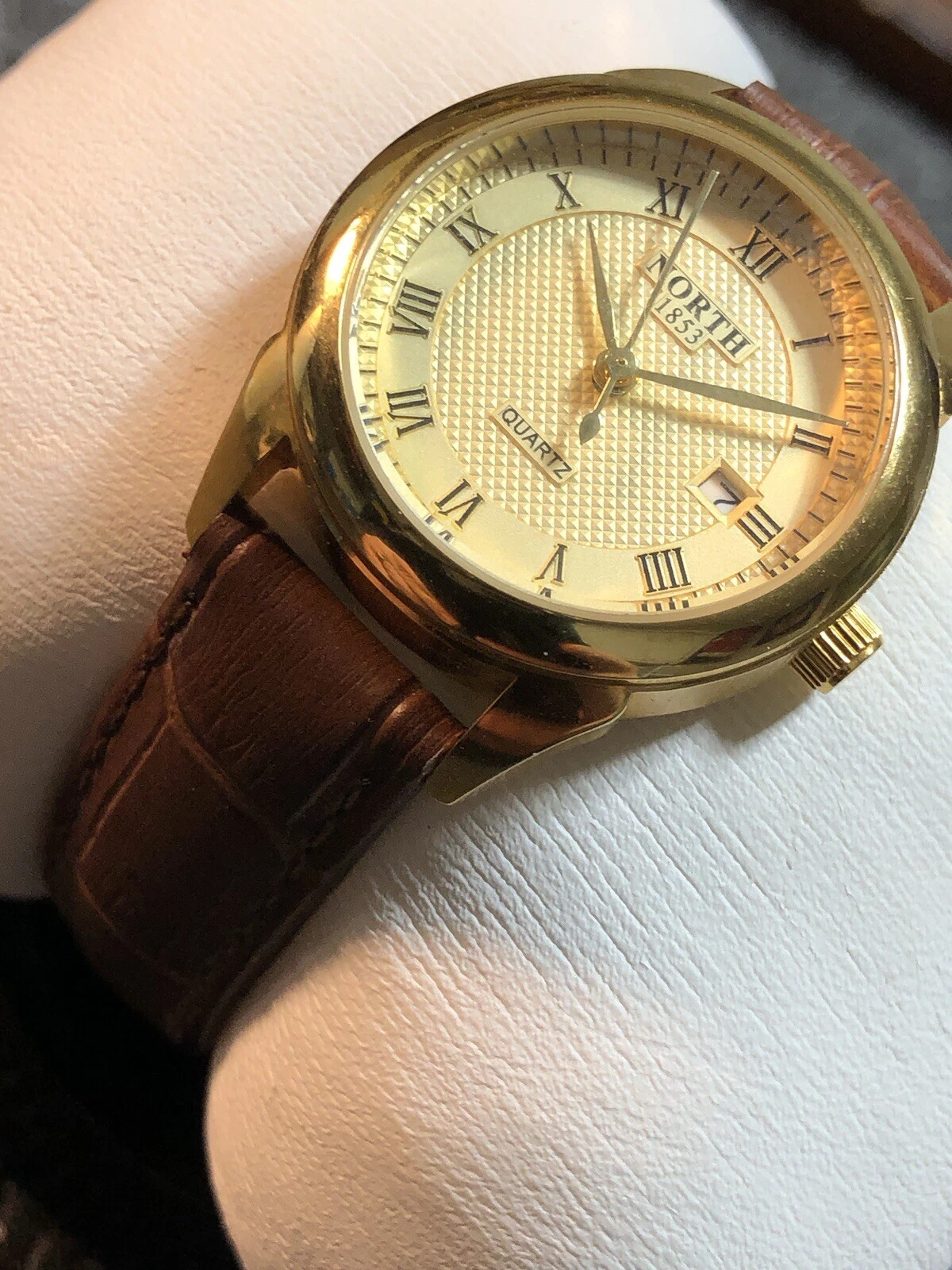 North 1853 Women’s Quartz Watch Gold Tone Dial Wristwatch W/Date New Battery