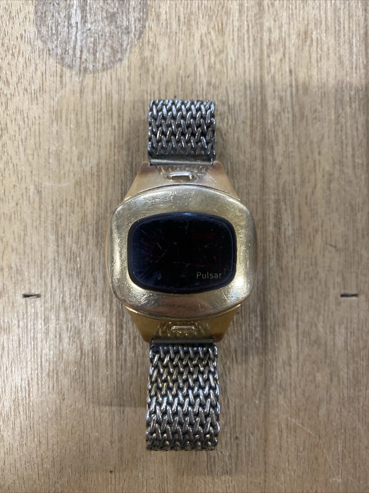 Pulsar Time Computer Vintage 1970's 14k Gold Filled Mens Watch (P4?) Working!