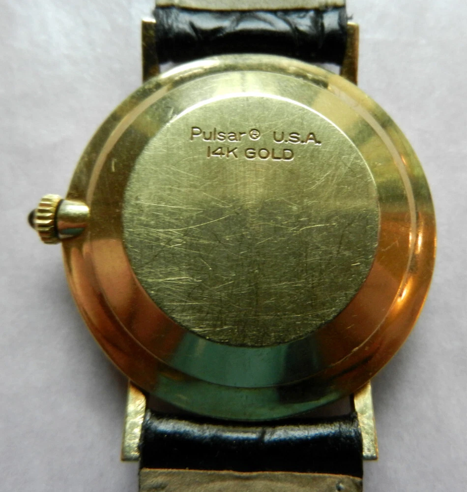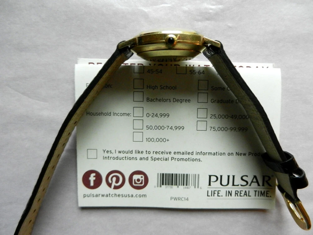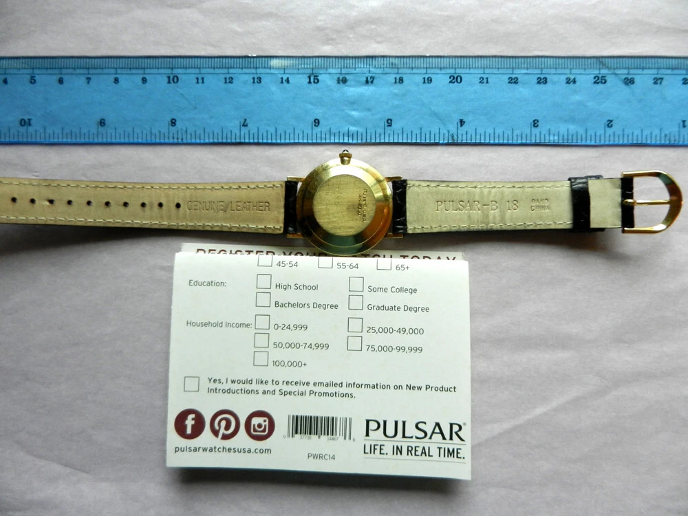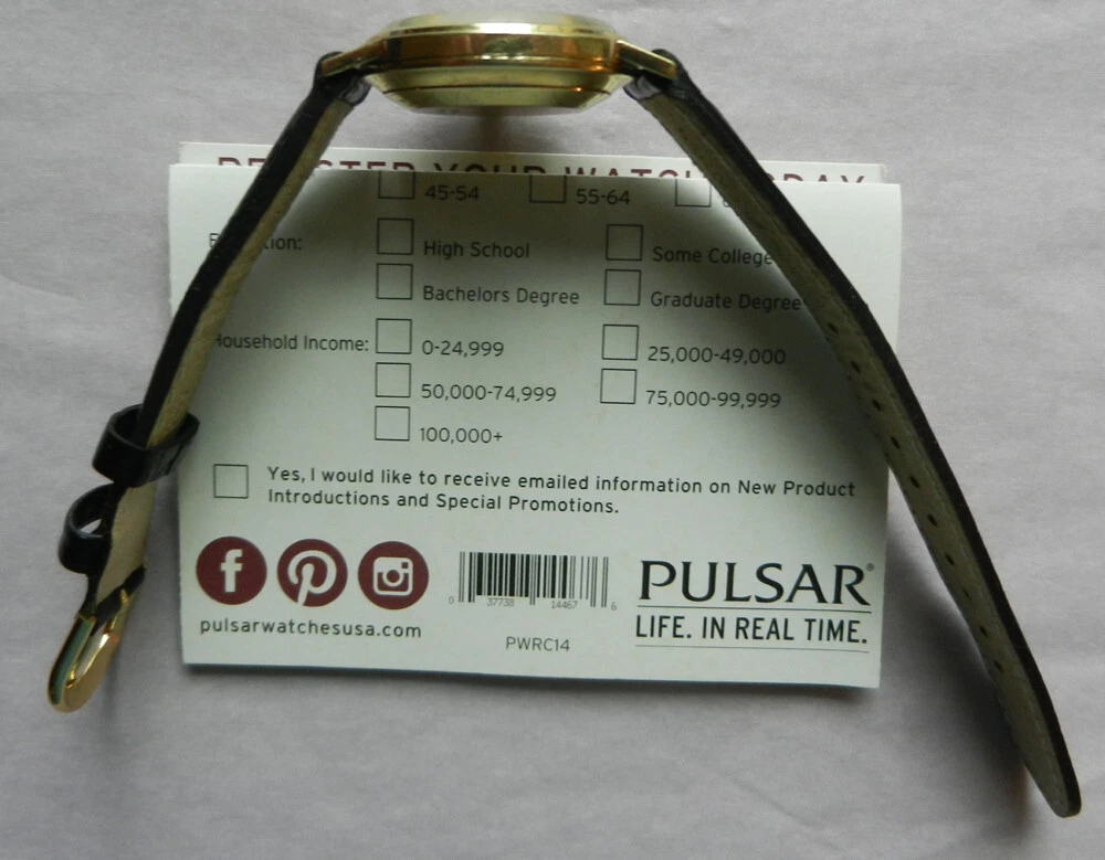 14K/KT/CT Solid Yellow Gold Pulsar/Seiko Quartz Date Day Boxes Papers Strap Rare