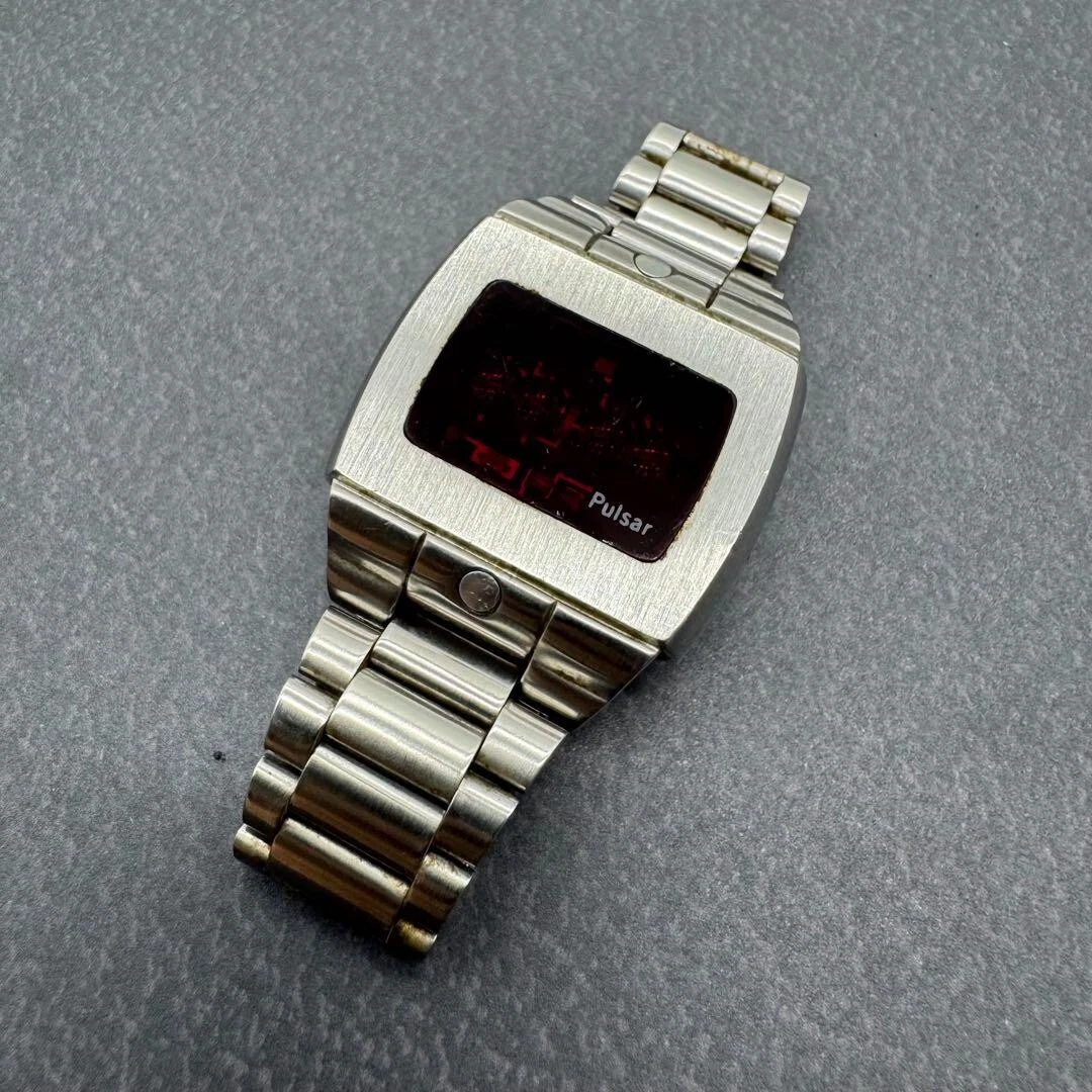 Pulsar P-5 Time Computer LED Digital Watch Wristwatch Stainless Steel USA JP