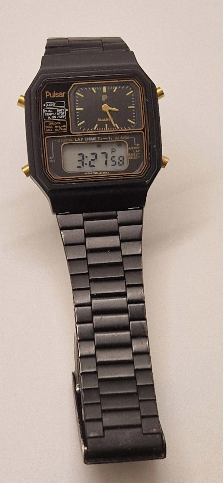 RARE Black Pulsar (by Seiko) Analog & LCD Watch Y651-5120nt Dimensions II Y651a