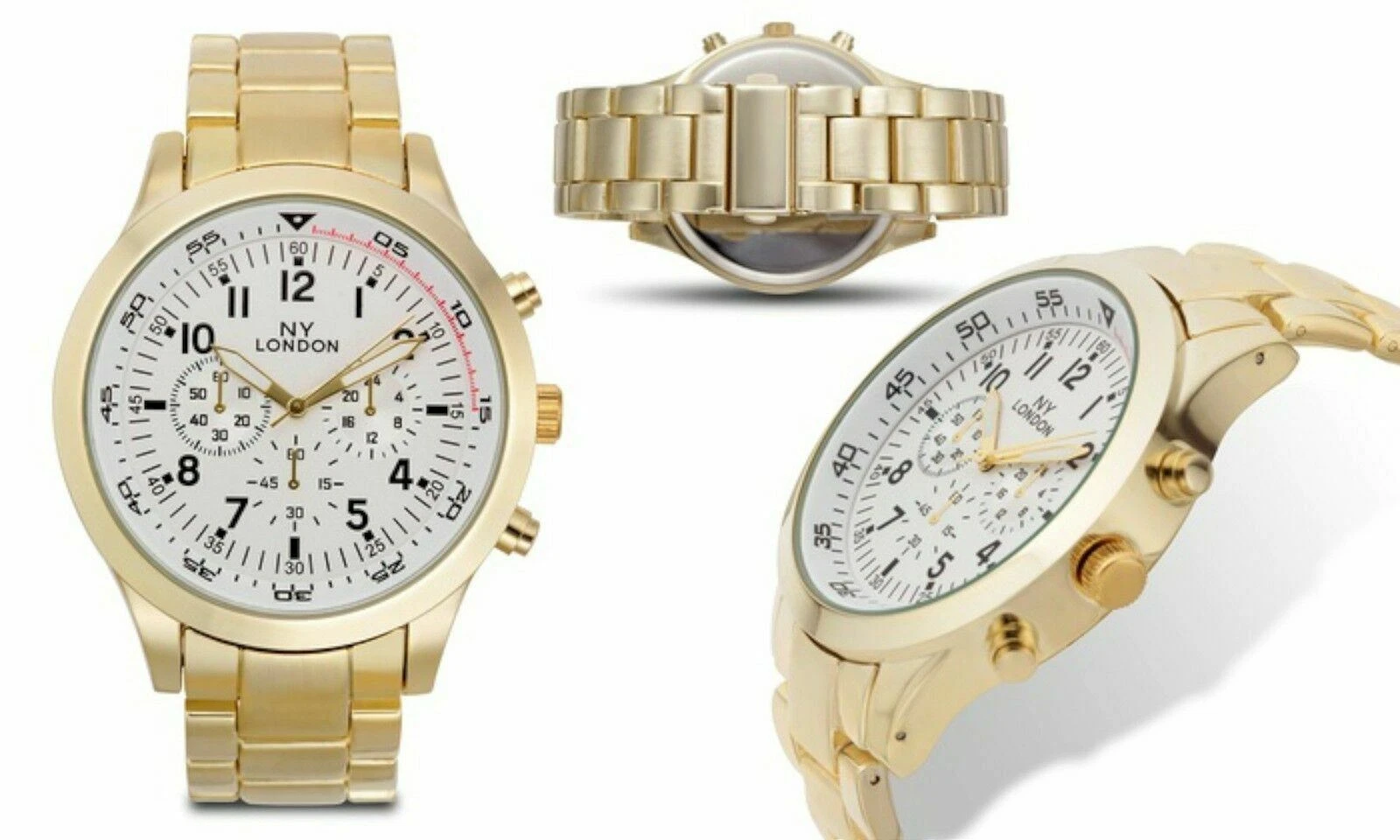 NEW NY London 9449-GDWT Mens Rembrandt Collection White Dial Gold IP Metal Watch