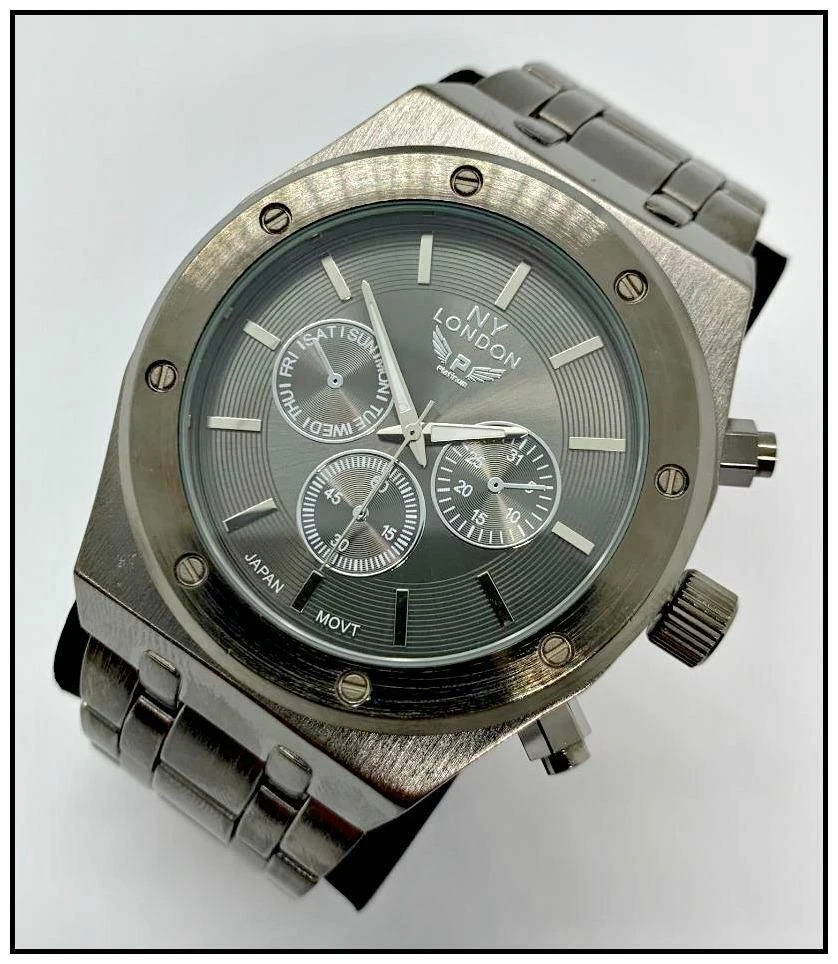 Mens CLASSY OVERSIZED ELEGANT Round Gunmetal LUXURY Designer Fashion WRIST WATCH