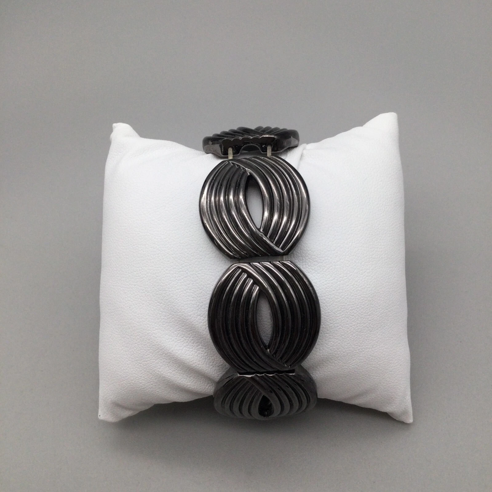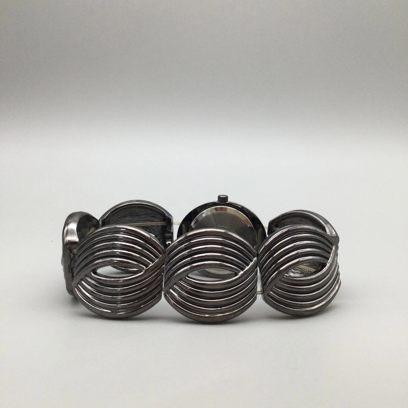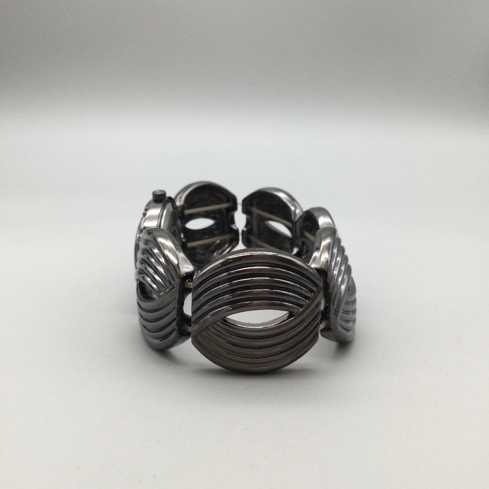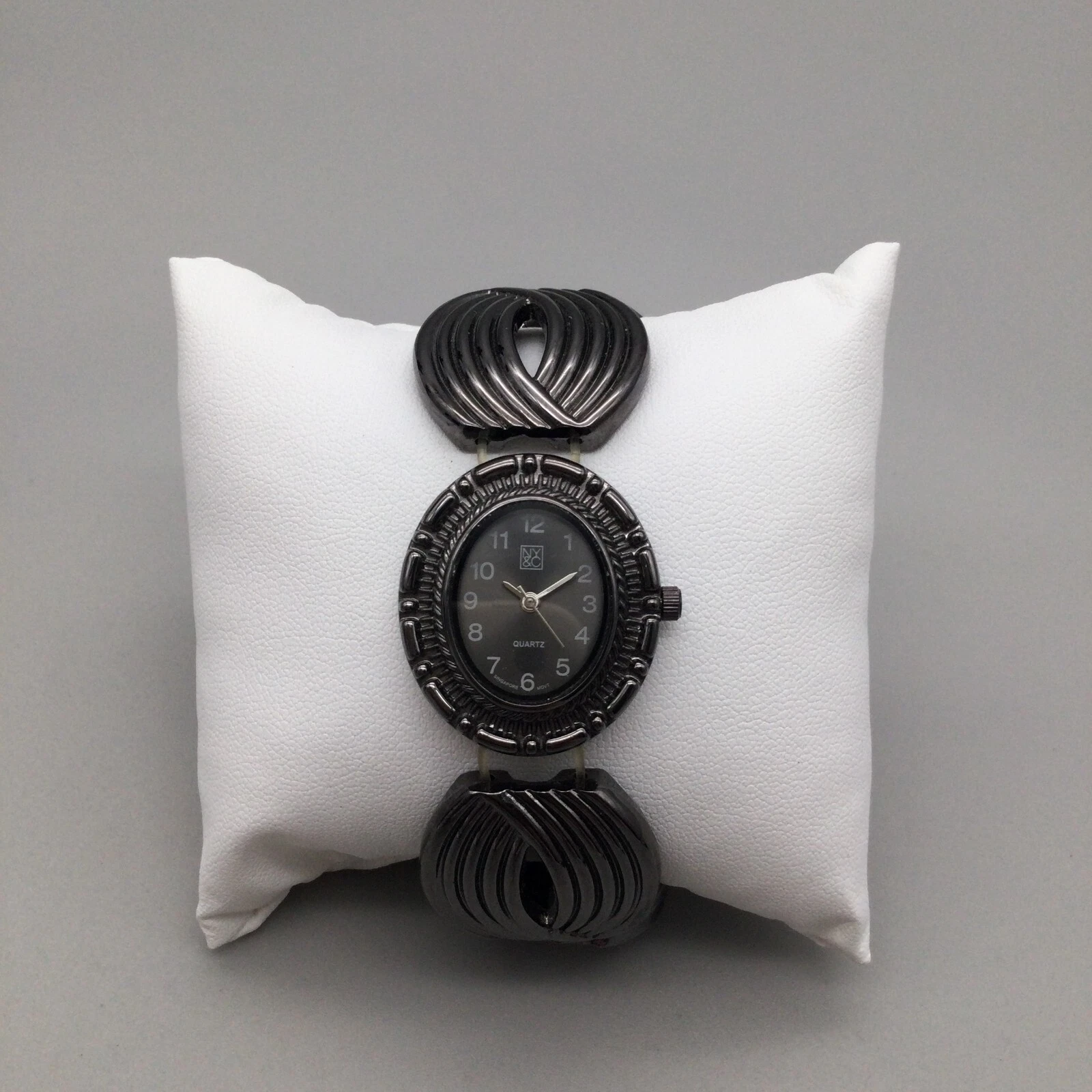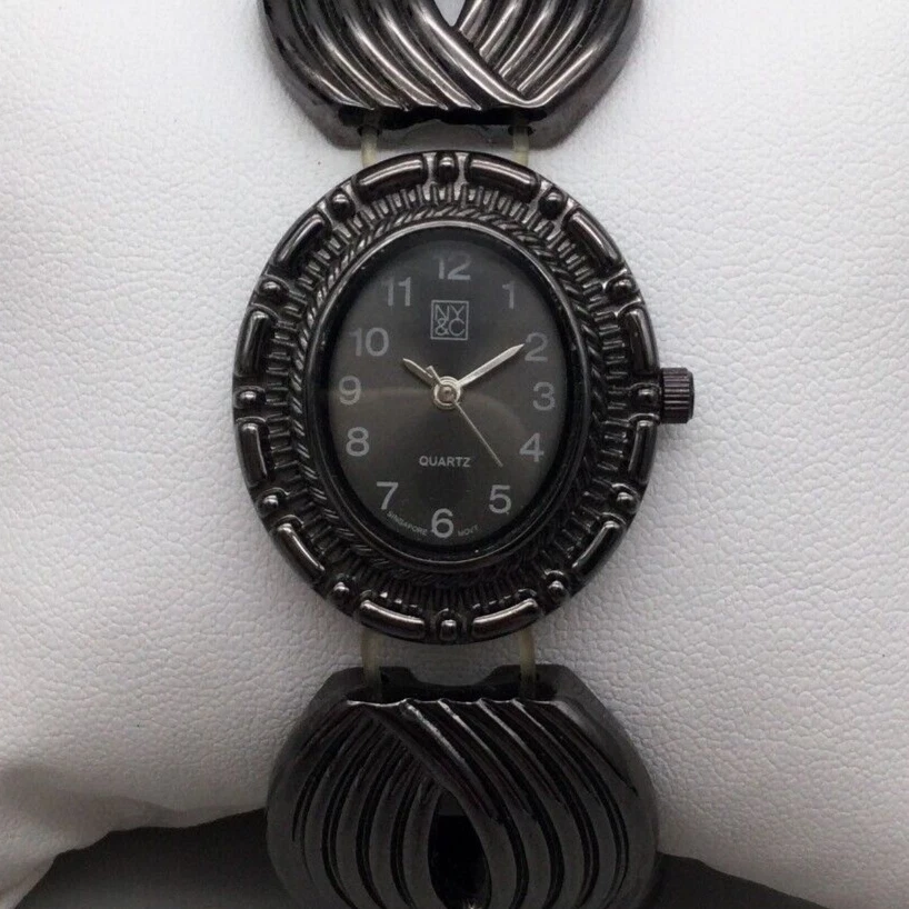NY&C Watch Women 27mm Silver Tone Black Oval Dial Stretch Band New Battery