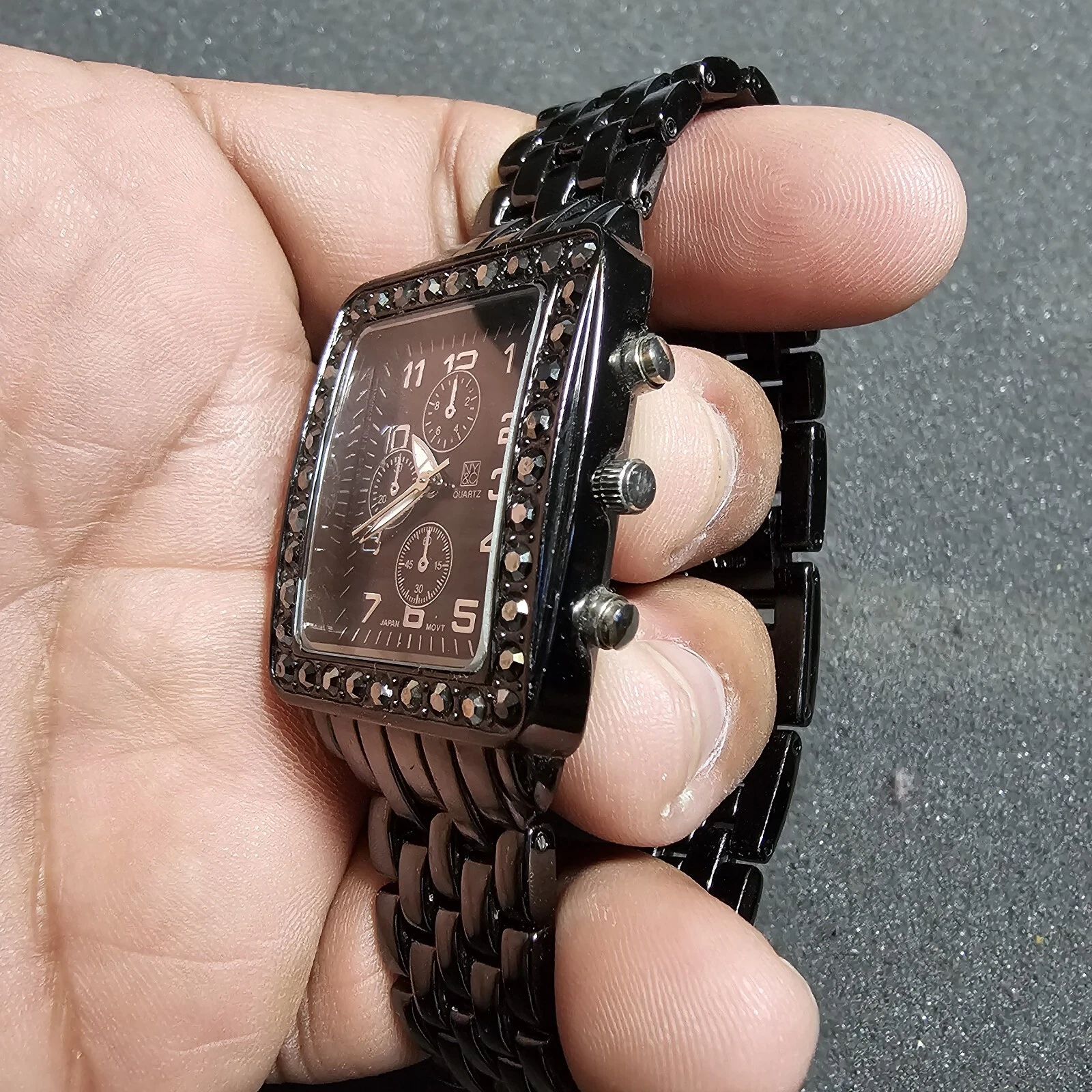 NY&C Ladies Quartz Analog Fashion Watch Black Tone Rhine Stone Bezel Working