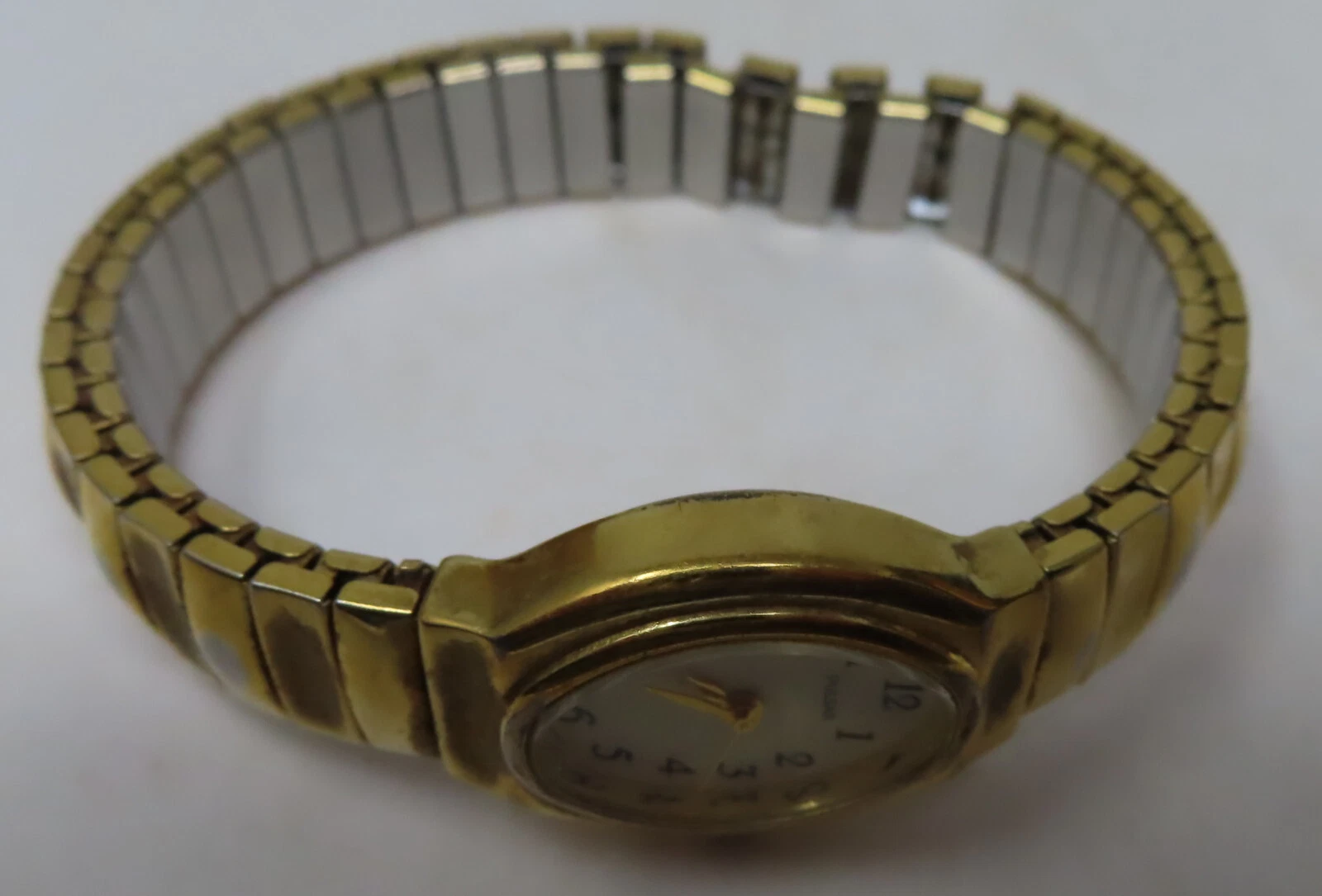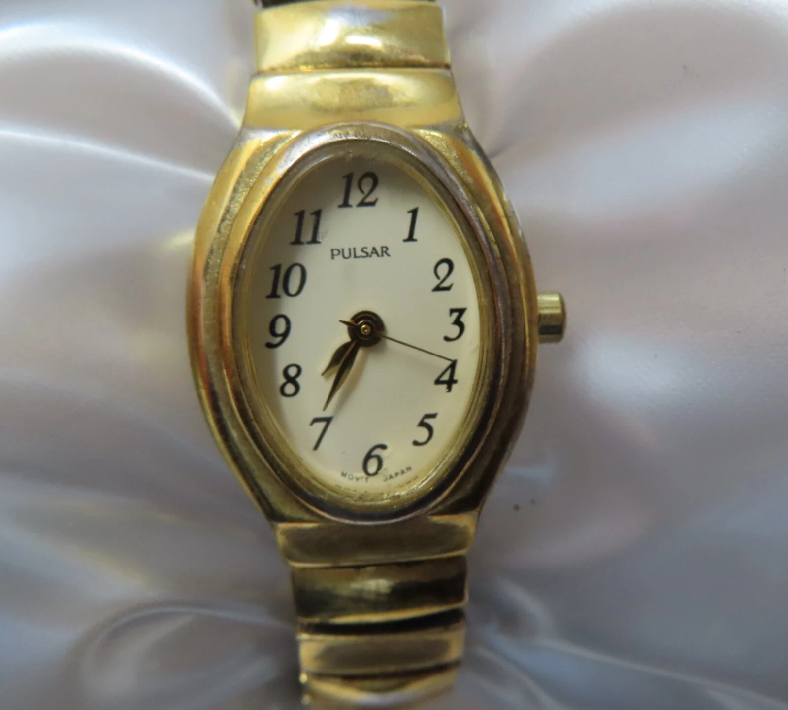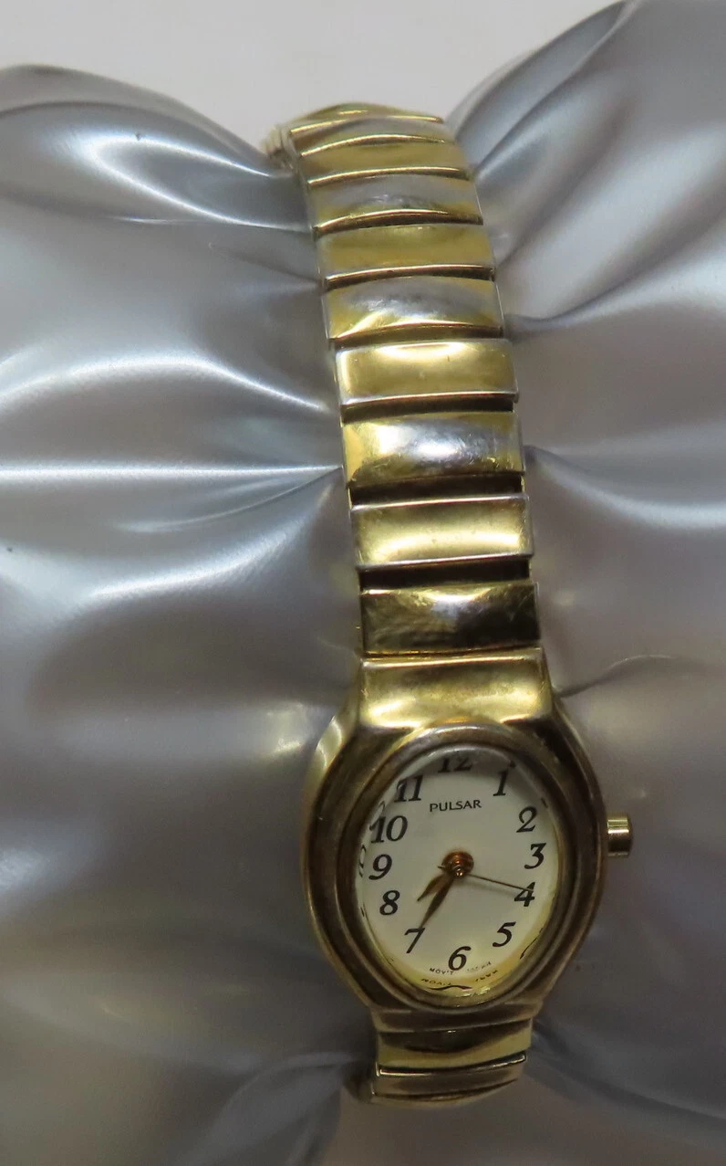 Vintage Working Women’s Pulsar Watch V501-x229 2tone Silver/gold Flex Band
