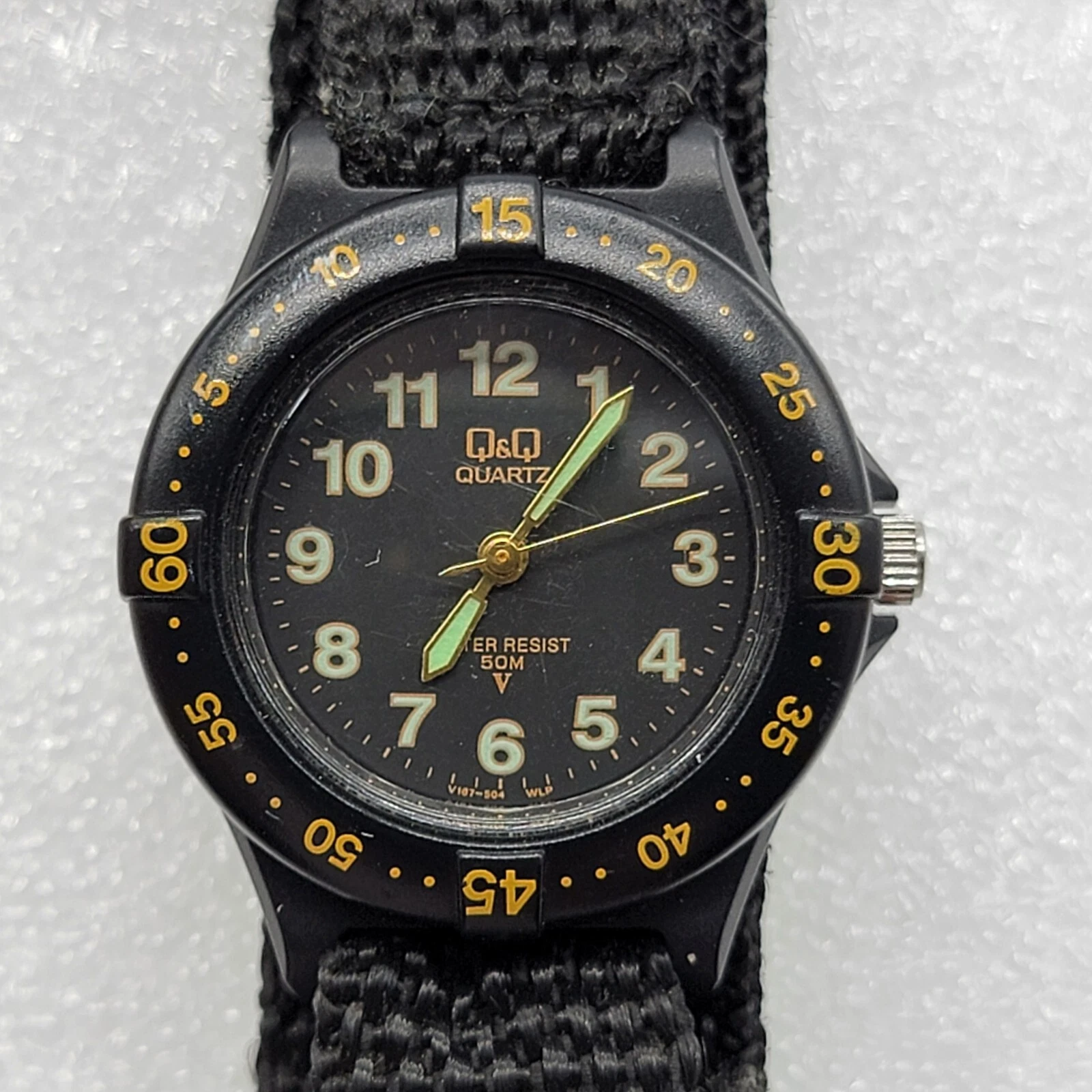 Q&Q Women Sport Watch Round Dial 29mm Black Rotating Bezel Water Resistant 5ATM