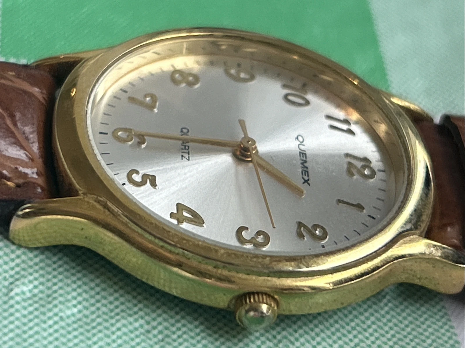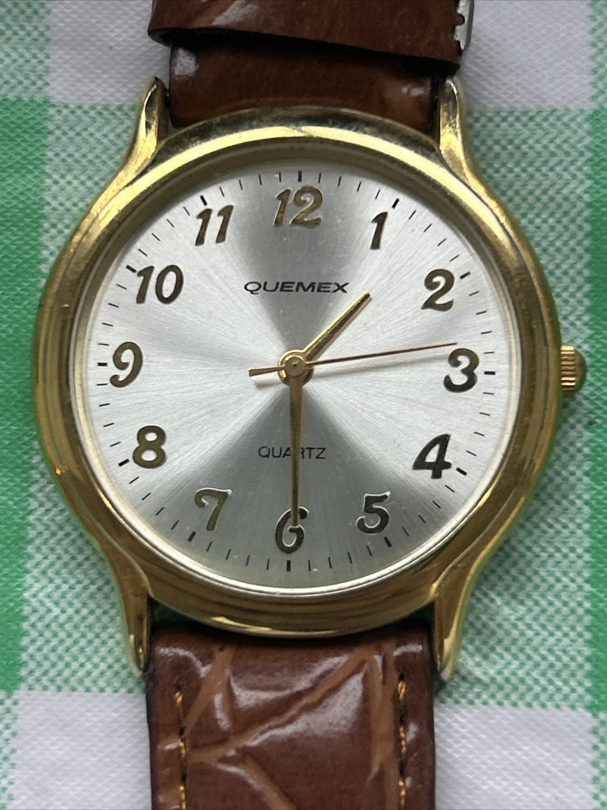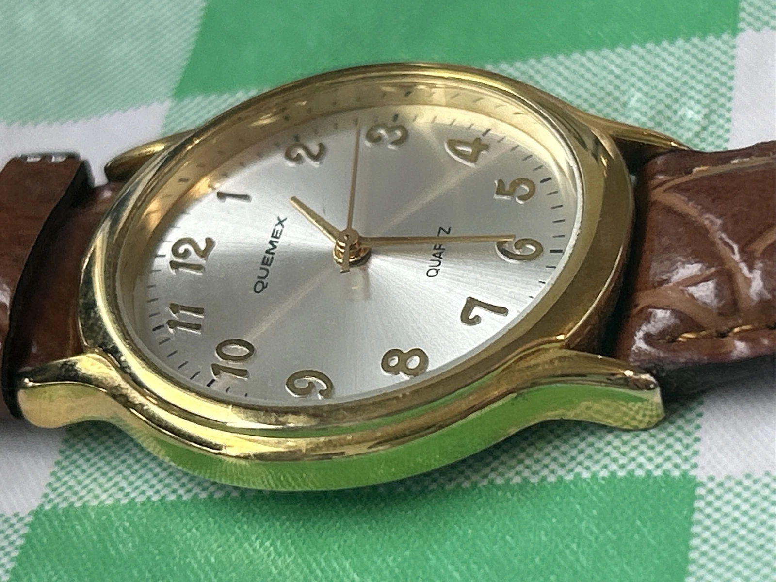 Quemex Gold Tone Brown Genuine Leather Band Women’s Quartz Watch