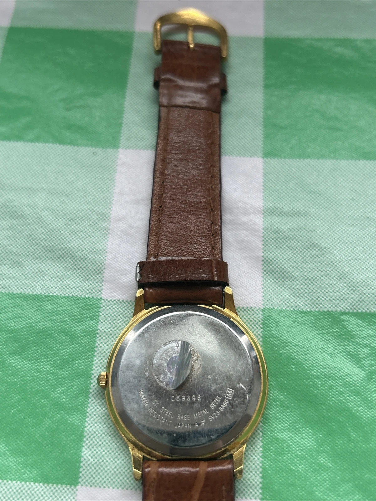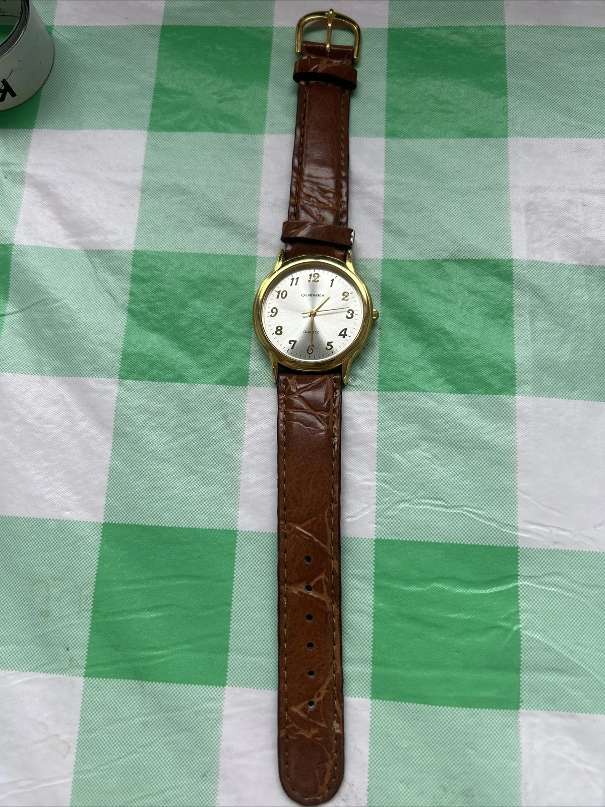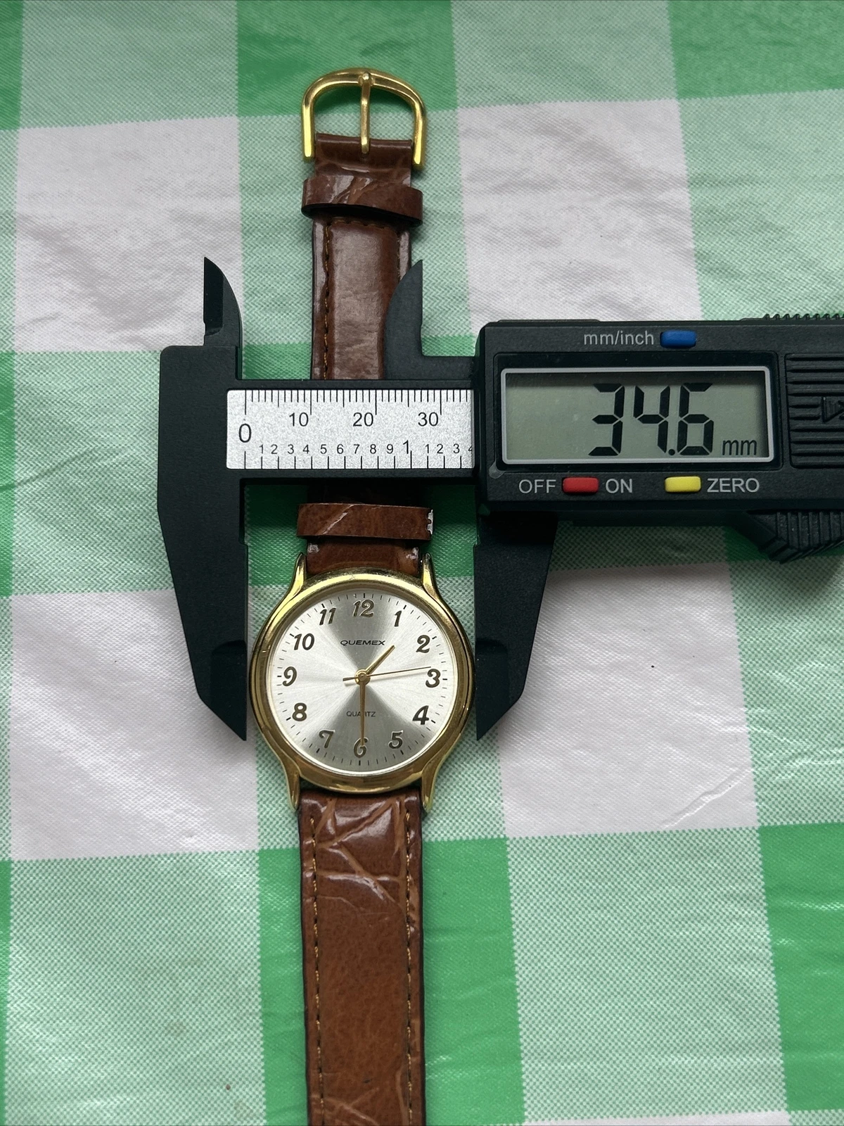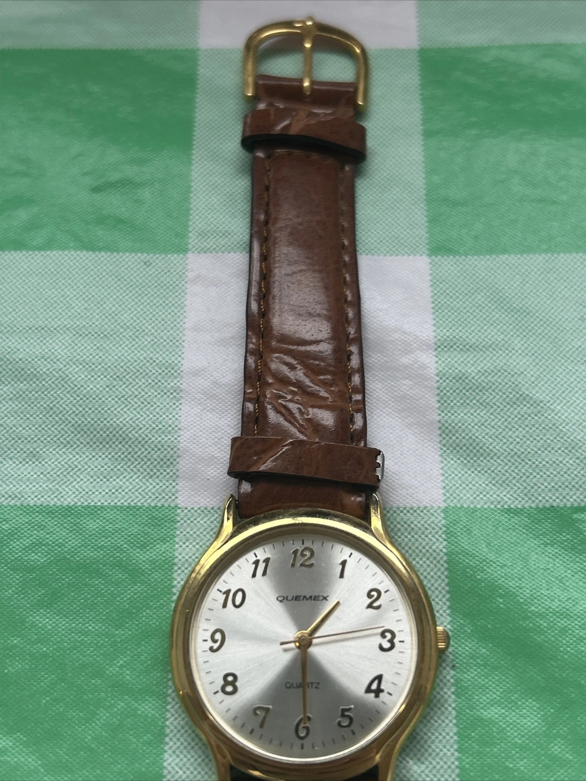 Quemex Gold Tone Brown Genuine Leather Band Women’s Quartz Watch