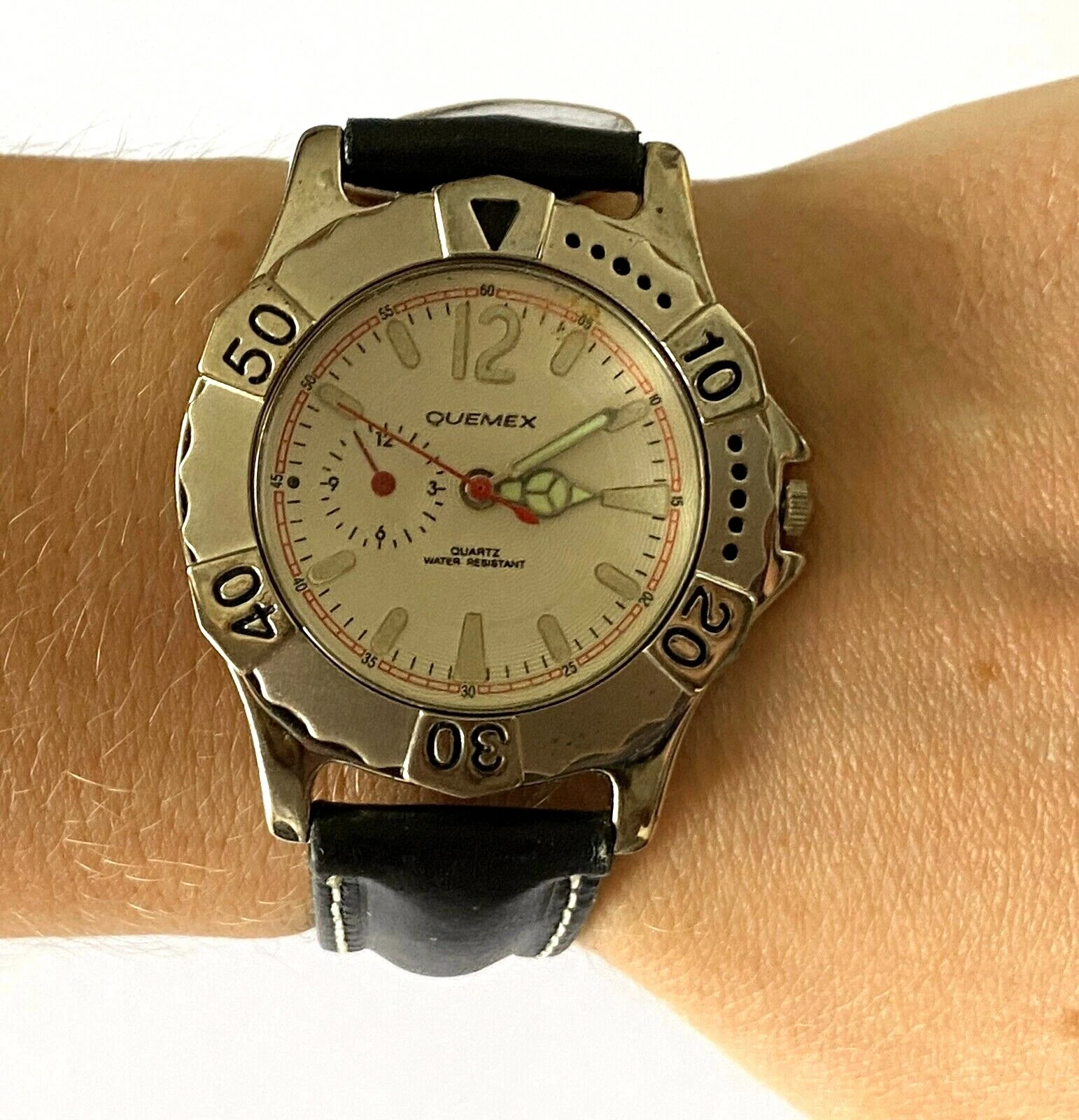 Quemex Quartz Japan Movt Silver Color Case Men's Wrist Watch Runs