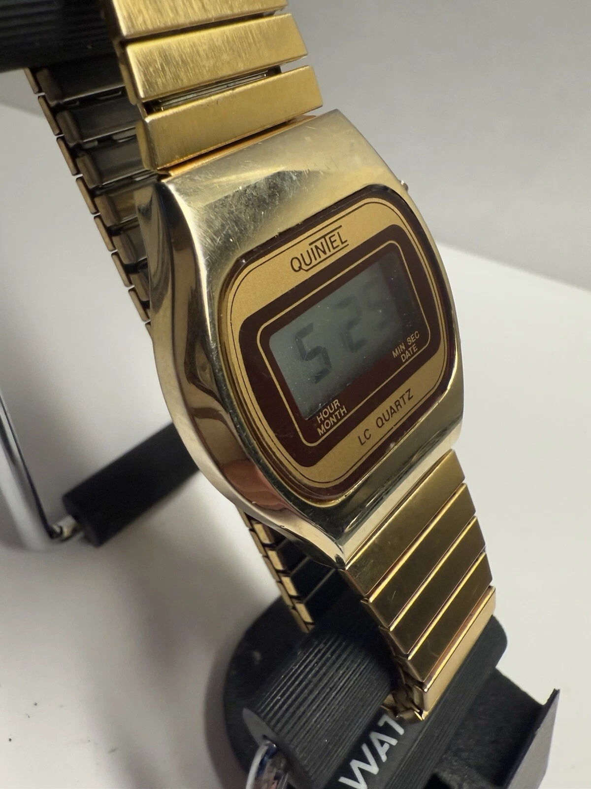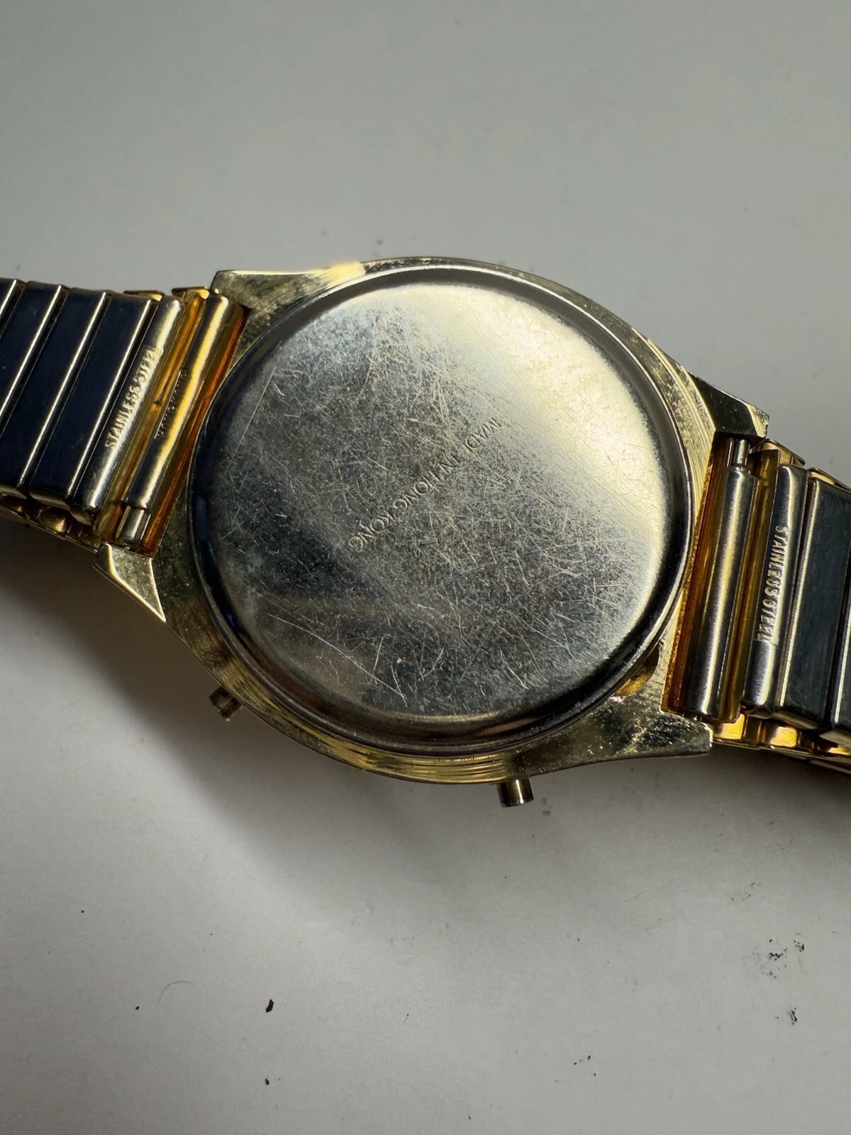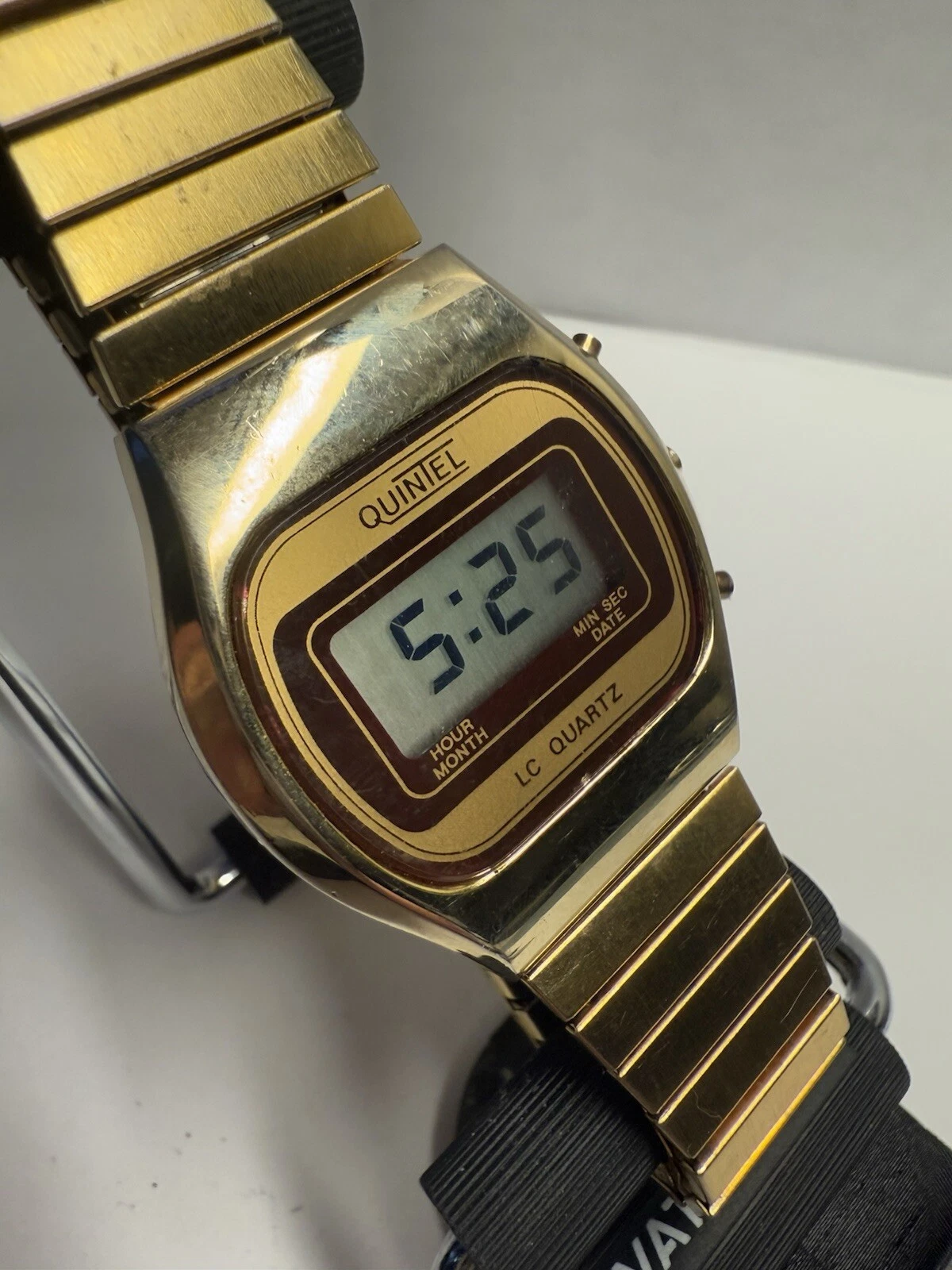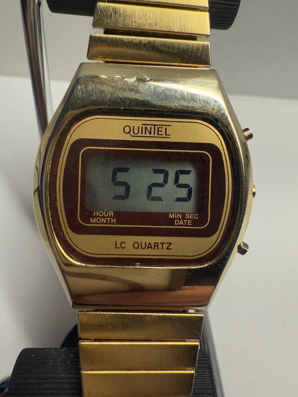 VINTAGE GOLD TONE QUINTEL LC QUARTZ WATCH CLEAN AND WORKING 34MM