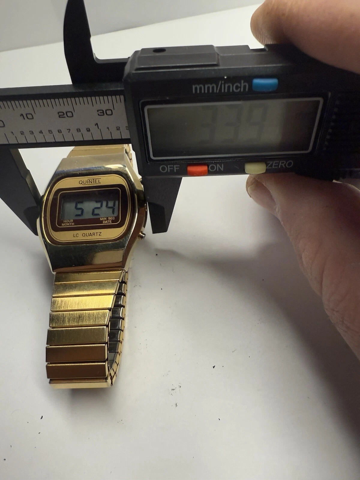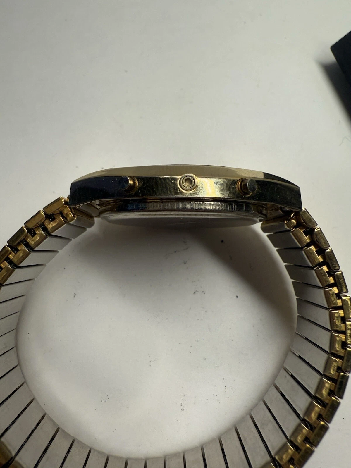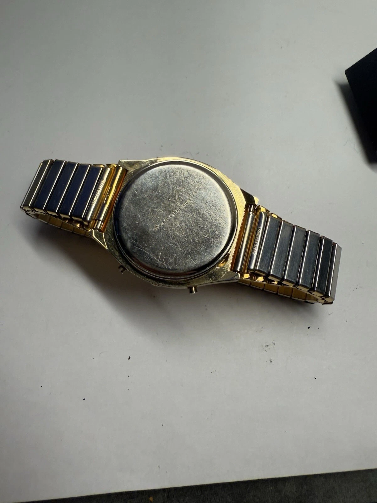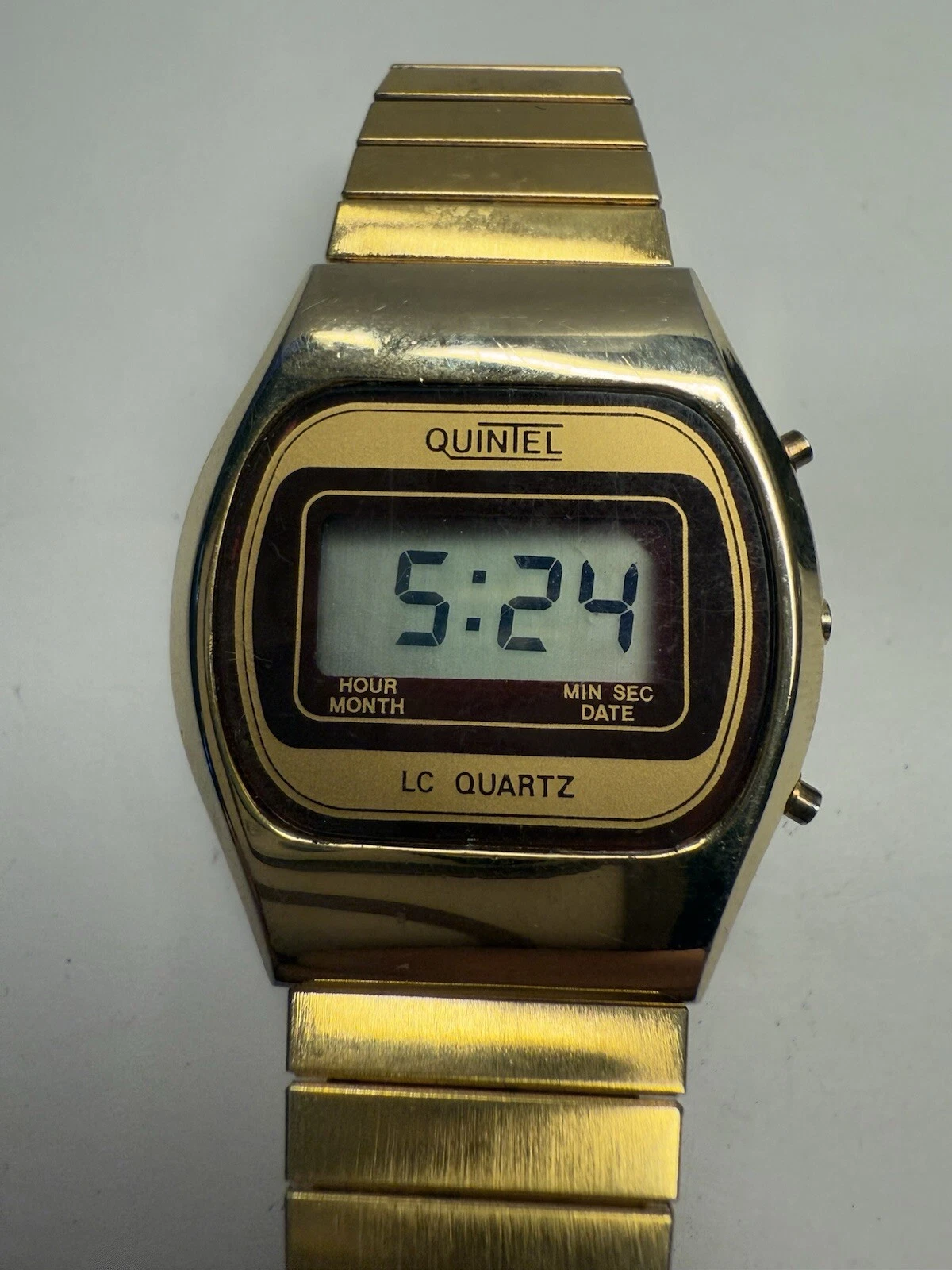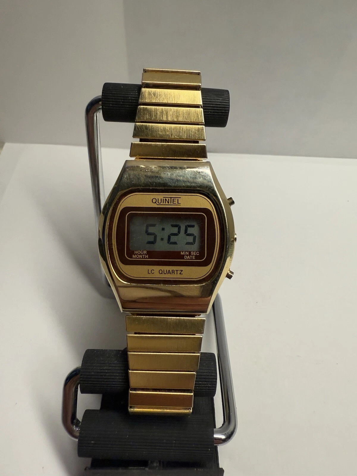 VINTAGE GOLD TONE QUINTEL LC QUARTZ WATCH CLEAN AND WORKING 34MM