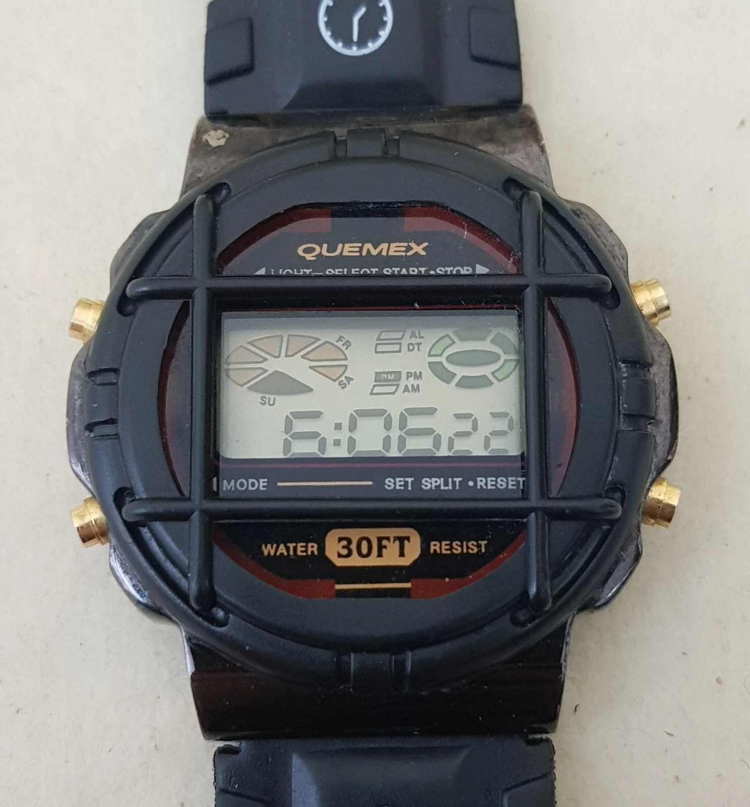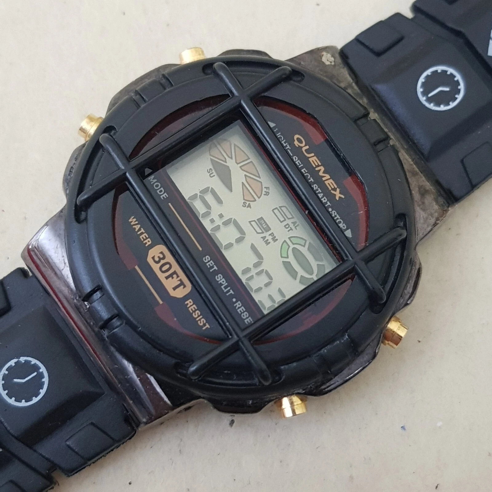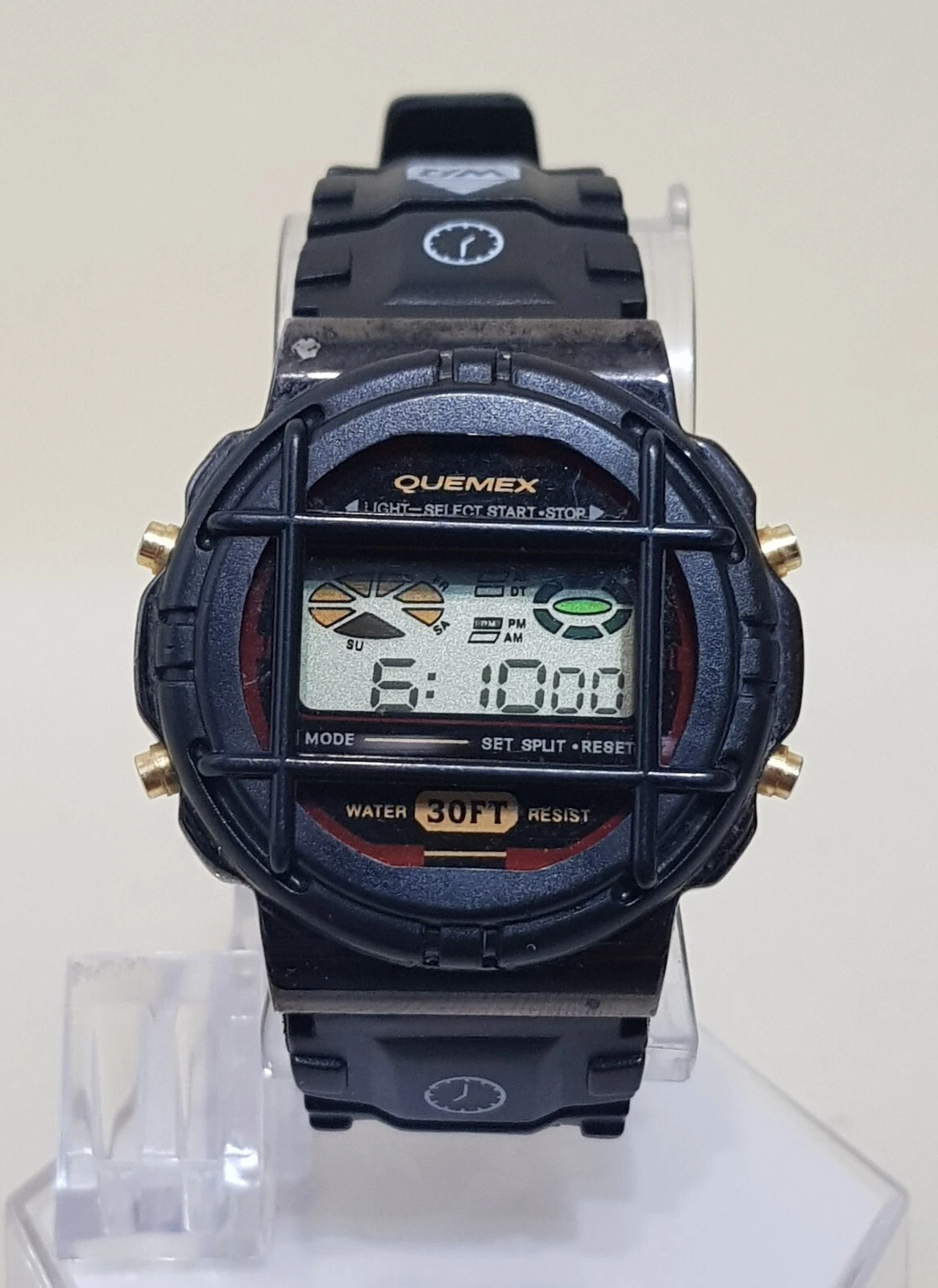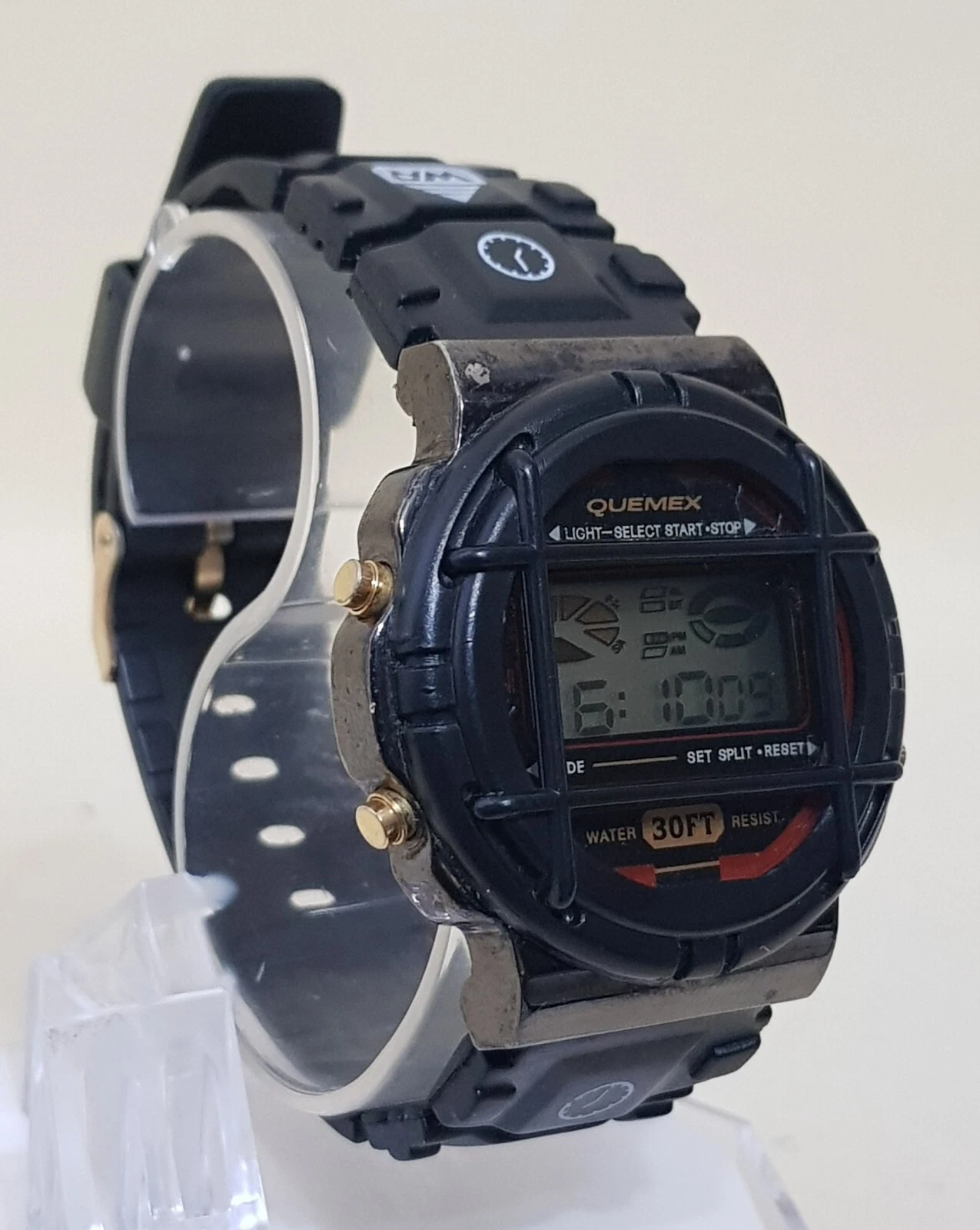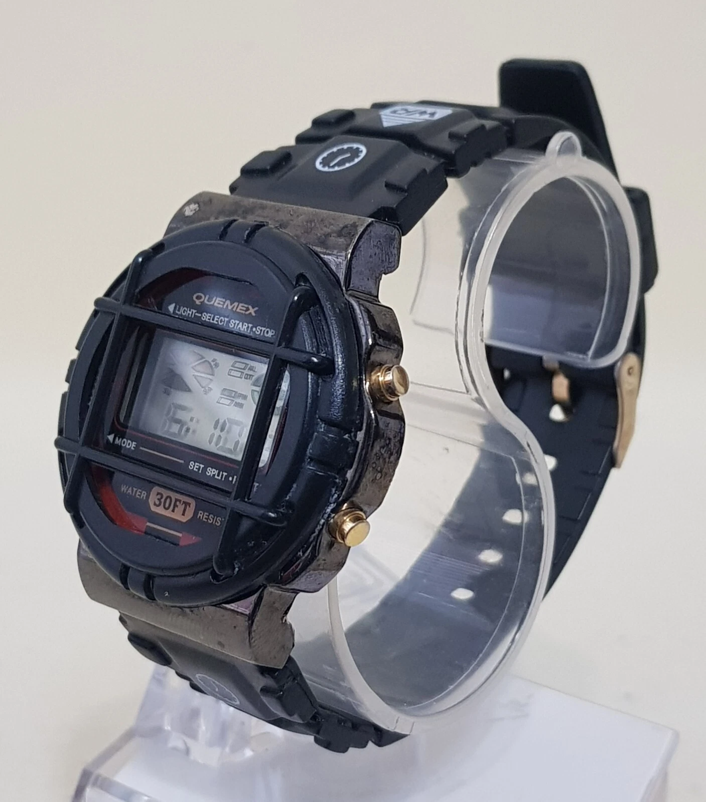 Vintage Quemex Digital Watch Cool Retro Black Rubber Band...NEW BATTERY