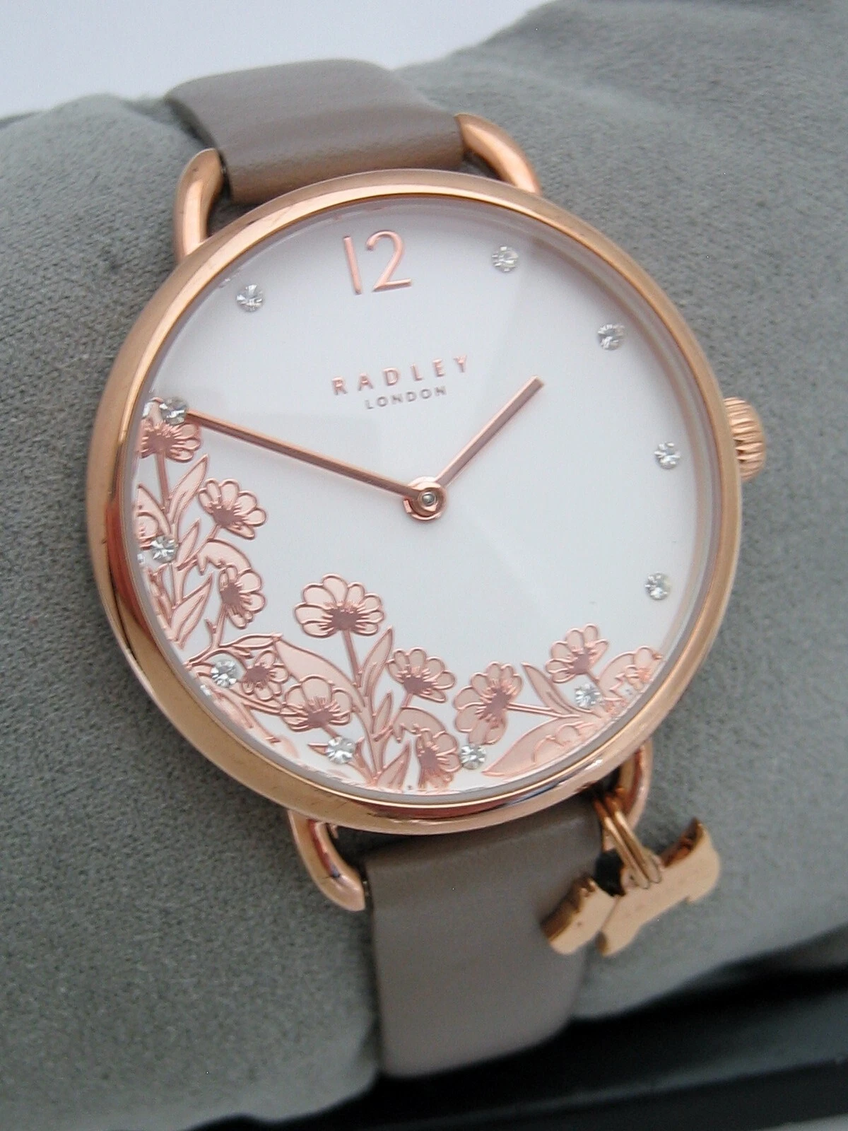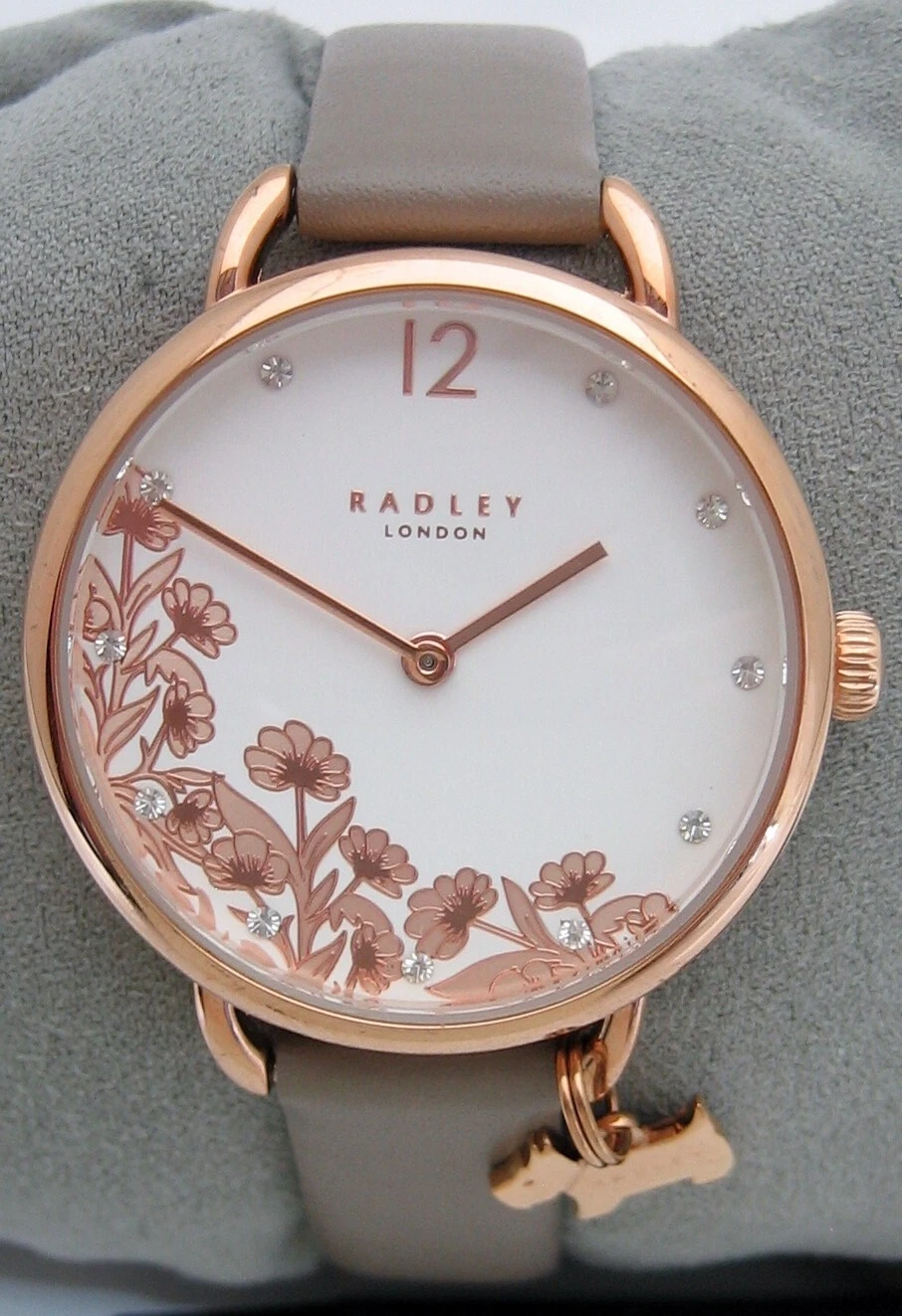 RADLEY LADIES FLORAL WATCH RY21274 GOLD STAINLESS STEEL LEATHER CRYSTALS GENUINE