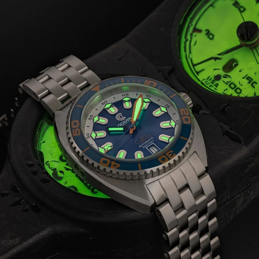 Ocean Crawler Core Diver V4 - Blue/Orange 44mm Men Diver Watch WR600m Limited ED