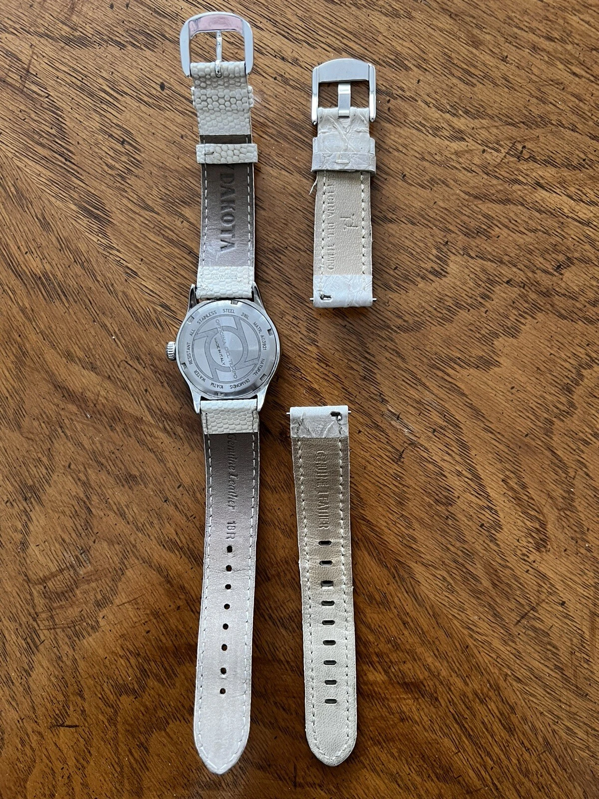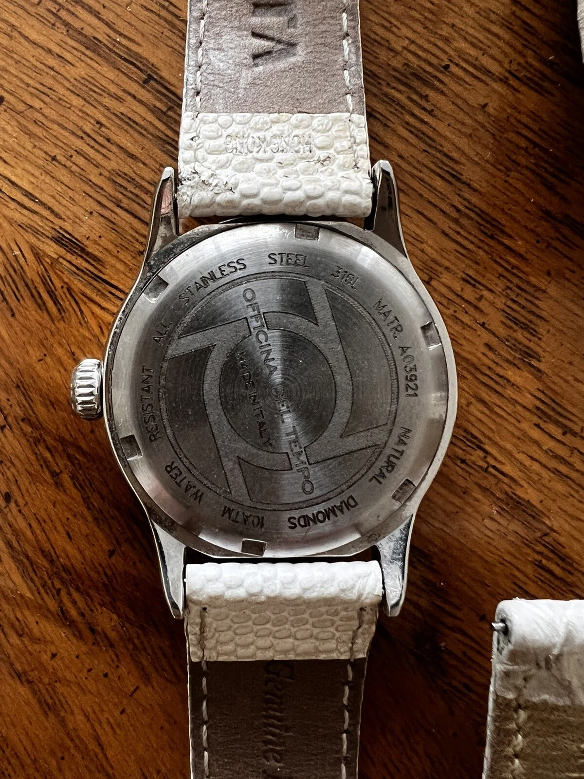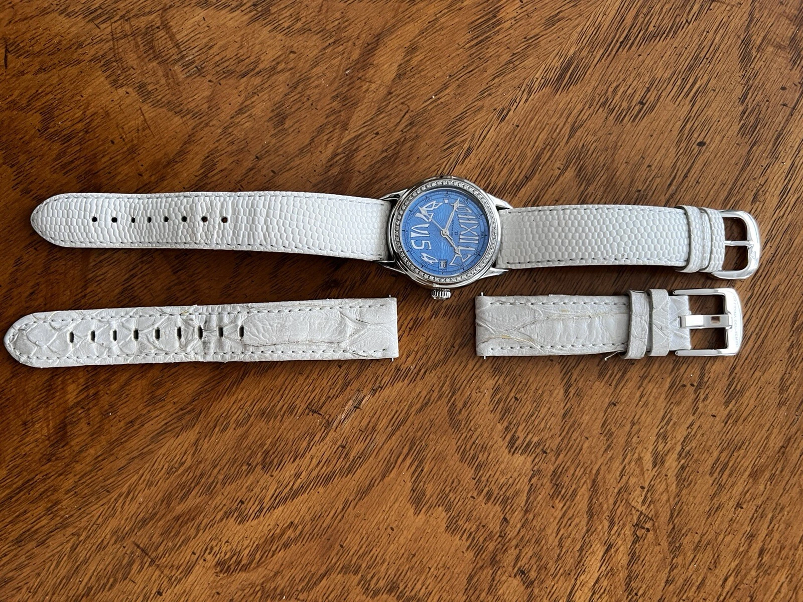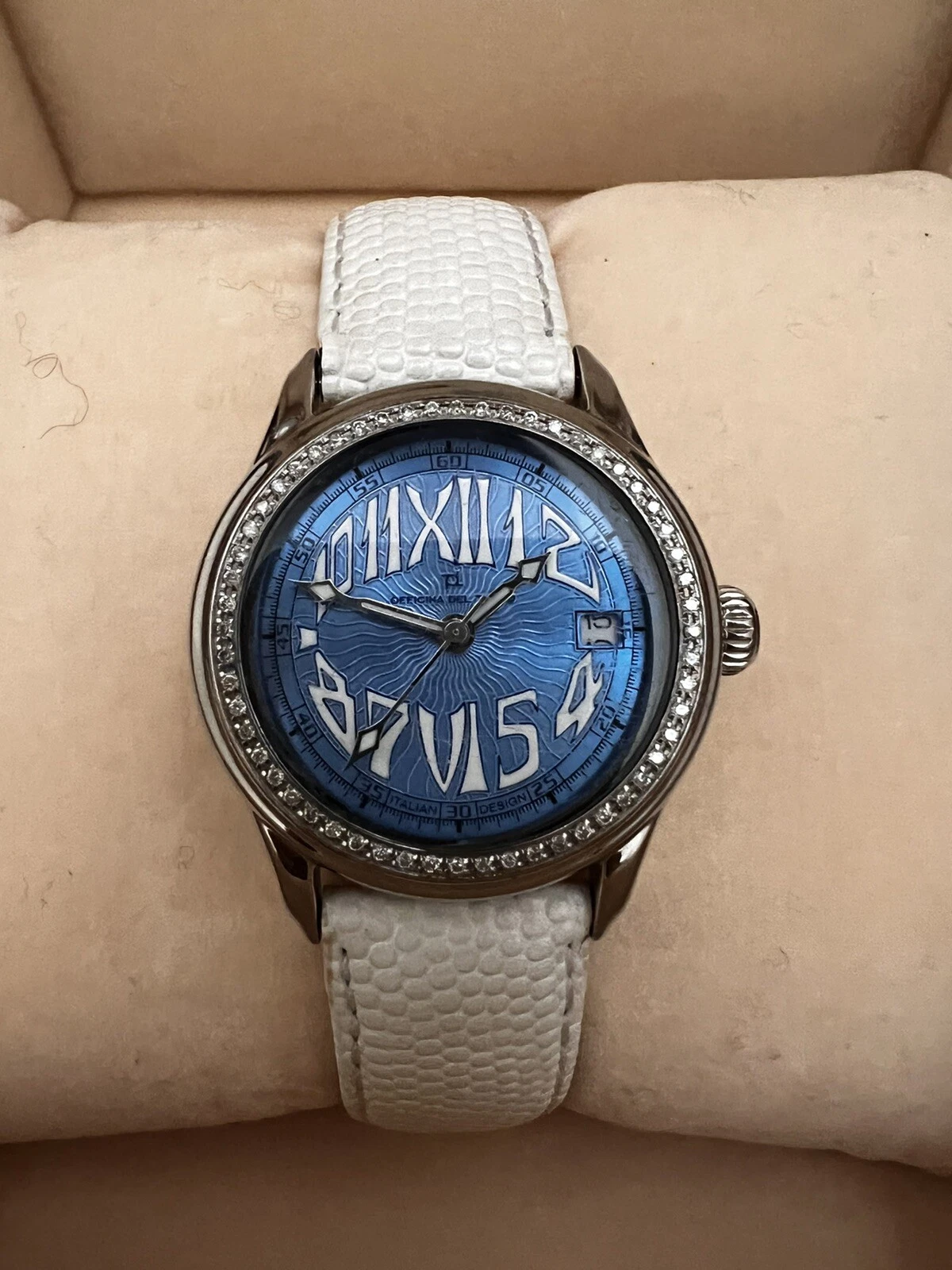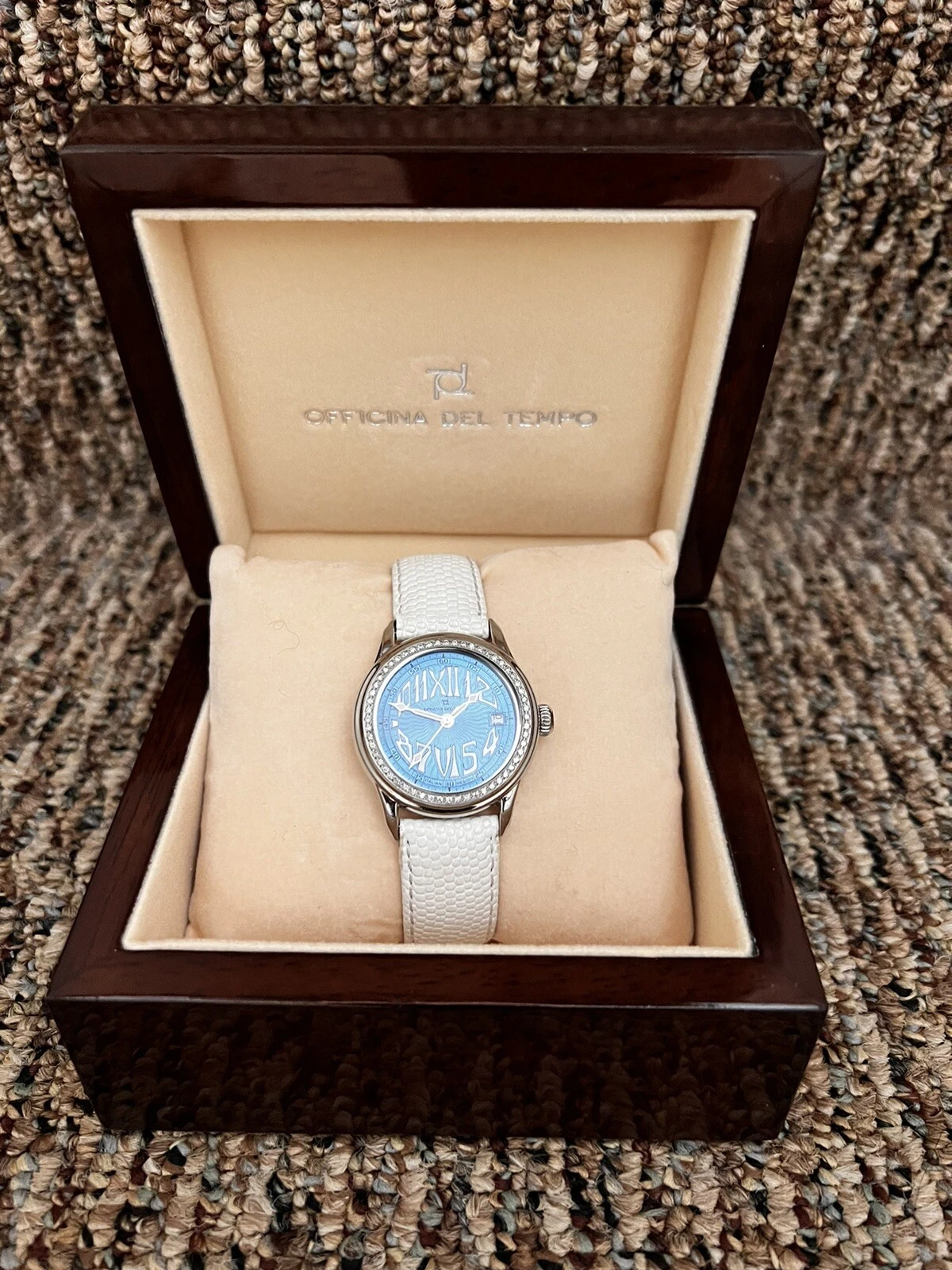 OFFICINA DEL TEMPO WOMEN'S DIAMONDS, BLUE DIAL, WHITE LEATHER WATCH SAFI