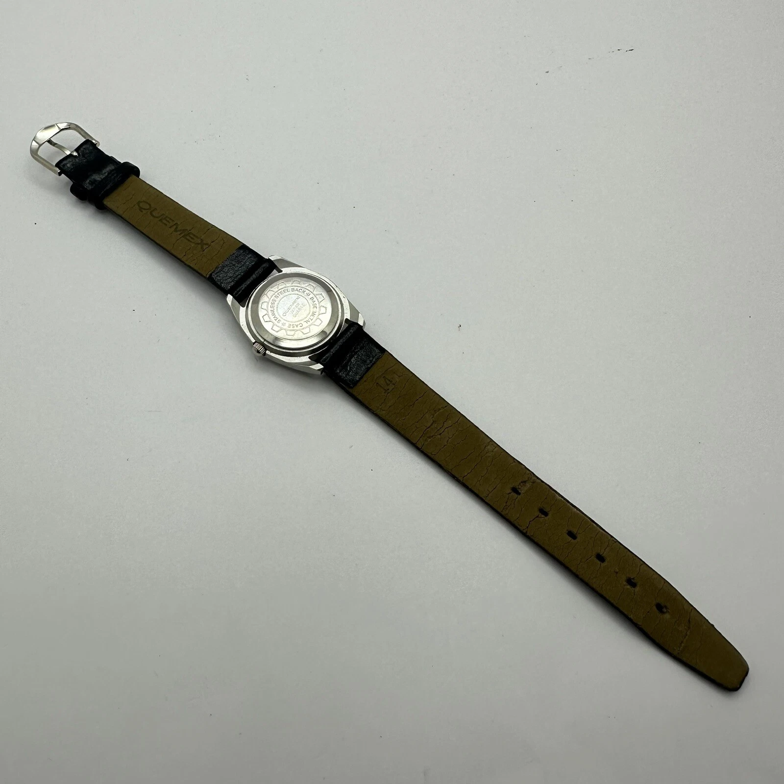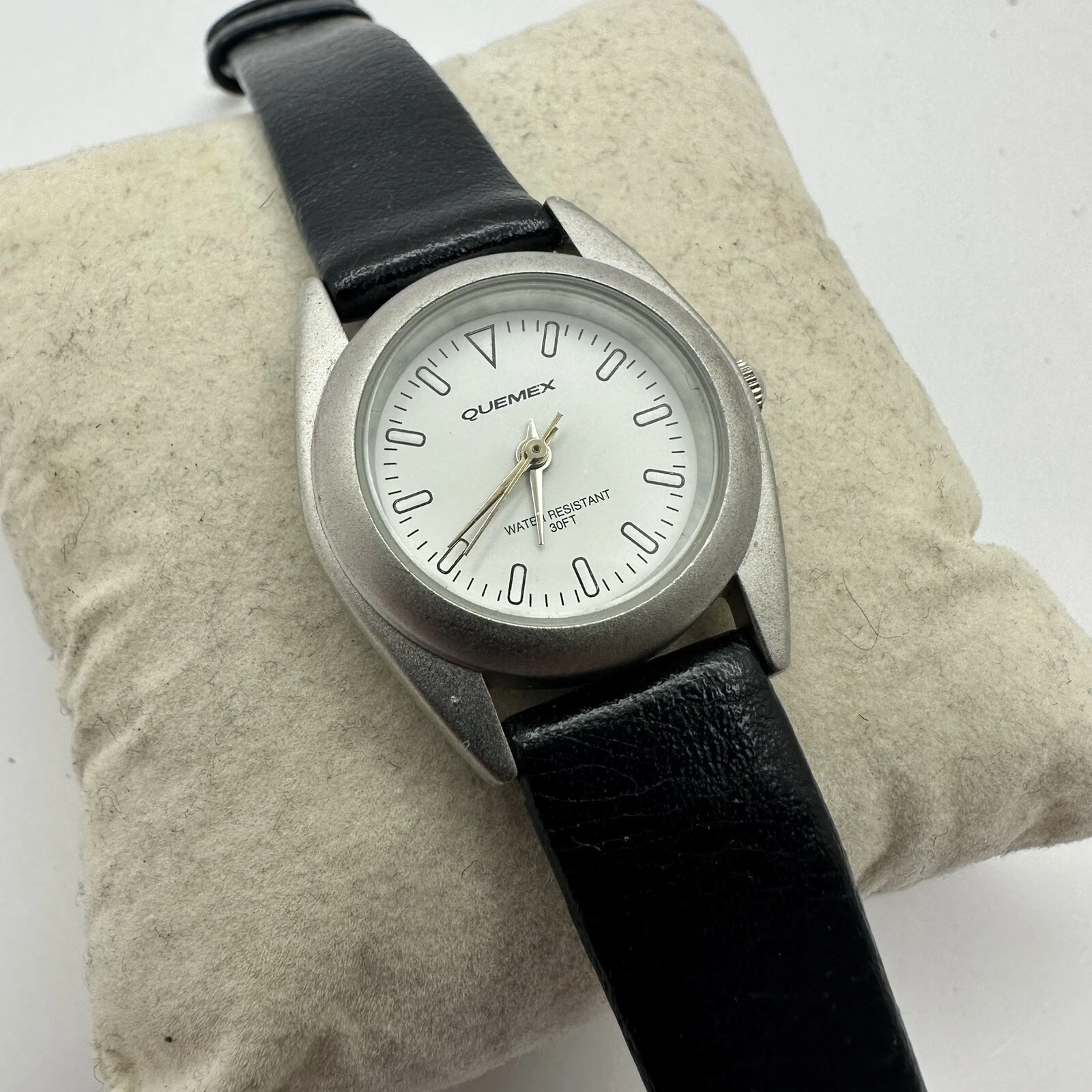 Quemex Ladies Quartz Watch Silver Tone Black Buckle Band New Battery