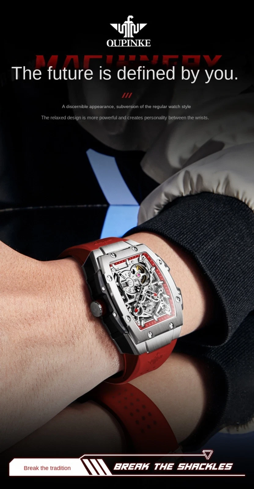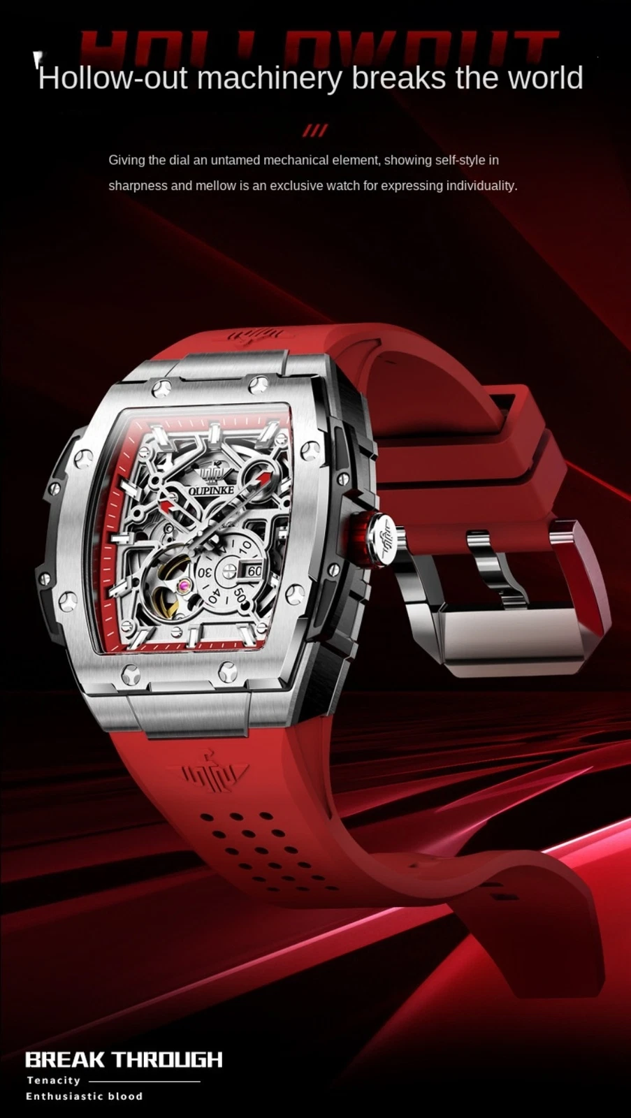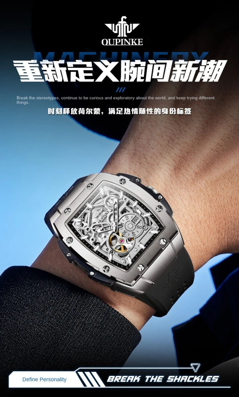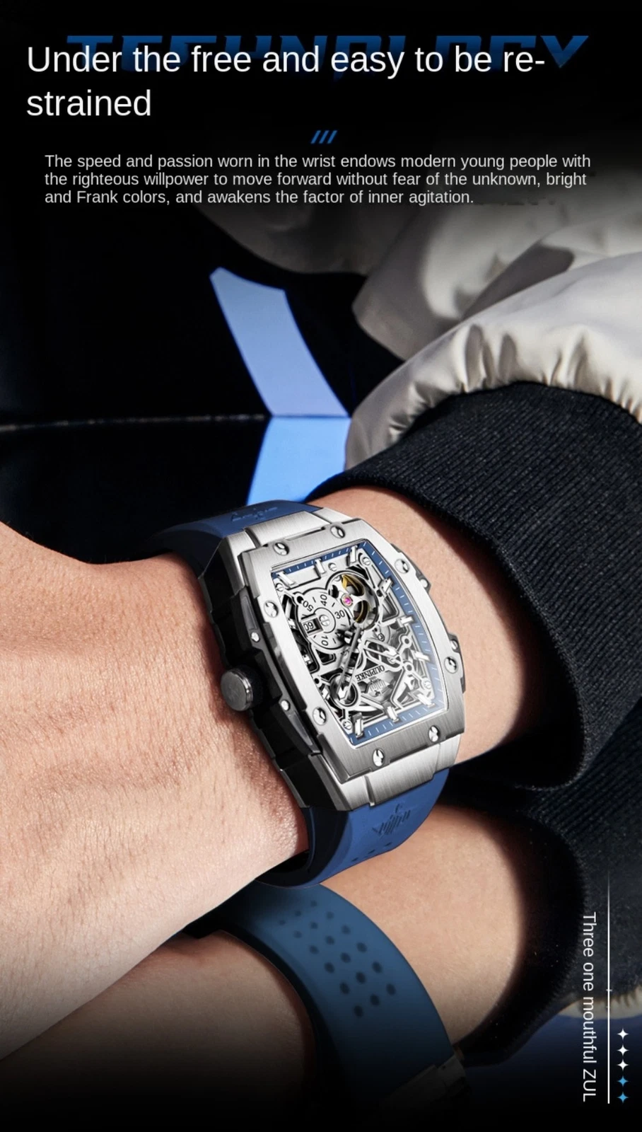 Men's High-End Brand See-through Tonneau Mechanical Watch Big Watch