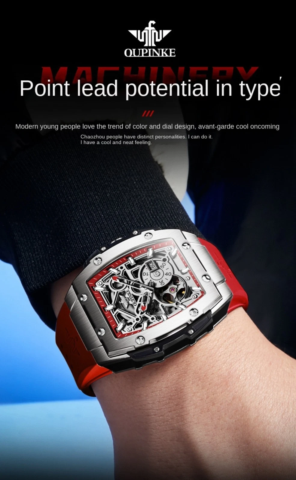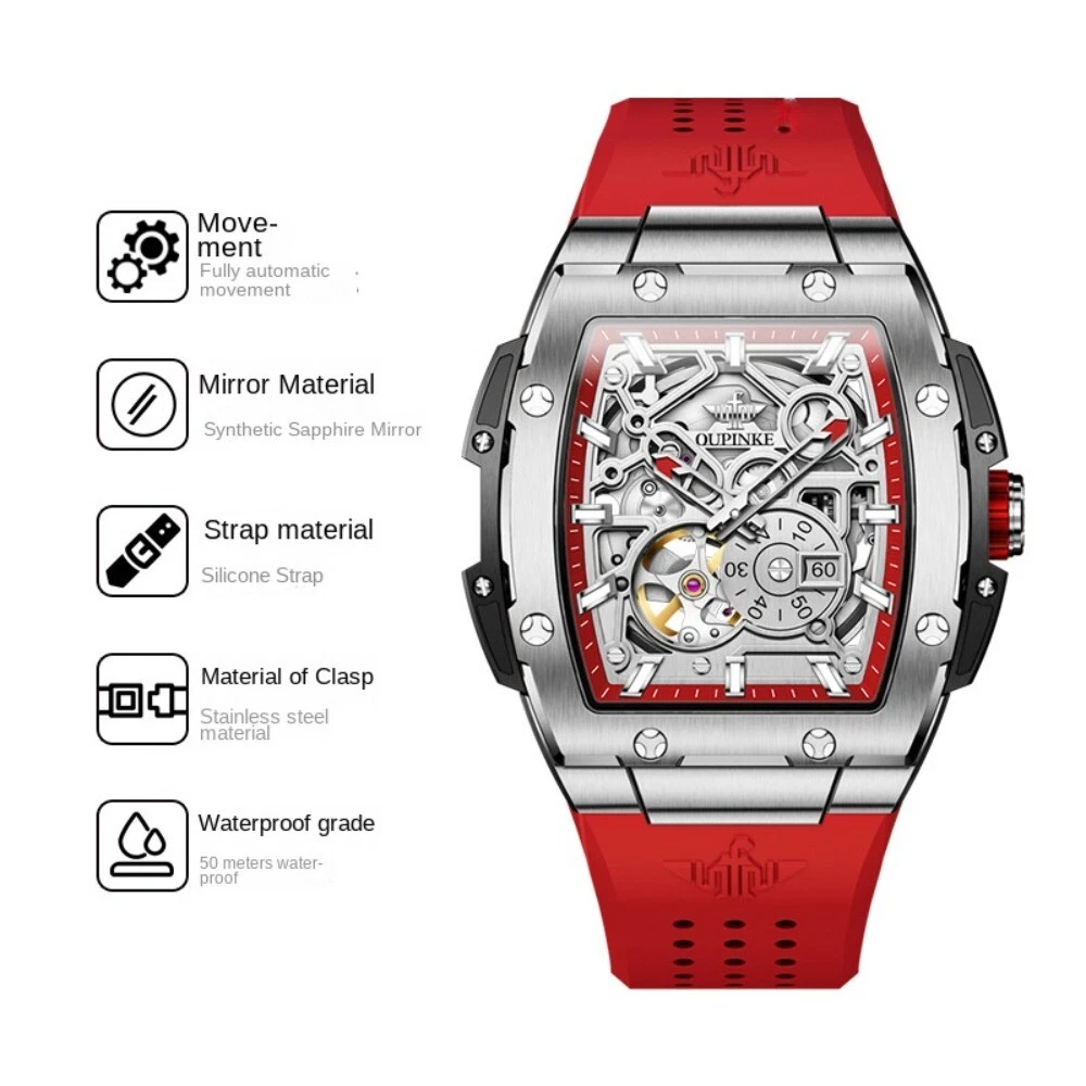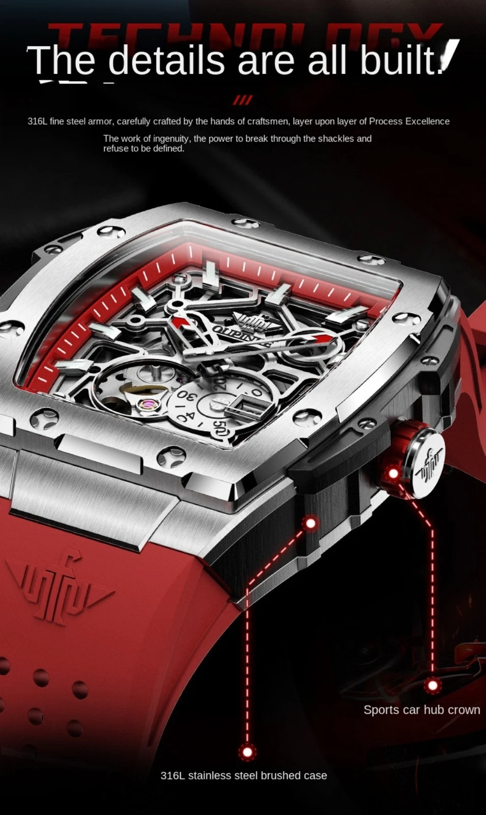 Men's High-End Brand See-through Tonneau Mechanical Watch Big Watch