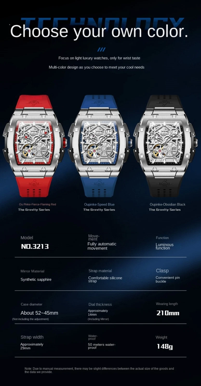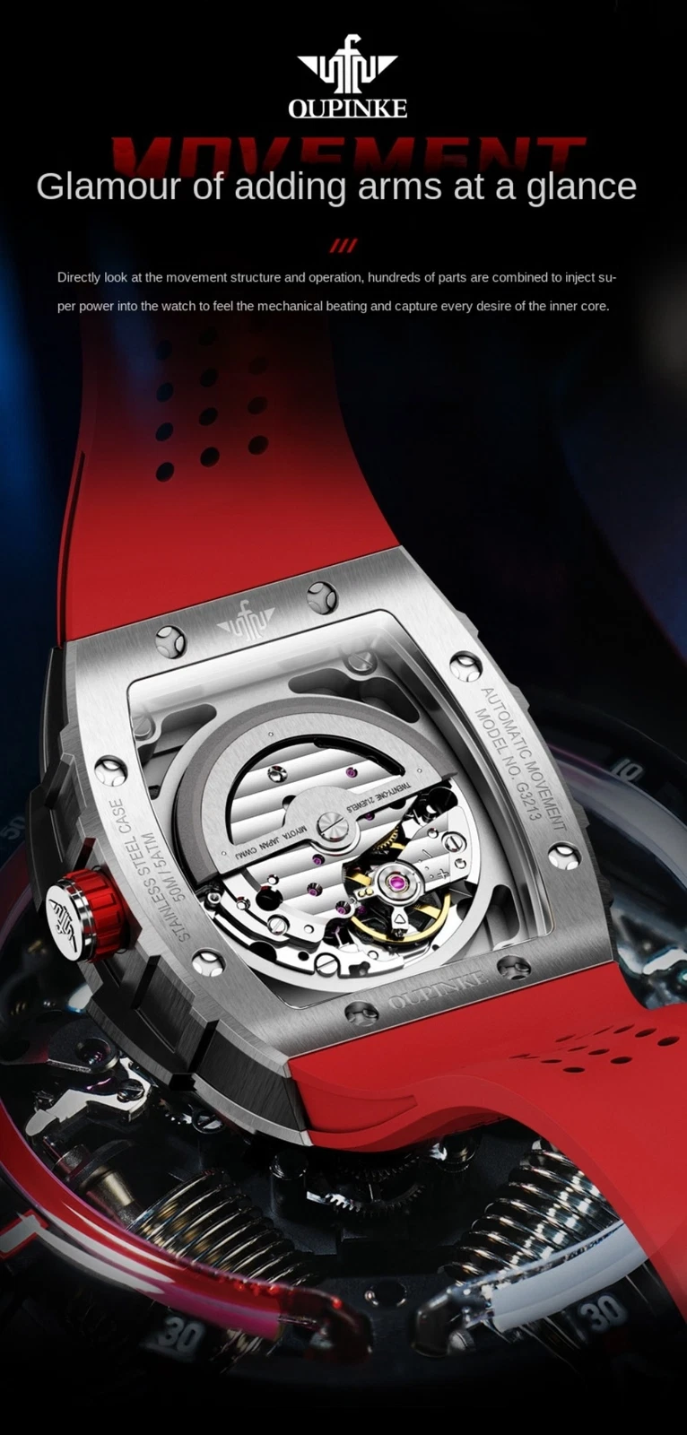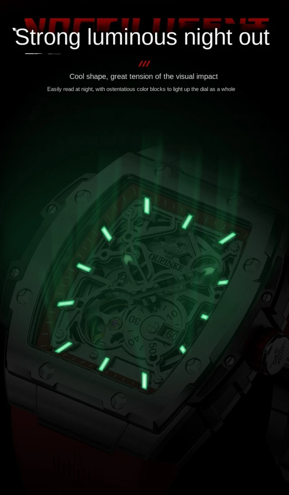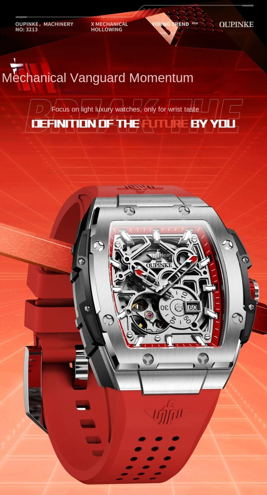 Men's High-End Brand See-through Tonneau Mechanical Watch Big Watch