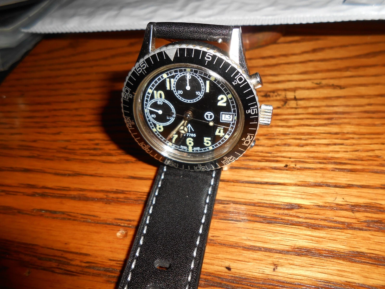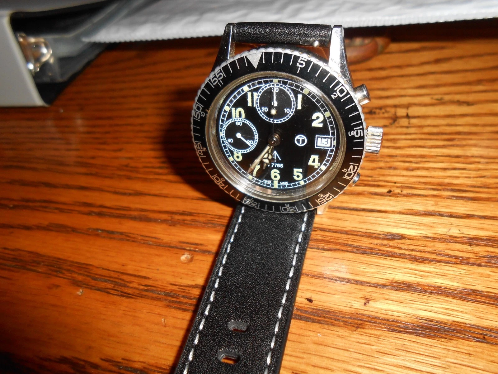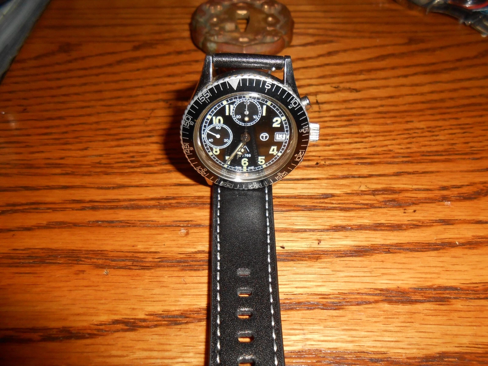 Nice 1980's OLLECH & WAJS MILITARY STYLE CHRONOGRAPH, VALJOUX 7765 BLACK DIAL