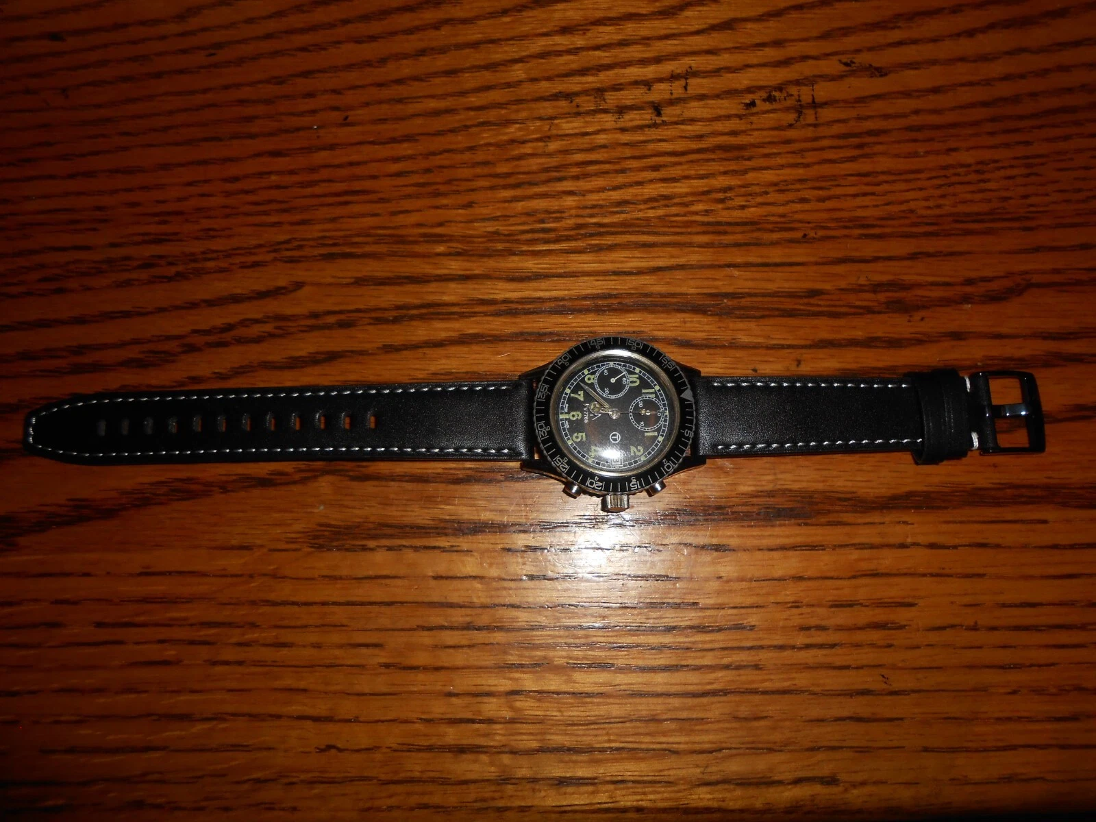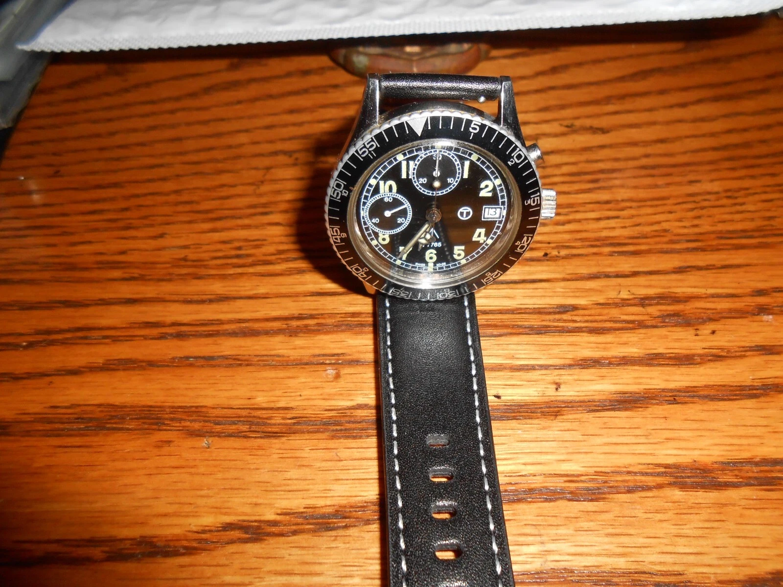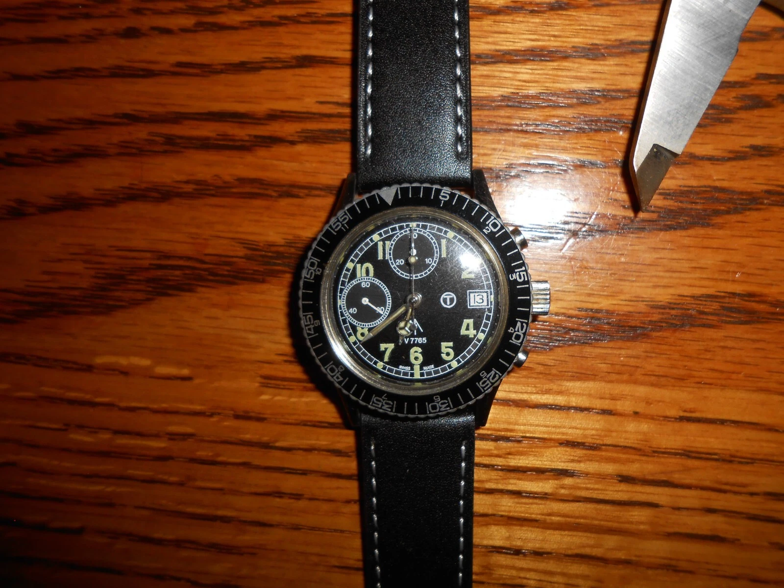 Nice 1980's OLLECH & WAJS MILITARY STYLE CHRONOGRAPH, VALJOUX 7765 BLACK DIAL