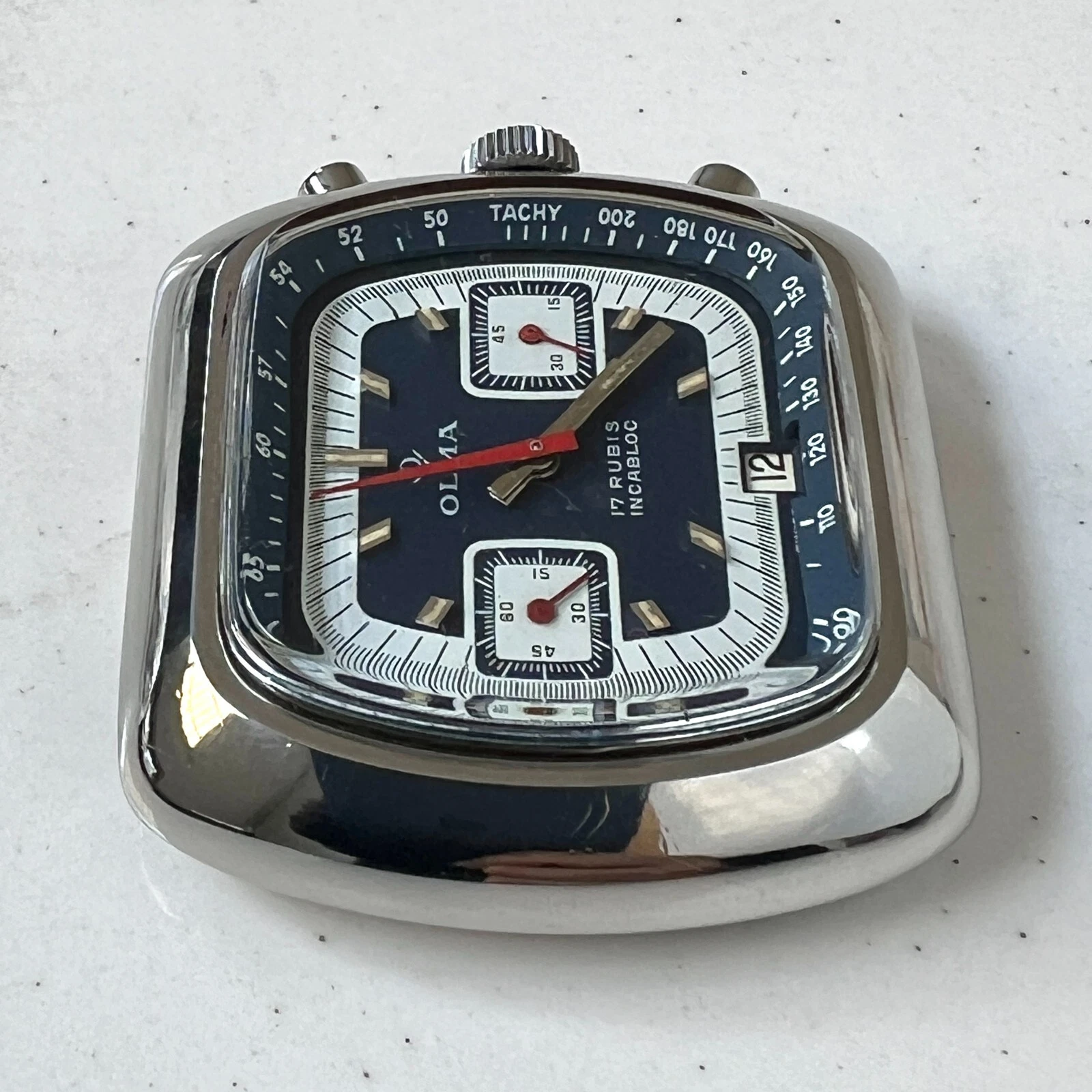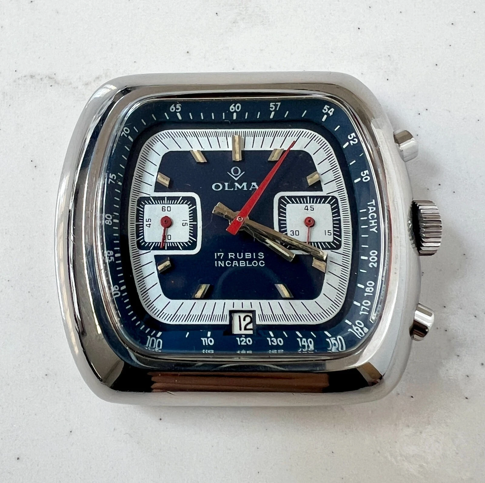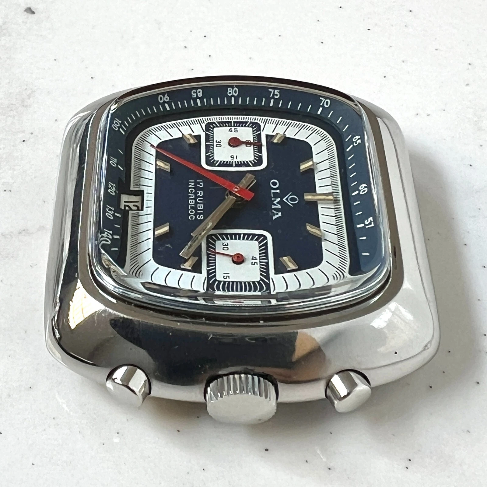 Olma Incabloc Cal 7734 Watch Vintage Mens Monaco 17 Rubis Blue Dial RARE