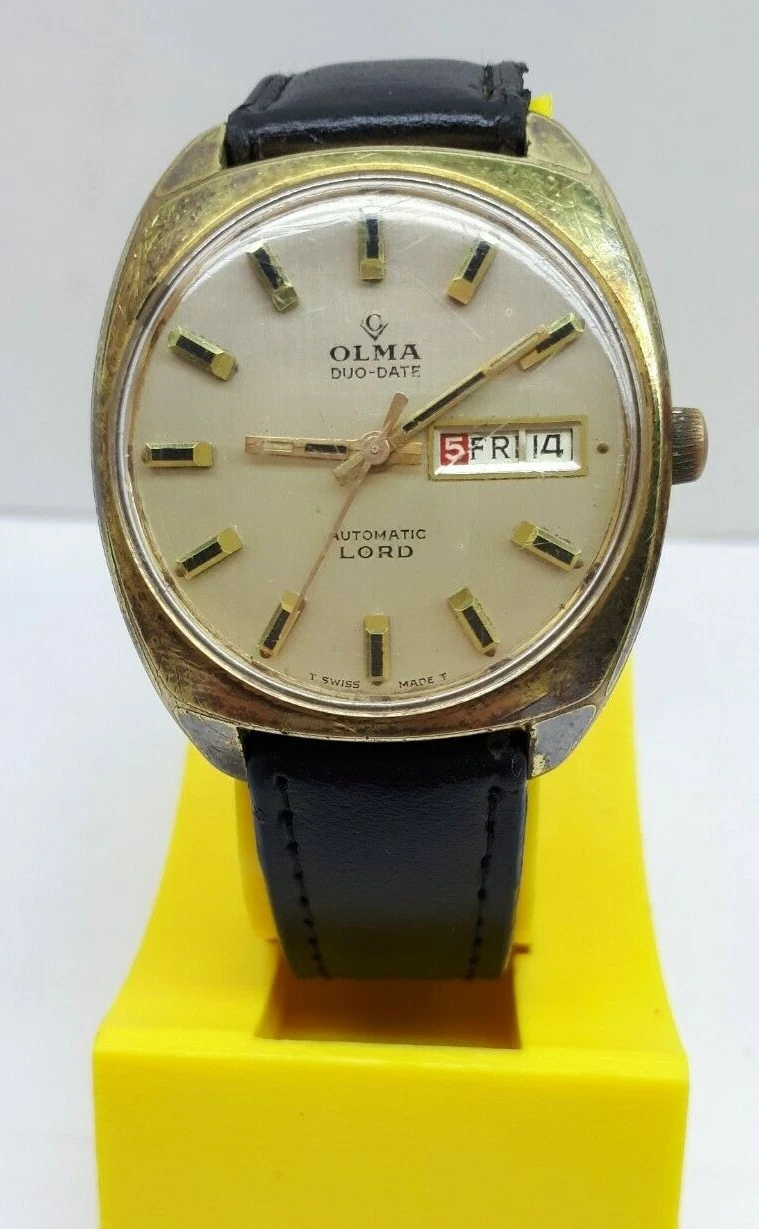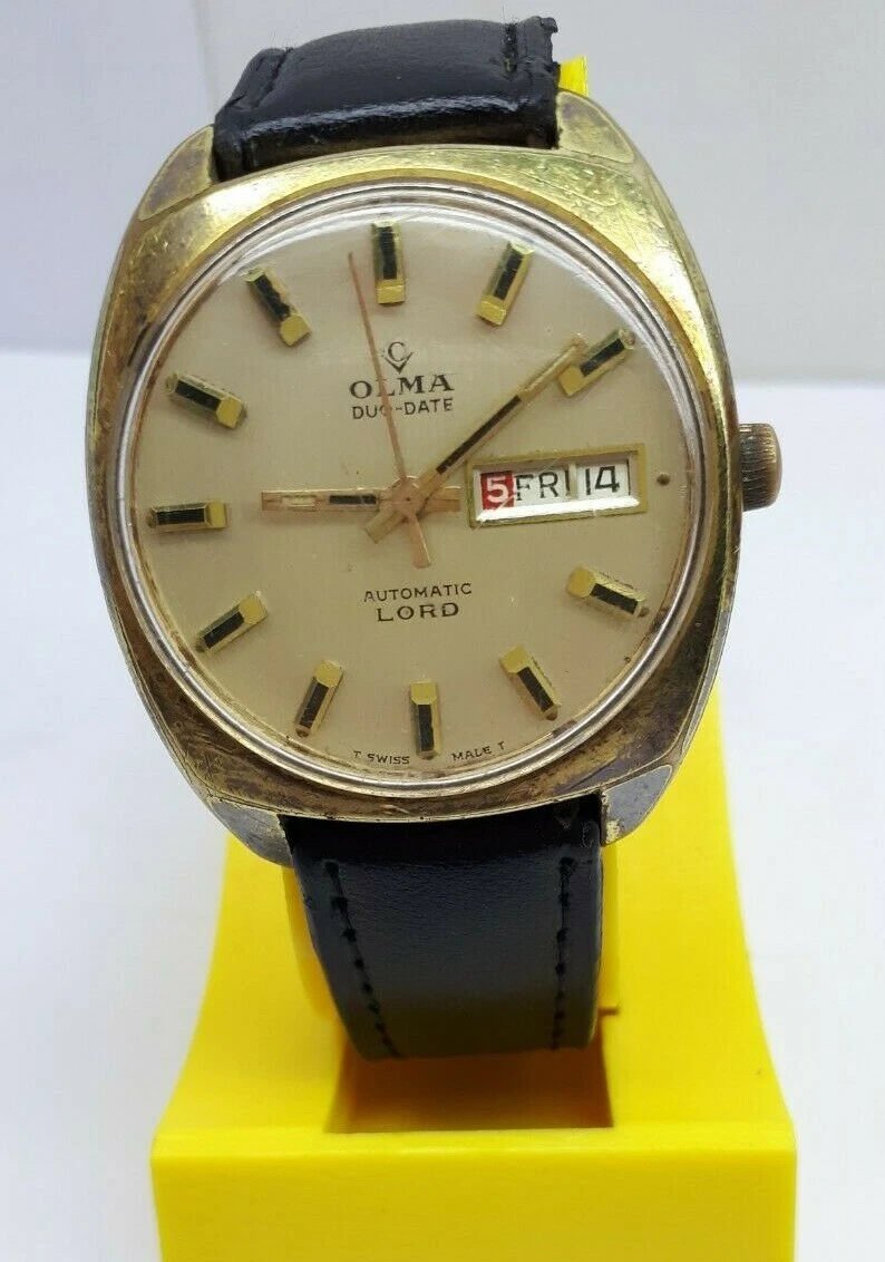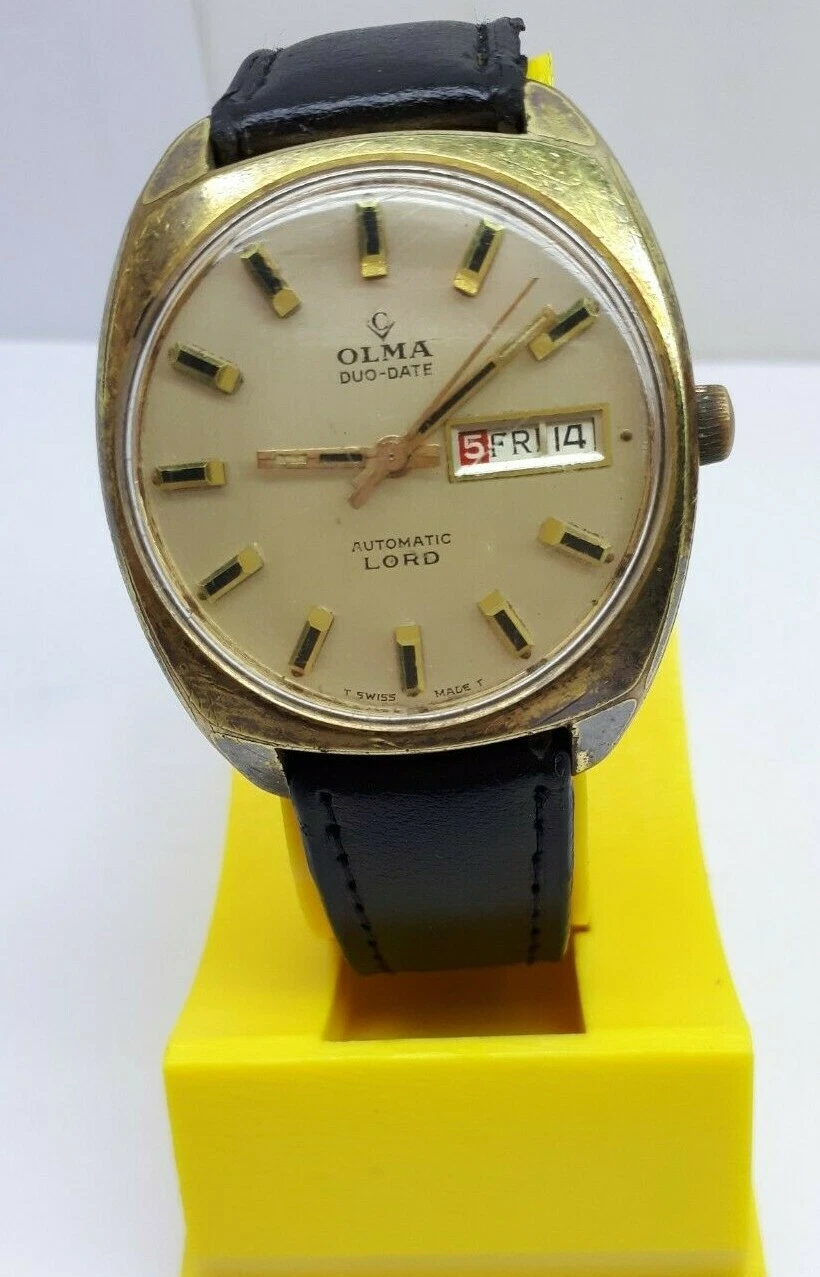 VINTAGE OLMA DUO DATE DAY AUTOMATIC LORD CAL 1886 WRIST WATCH SWISS MEN'S XRARE