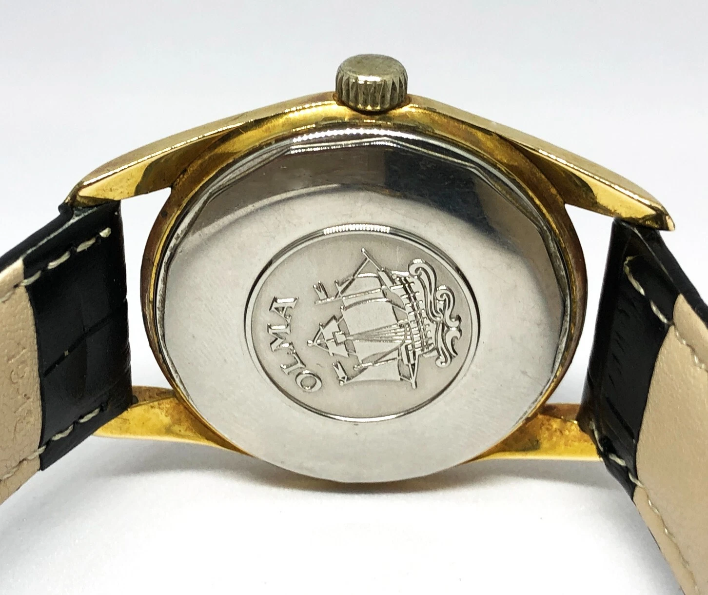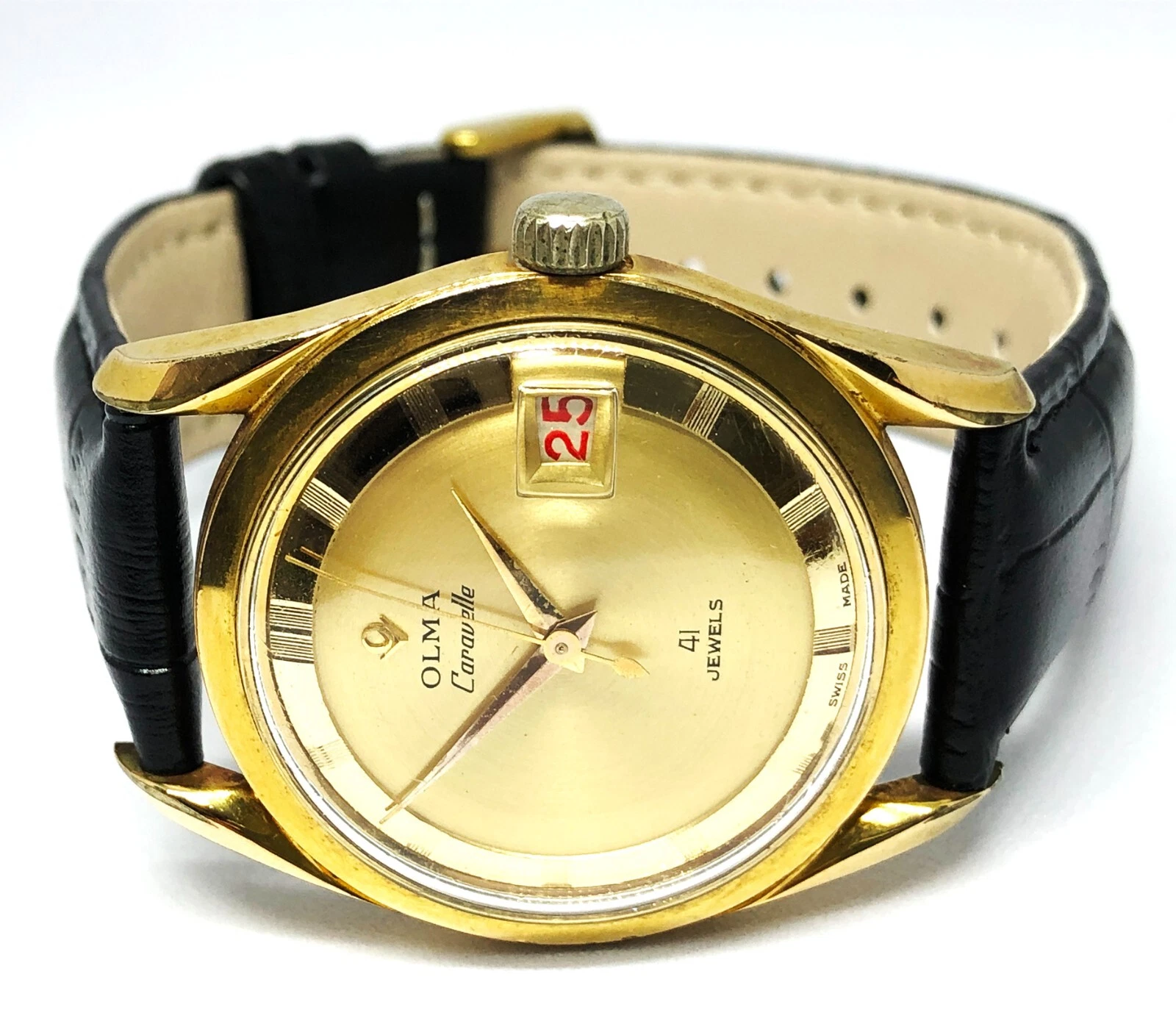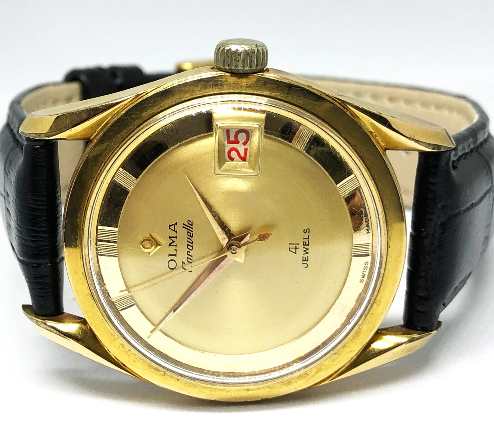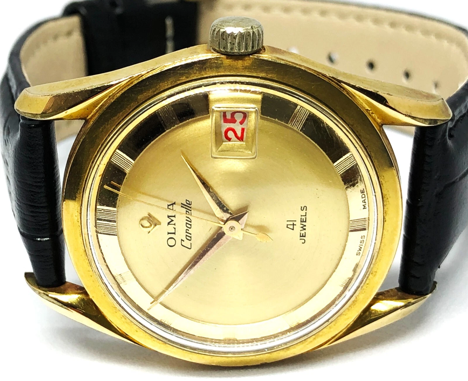 OLMA Caravelle Automatic Watch. 35mm Case. Gold Dial. Date. 41 Jewels. Men`s.