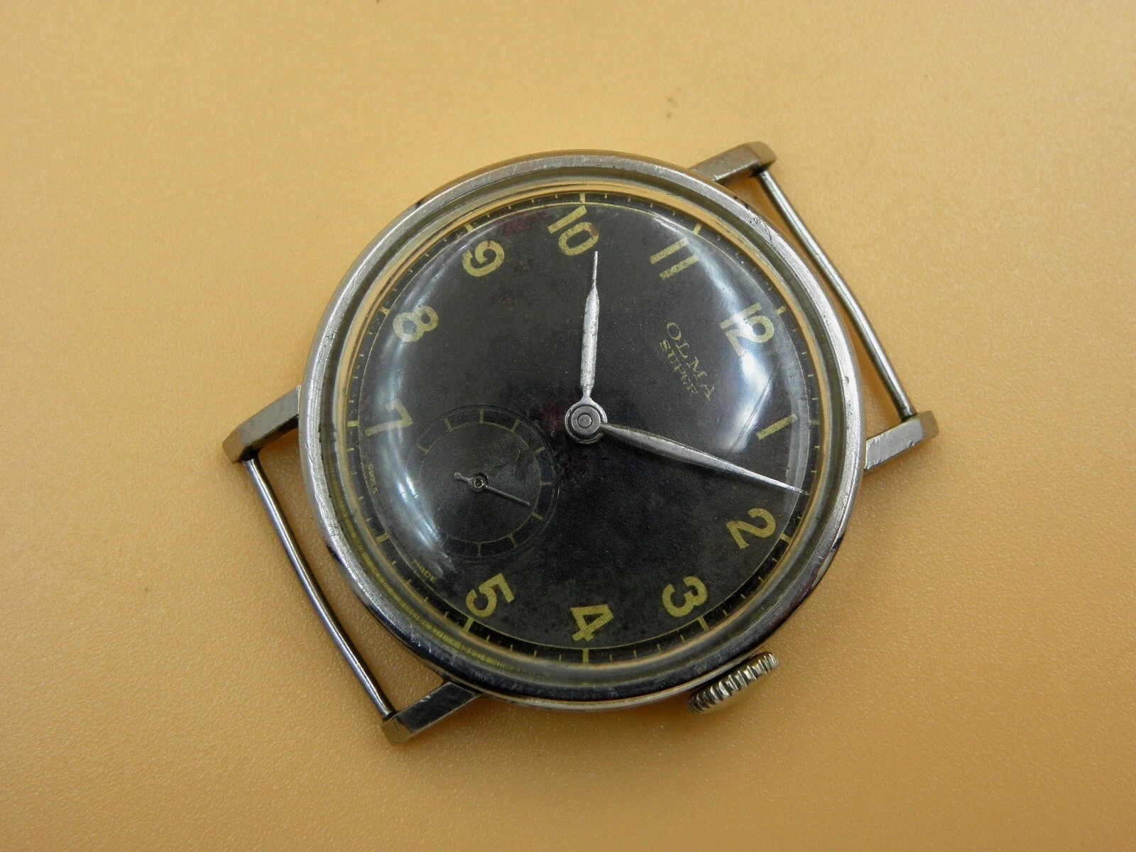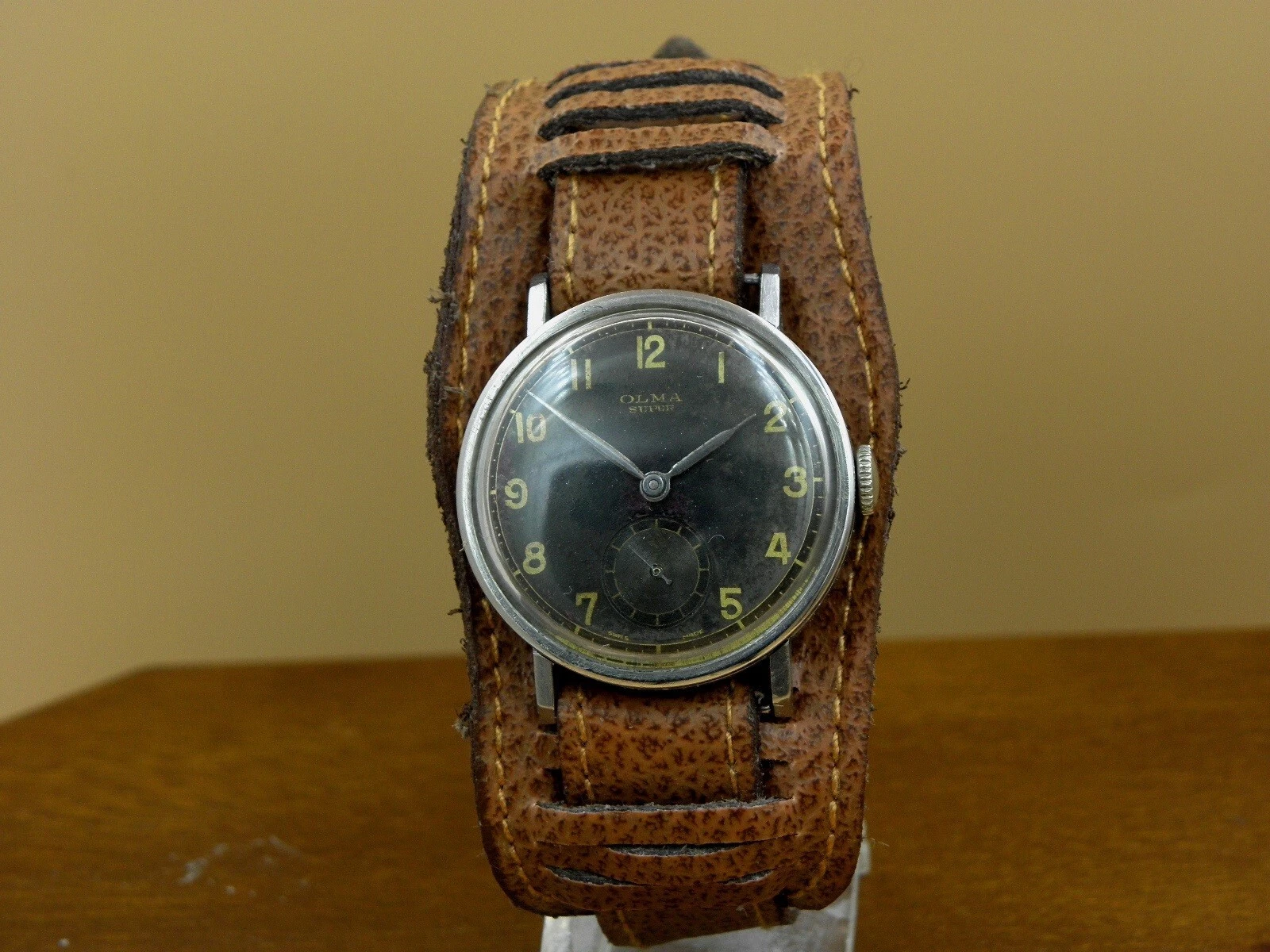 Rare OLMA "SUPER" Pilots WWII 1940's Military Swiss Mens Wrist Watch 17j
