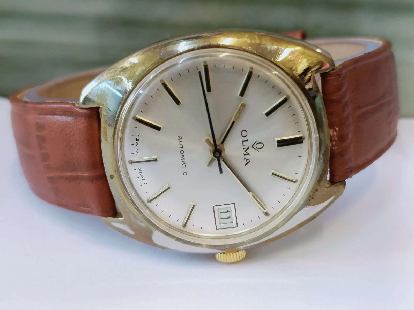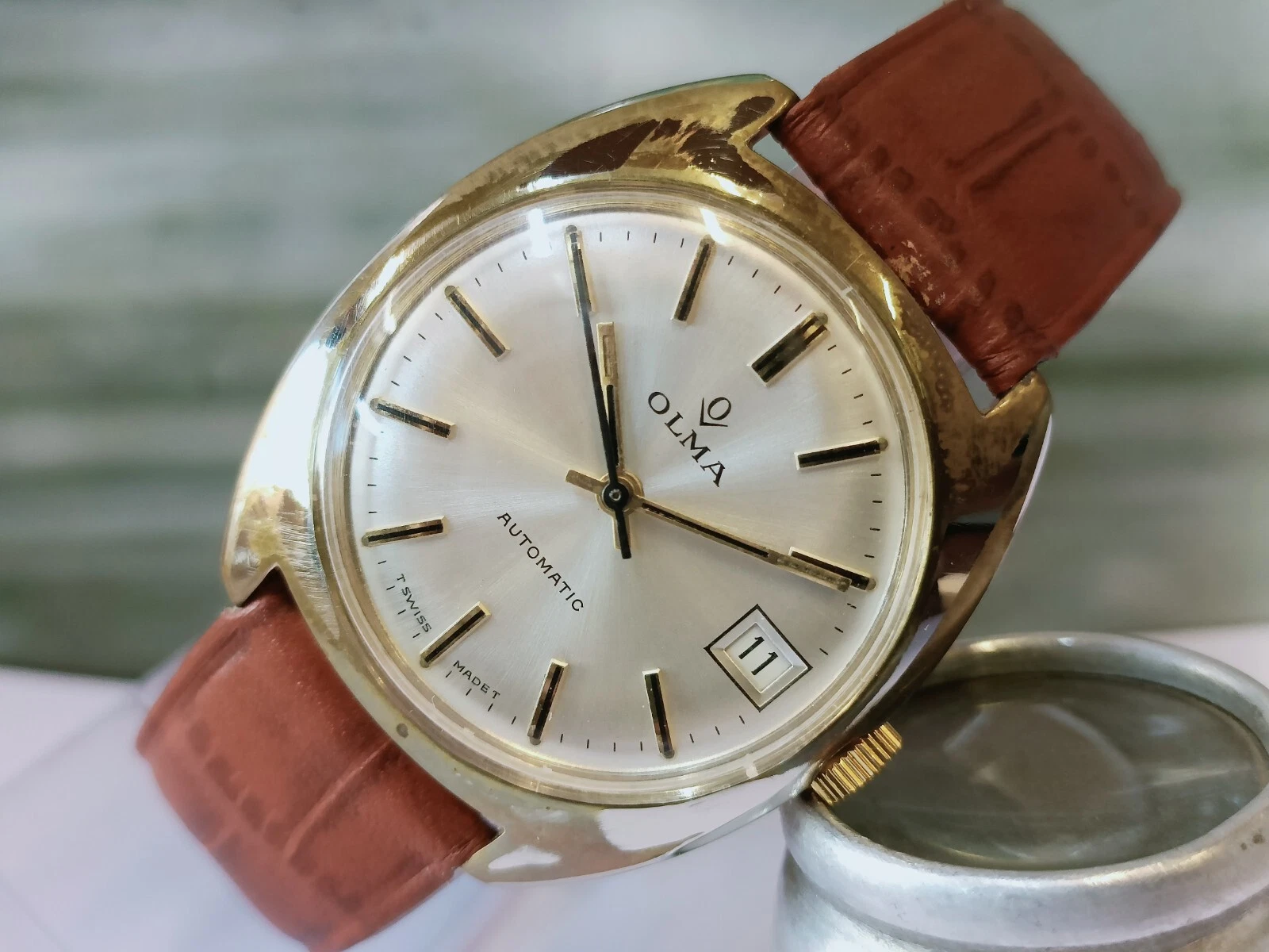 OLMA 17 JEWELS AUTOMATIC SILVER DIAL 08333 SWISS MEN'S FULLY WORKING CONDITION