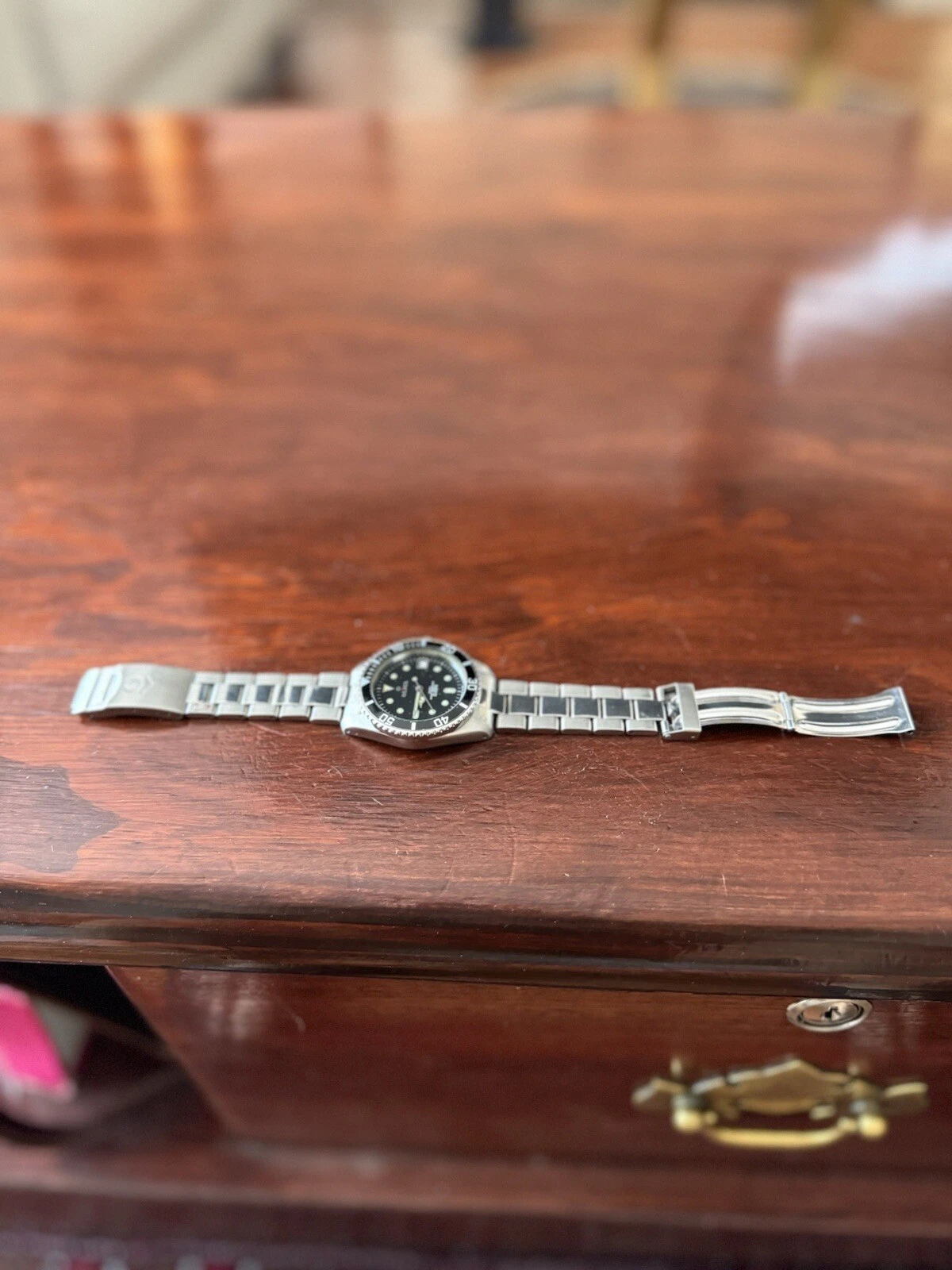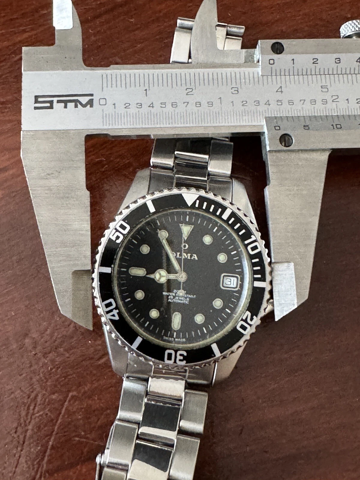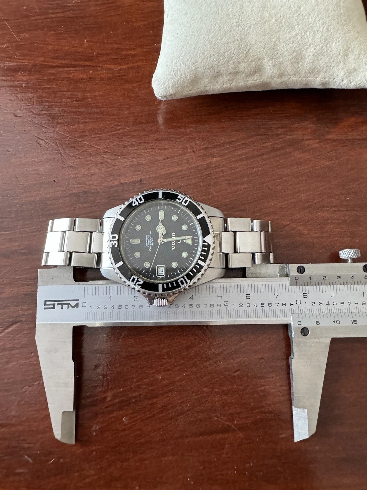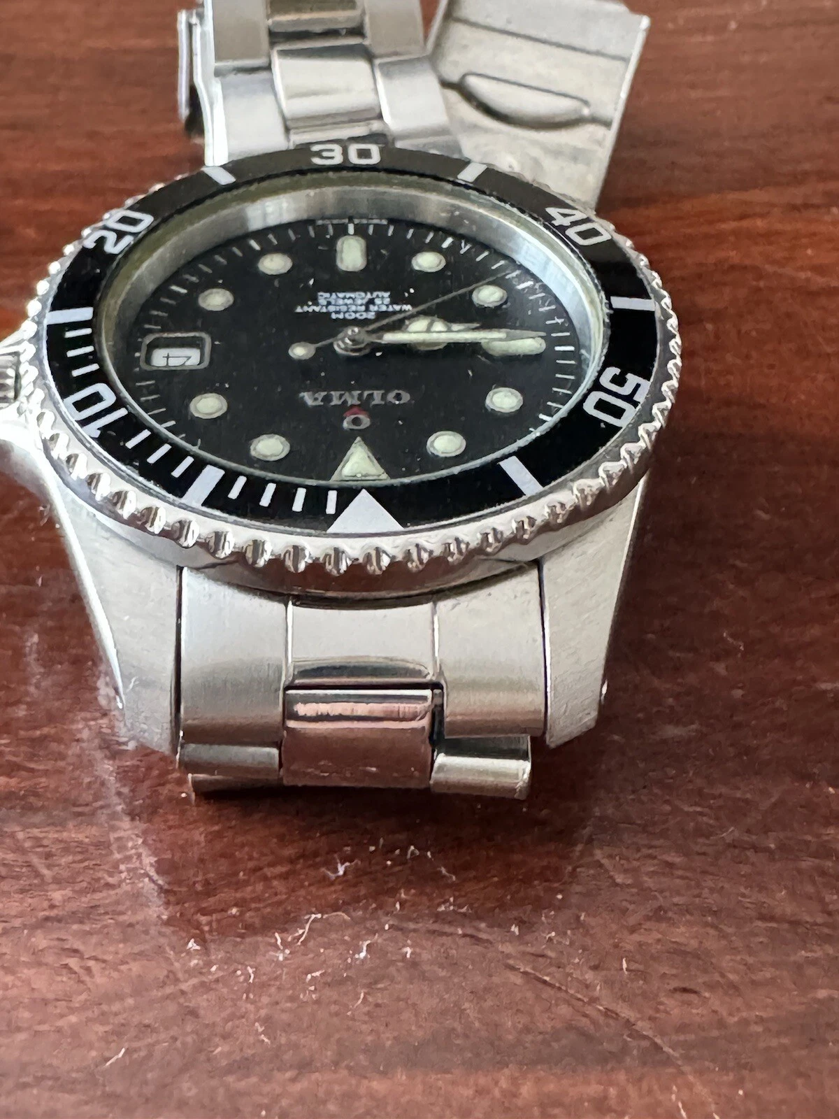 vintage OLMA auto diver 200 M date quick set bezel rota.left site scew down crow