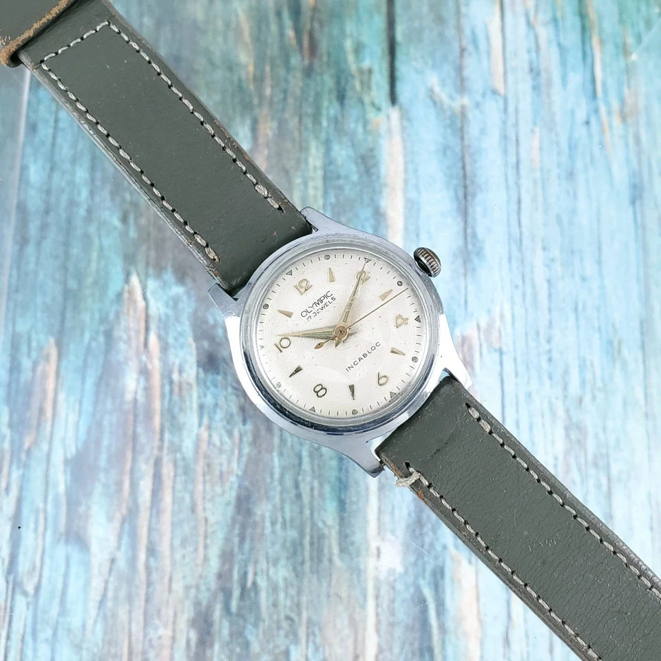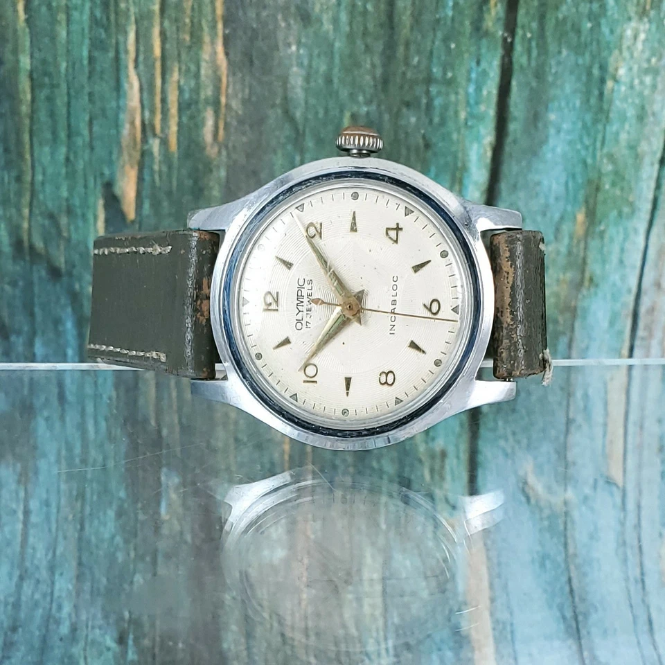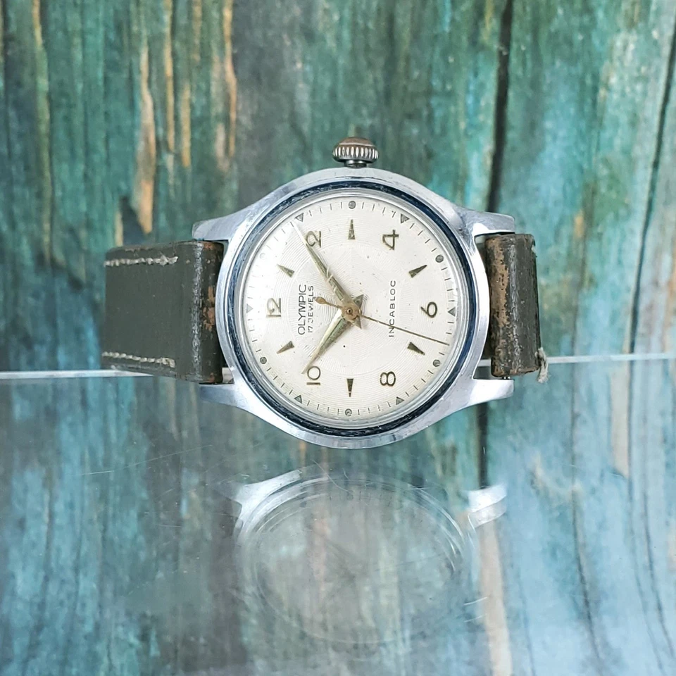 Vintage Olympic 17 Jewels Military Swiss Made Manual Wind