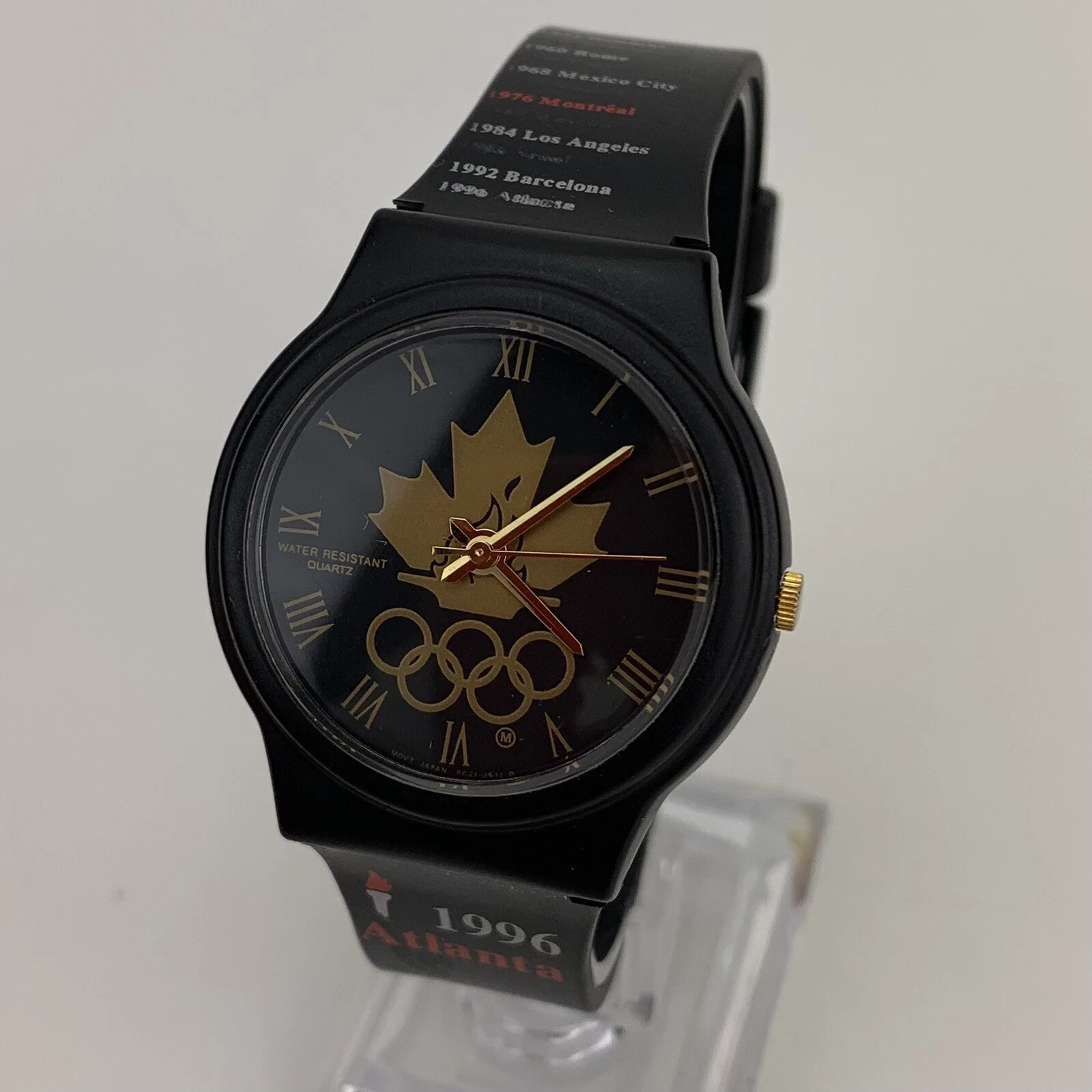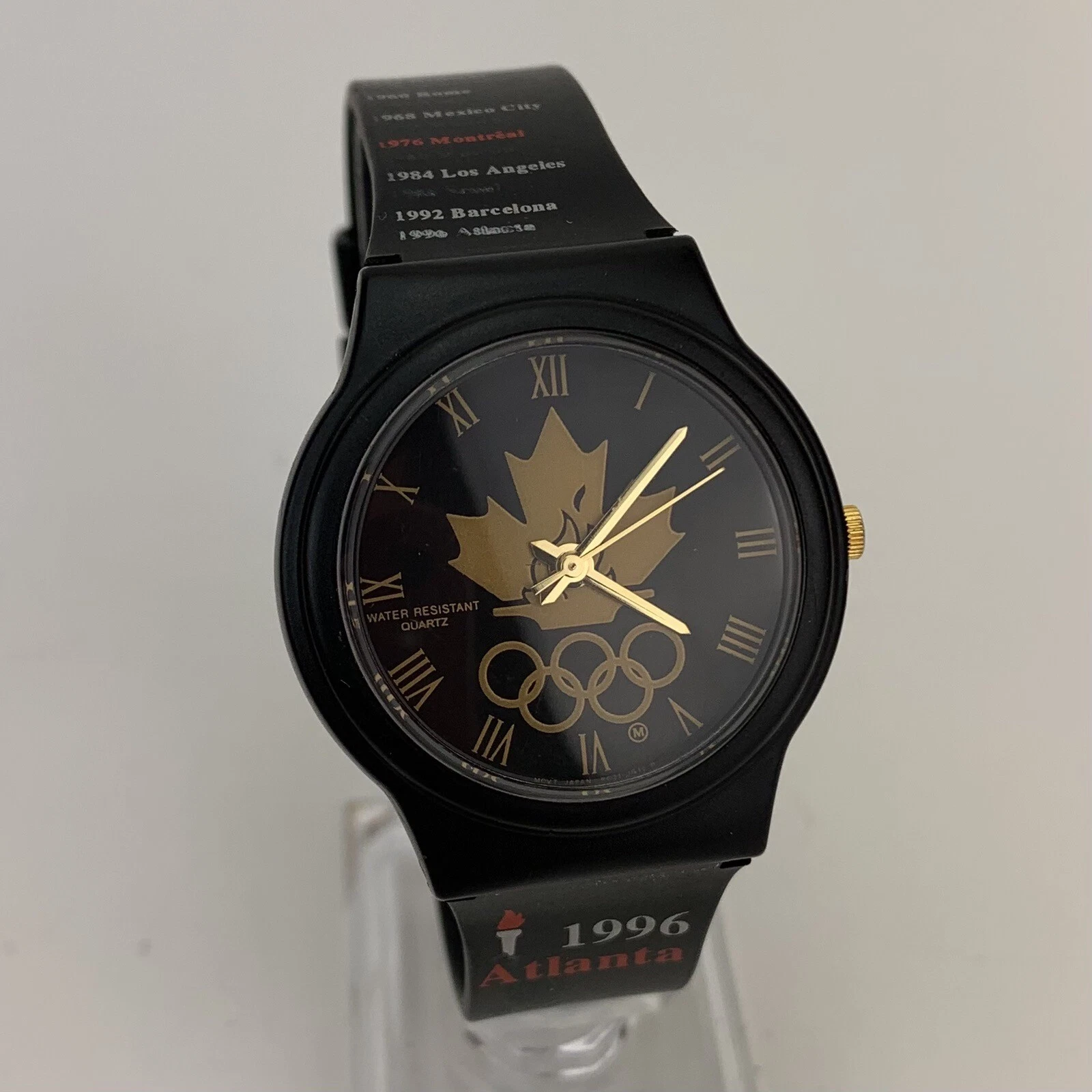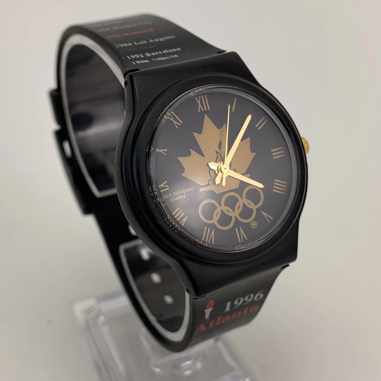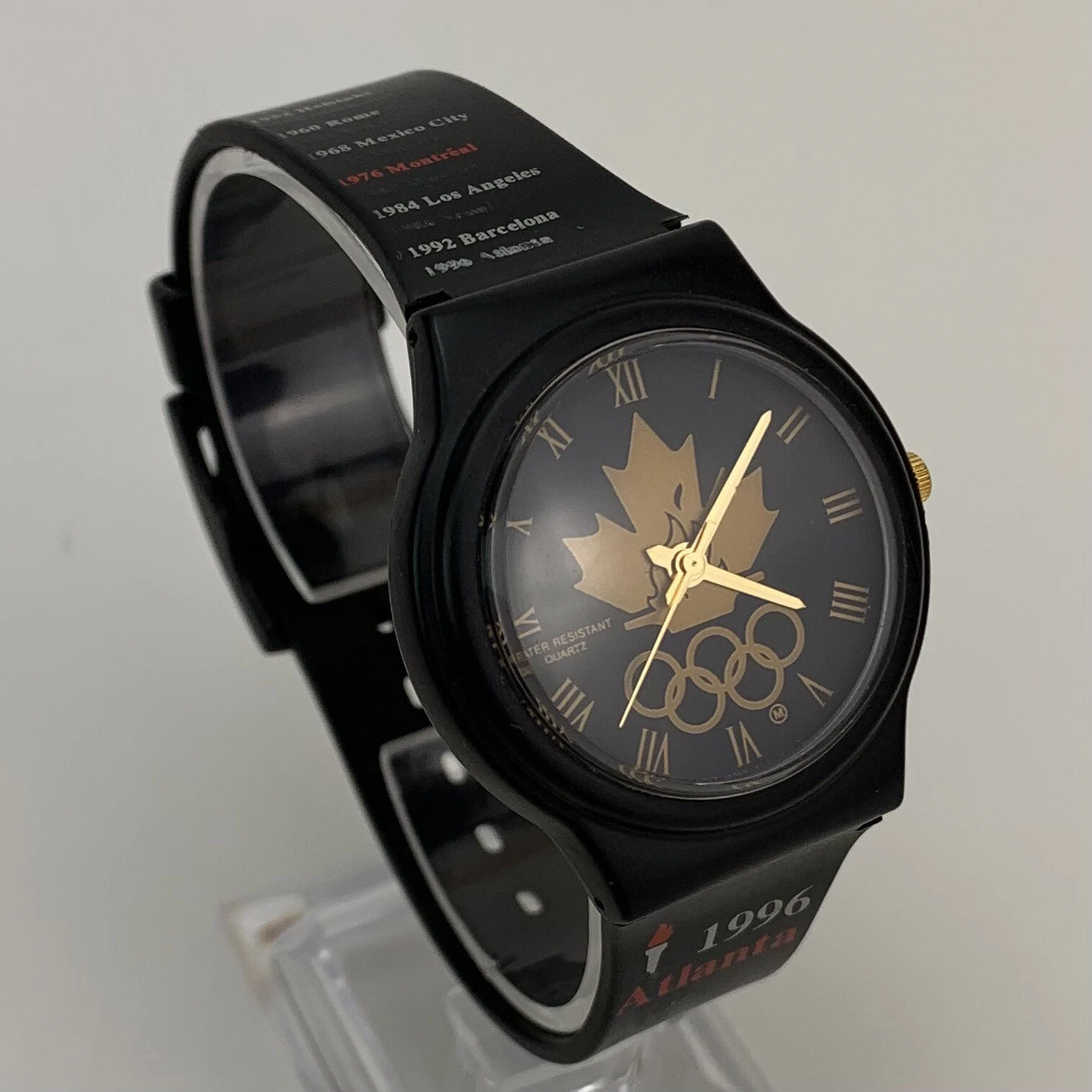Vintage Olympics Watch 1996 Atlanta Men’s Womens 90’s Black & Gold New Batt