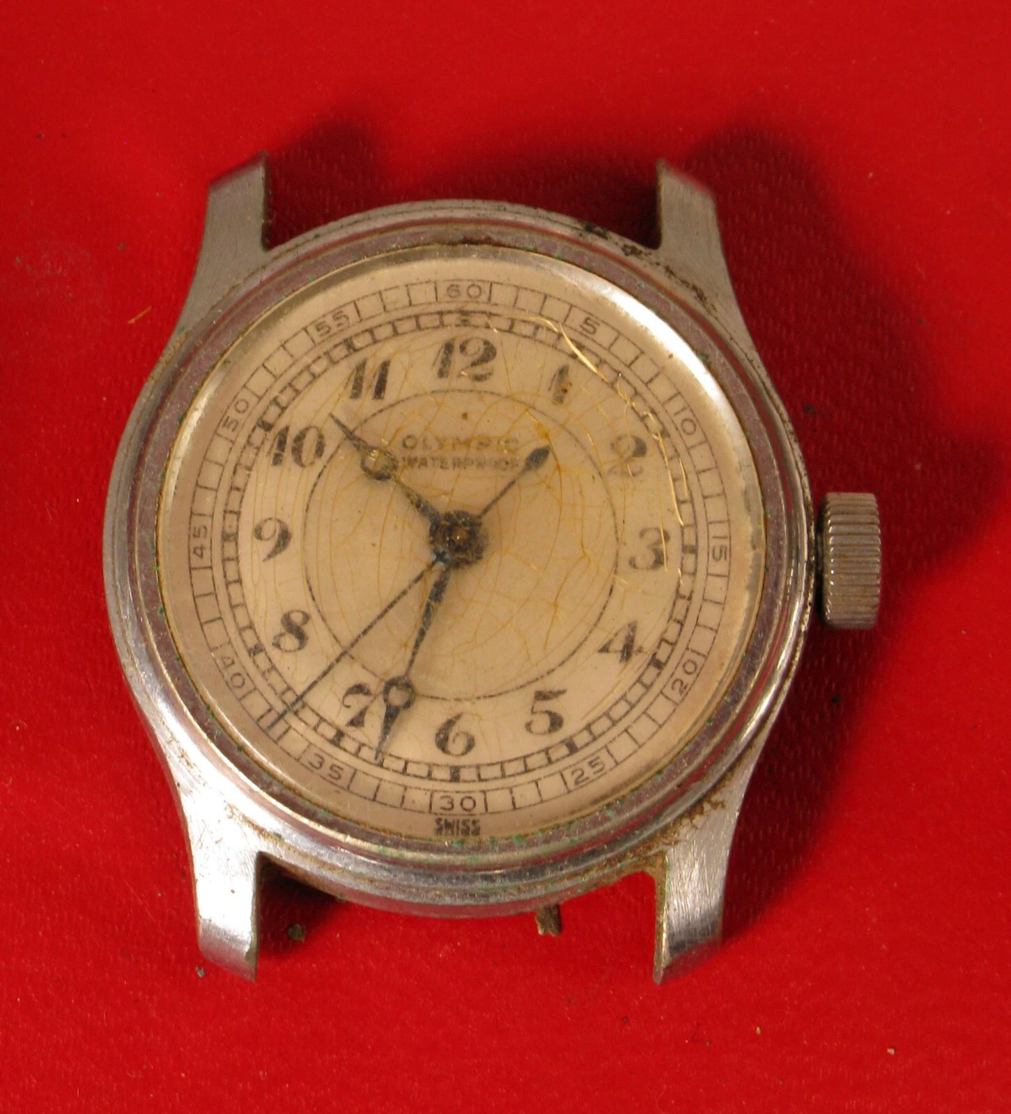 VINTAGE OLYMPIC WATERPROOF MILITARY TRENCH SILVER TONE MENS WATCH WRISTWATCH !